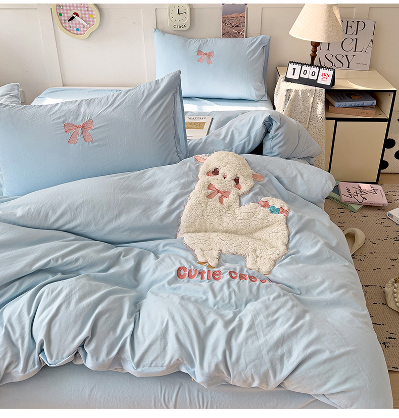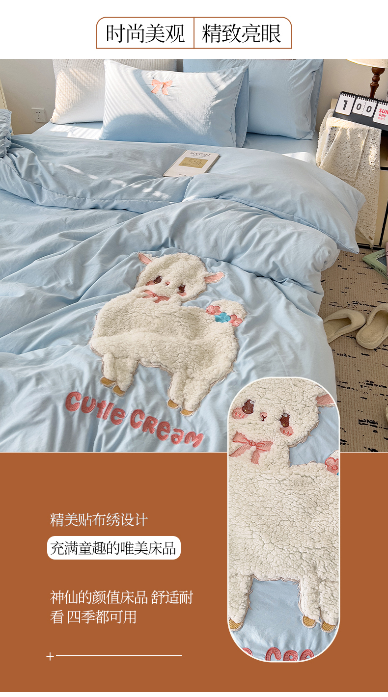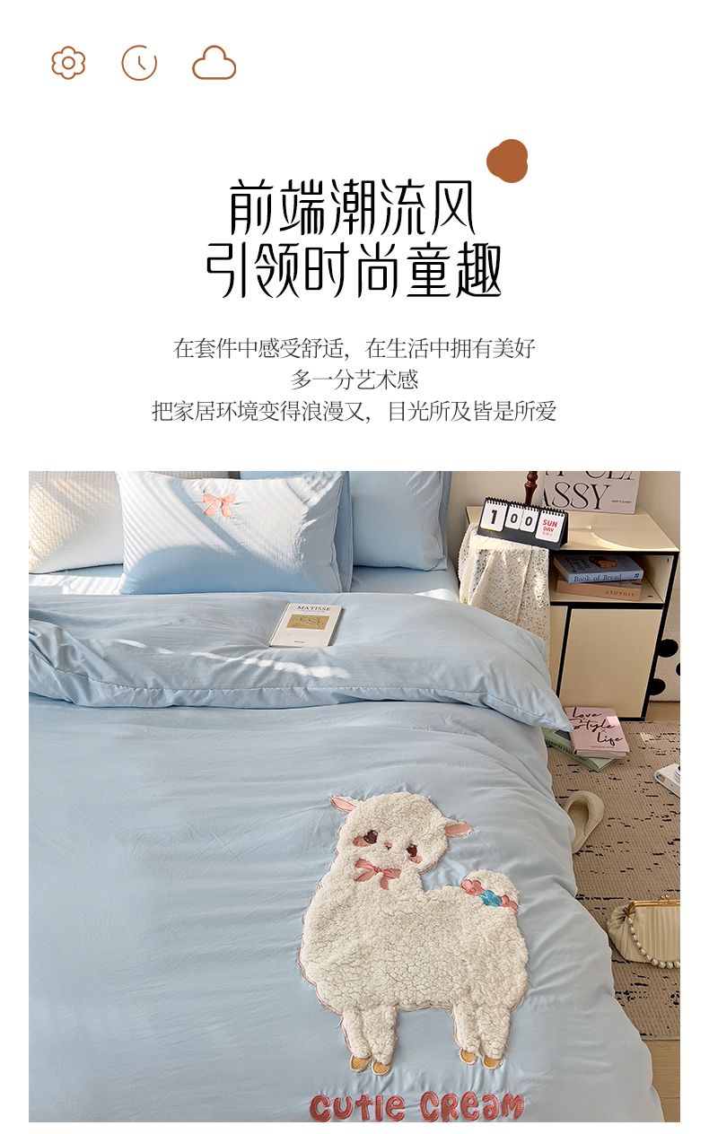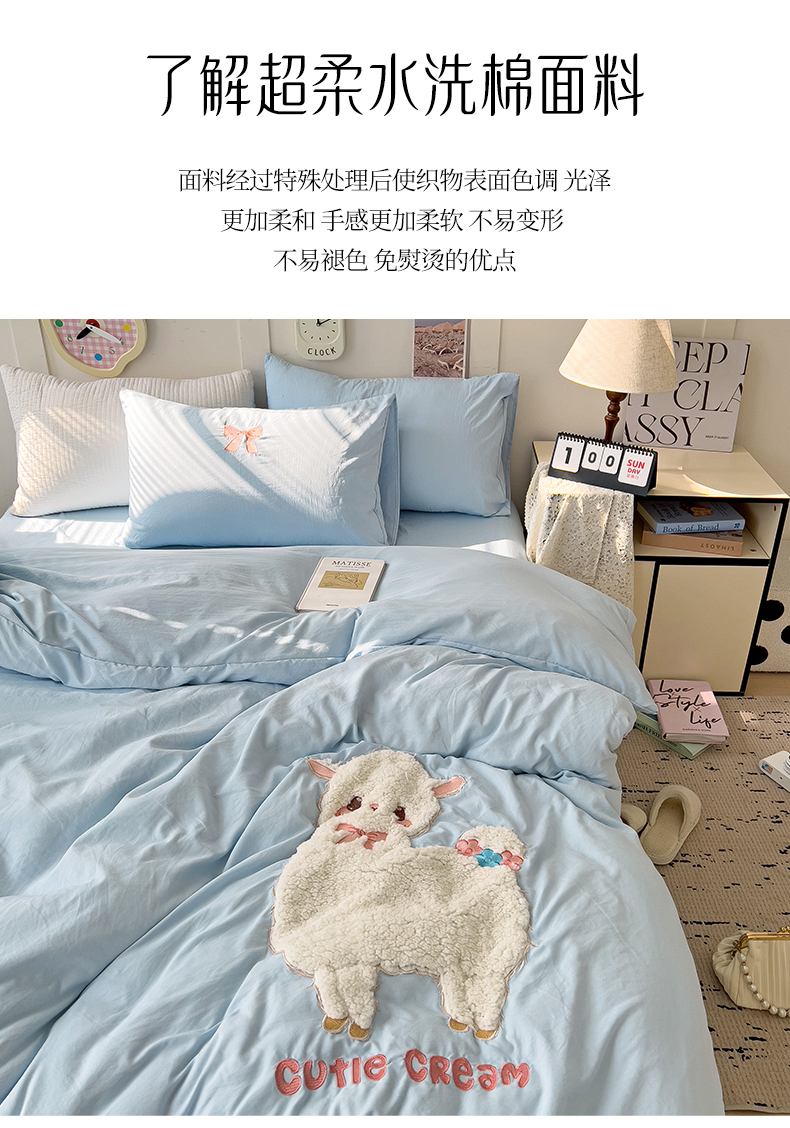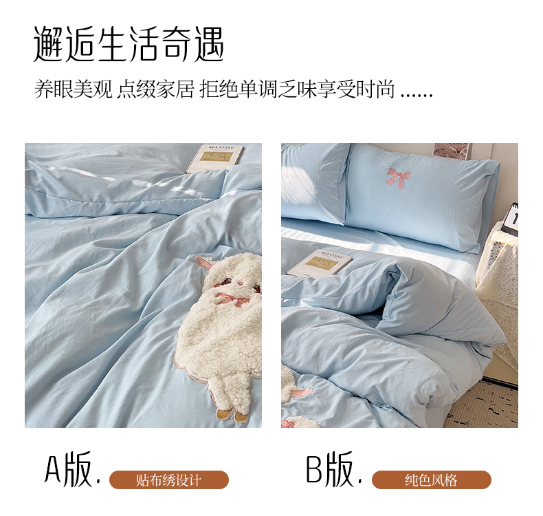 当前位置: 91家纺网 > 商品网购 > 床品套件 > 四件套 > 毛巾绣四件套 > 水墨江南 2025新款超柔水洗棉贴布绣四件套 羊小驼蓝