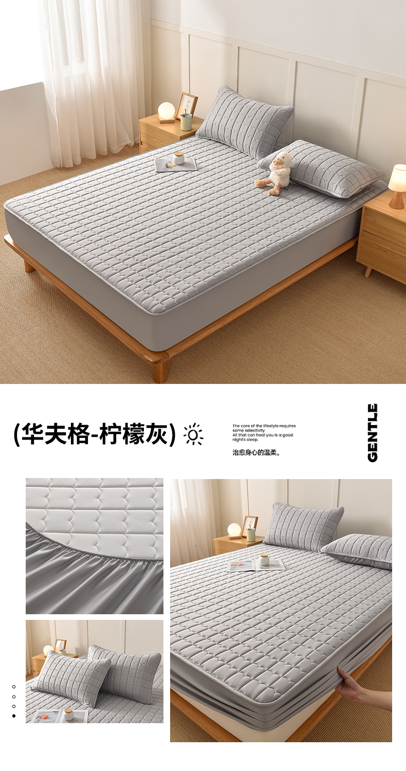 • 91家纺网 家纺一手货源 找家纺 布卢姆床垫 2025新款A类水洗棉大豆夹棉床笠 华夫格-柠檬灰