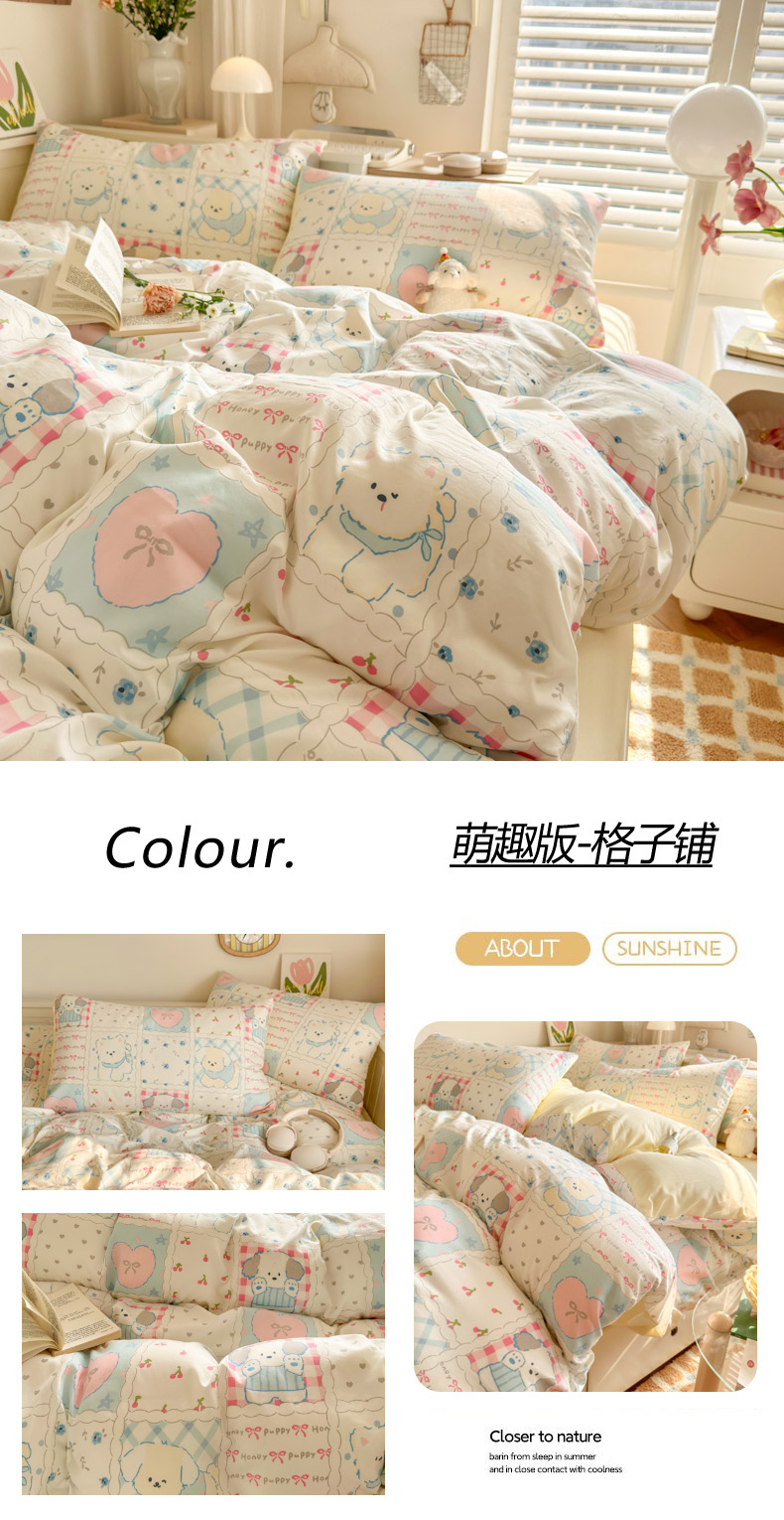 当前位置: 91家纺网 > 商品网购 > 床品套件 > 四件套 > 水洗棉四件套 > 慕澄家纺 2025新款小清新水洗棉印花四件套 萌趣版-格子铺