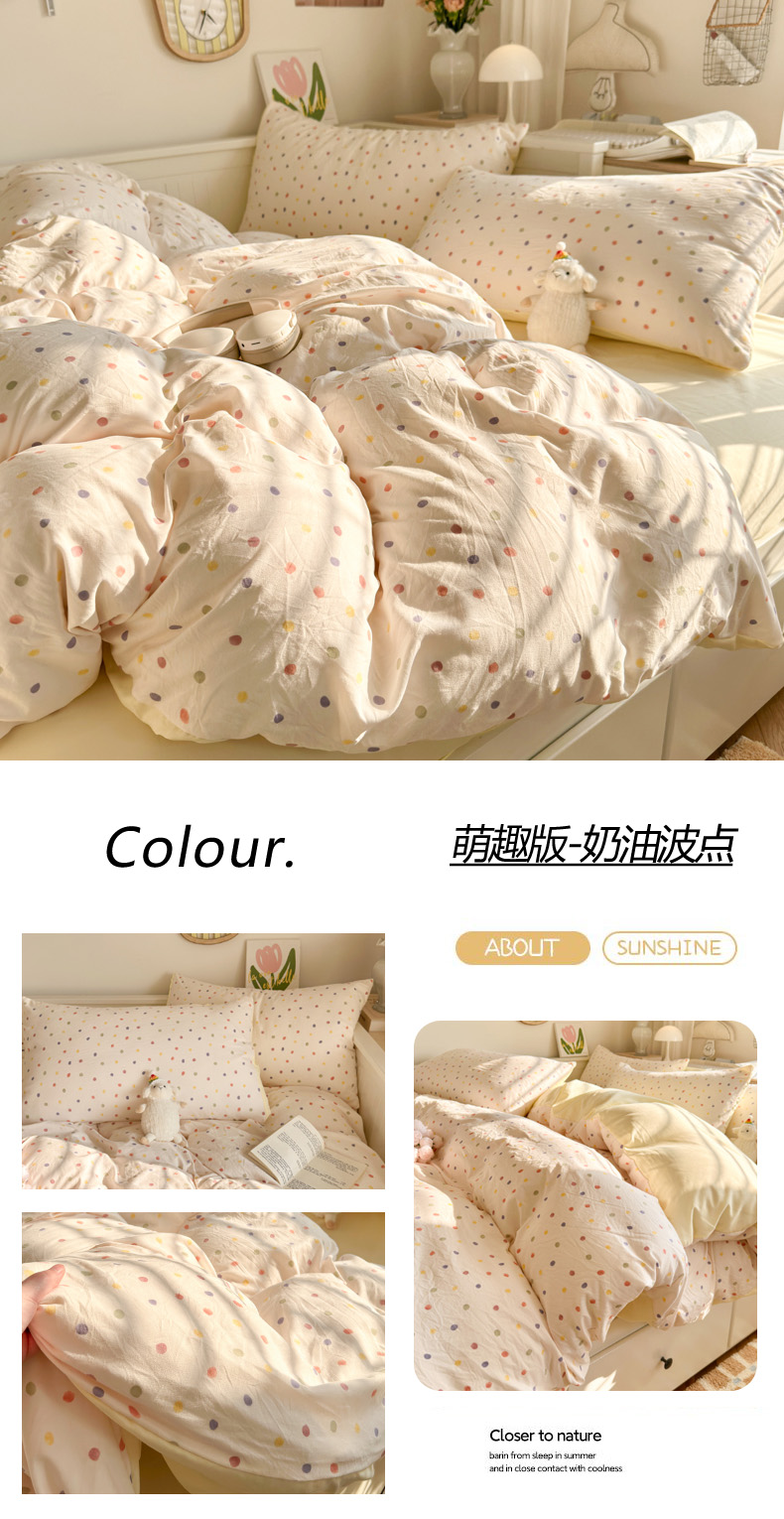 当前位置: 91家纺网 > 商品网购 > 床品套件 > 四件套 > 水洗棉四件套 > 慕澄家纺 2025新款小清新水洗棉印花四件套 萌趣版-奶油波点