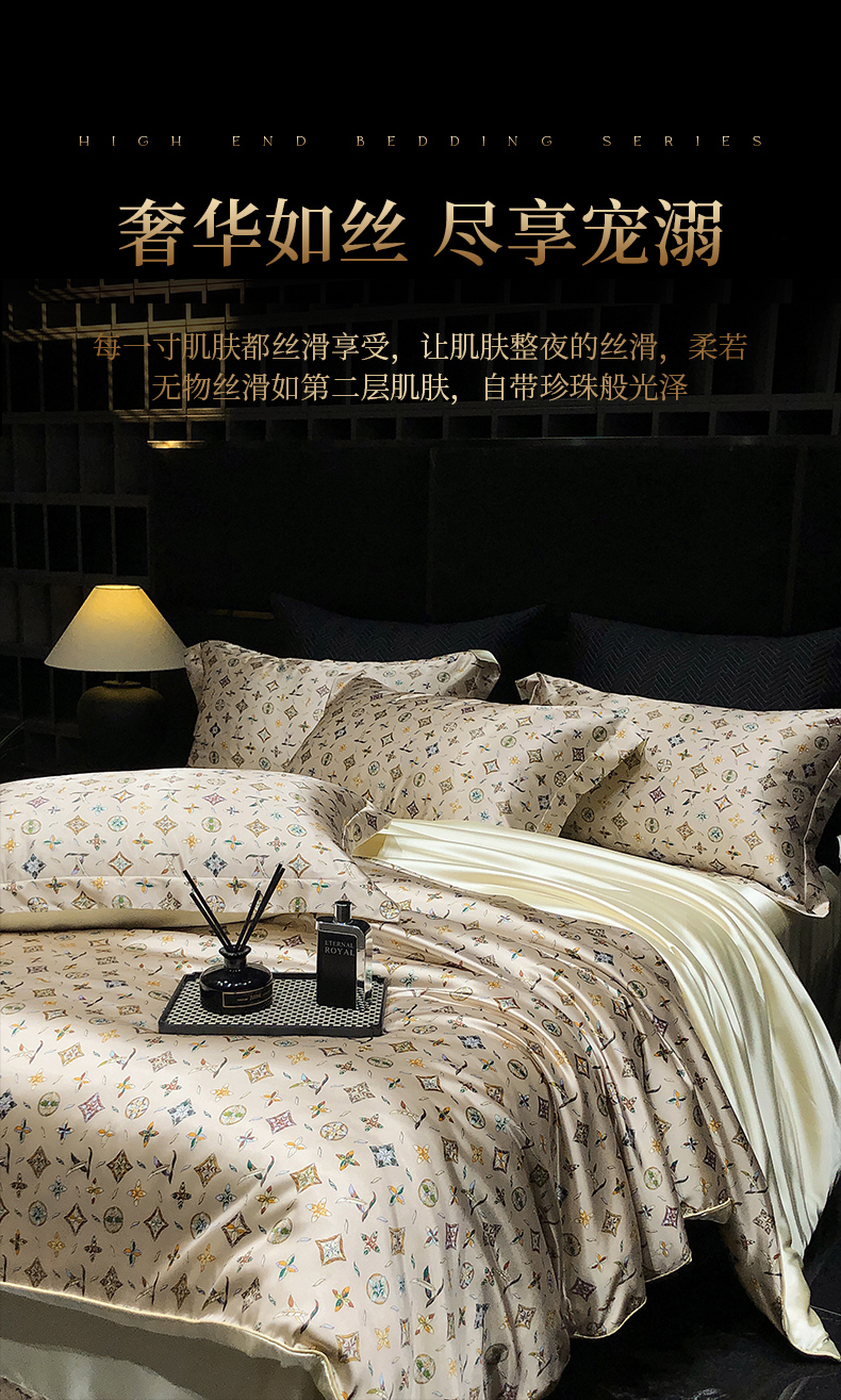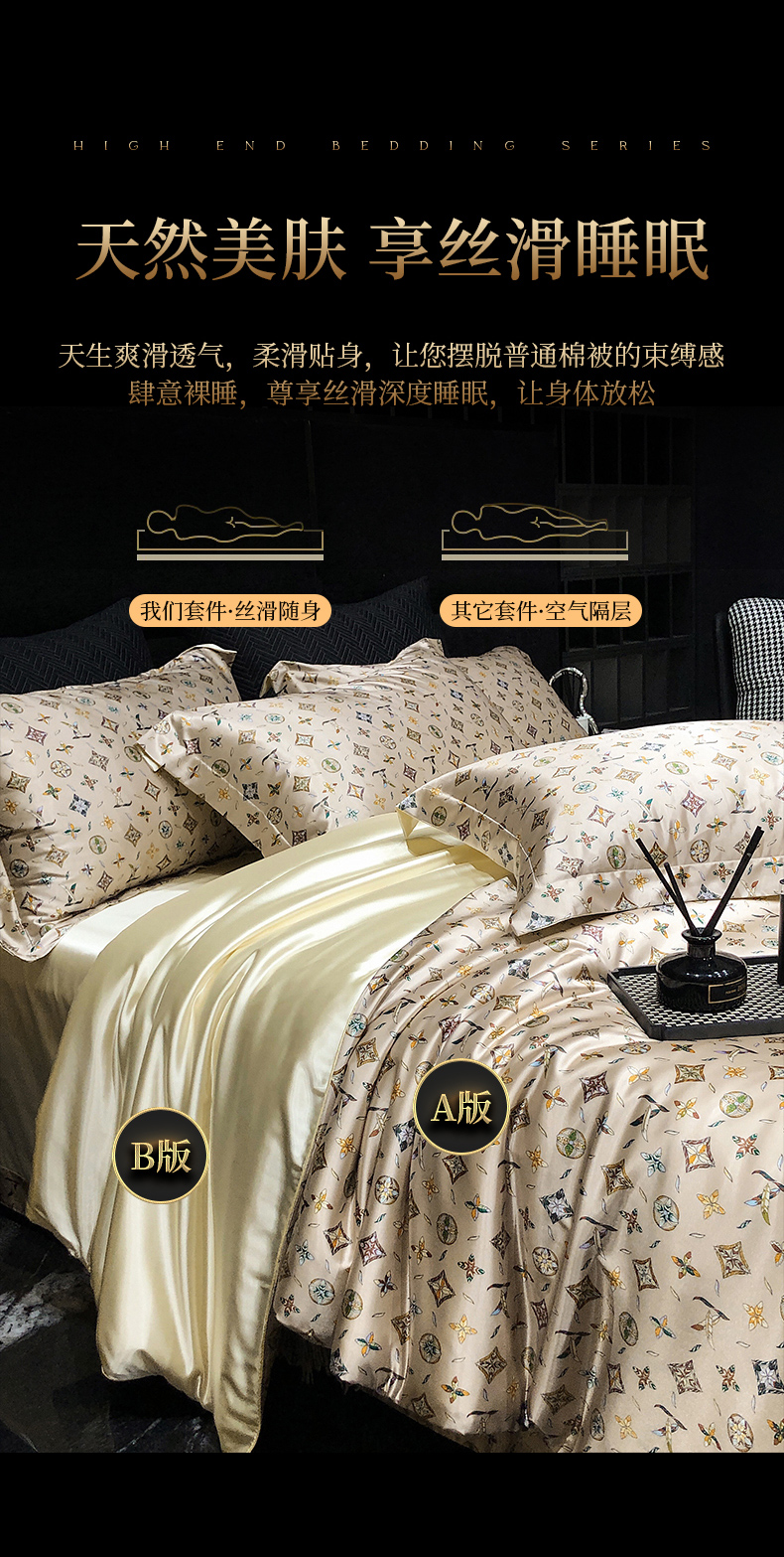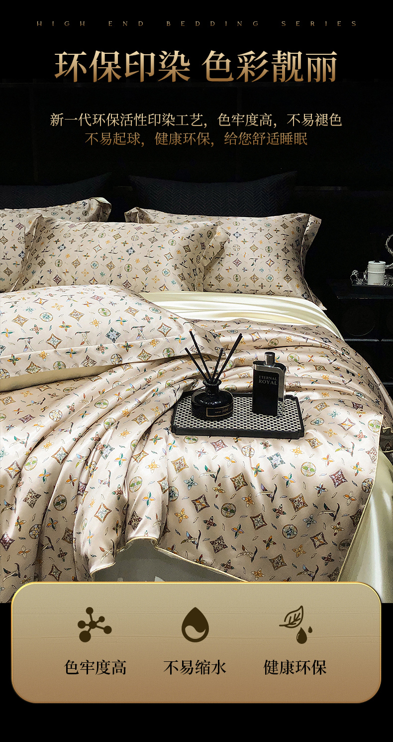 黄鹂鸟 2025新款高端轻奢丝滑裸睡丝绸数码印花水洗真丝天丝四件套系列 -风格三 名人世家