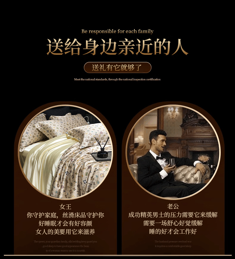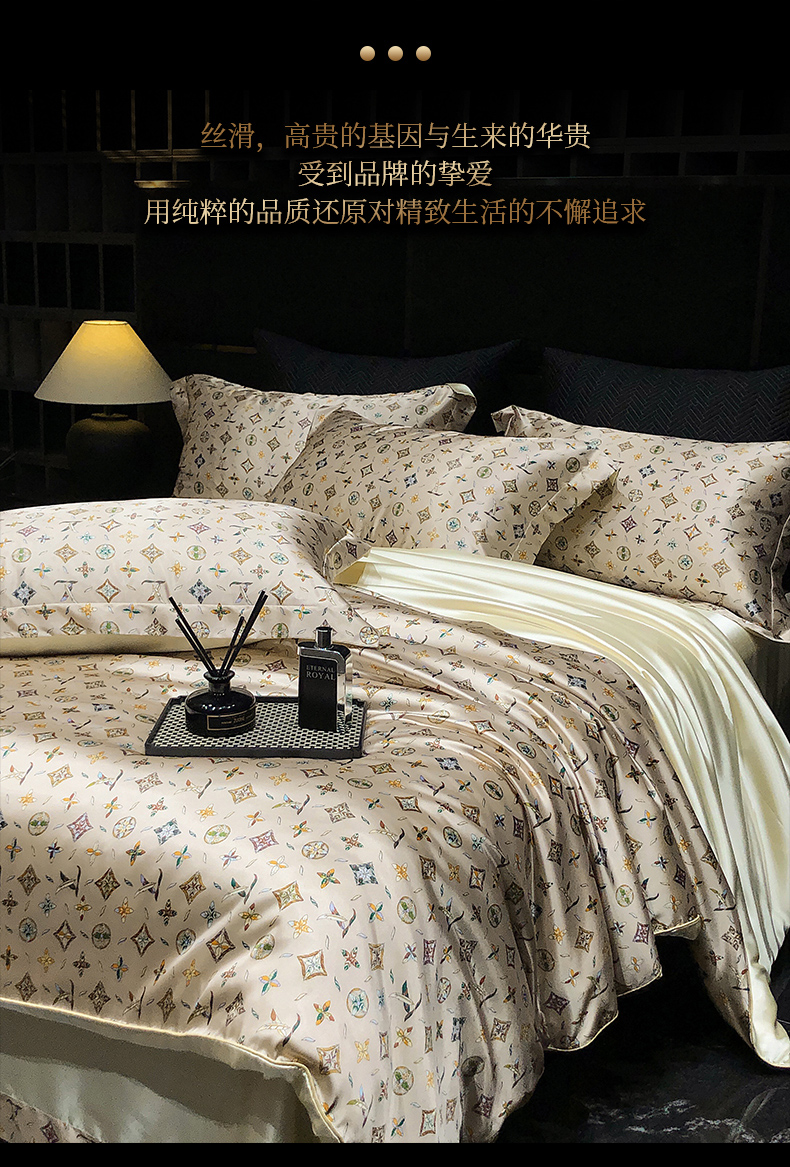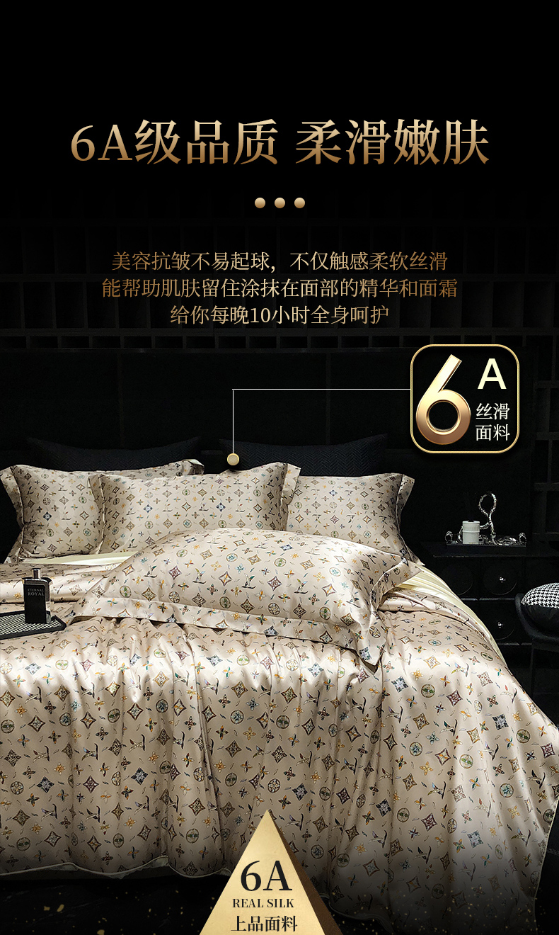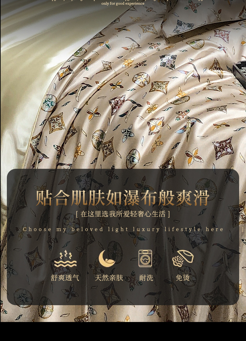 黄鹂鸟 2025新款高端轻奢丝滑裸睡丝绸数码印花水洗真丝天丝四件套系列 -风格三 名人世家