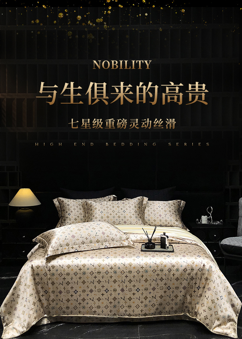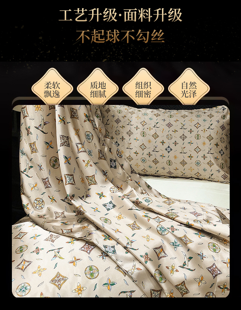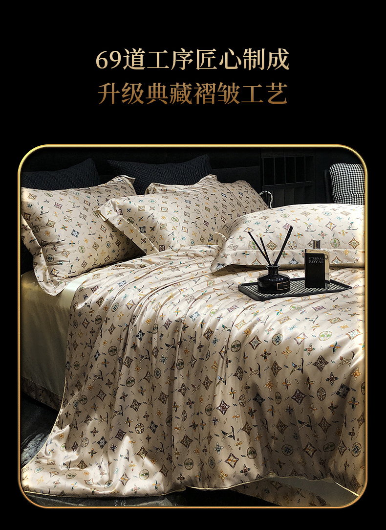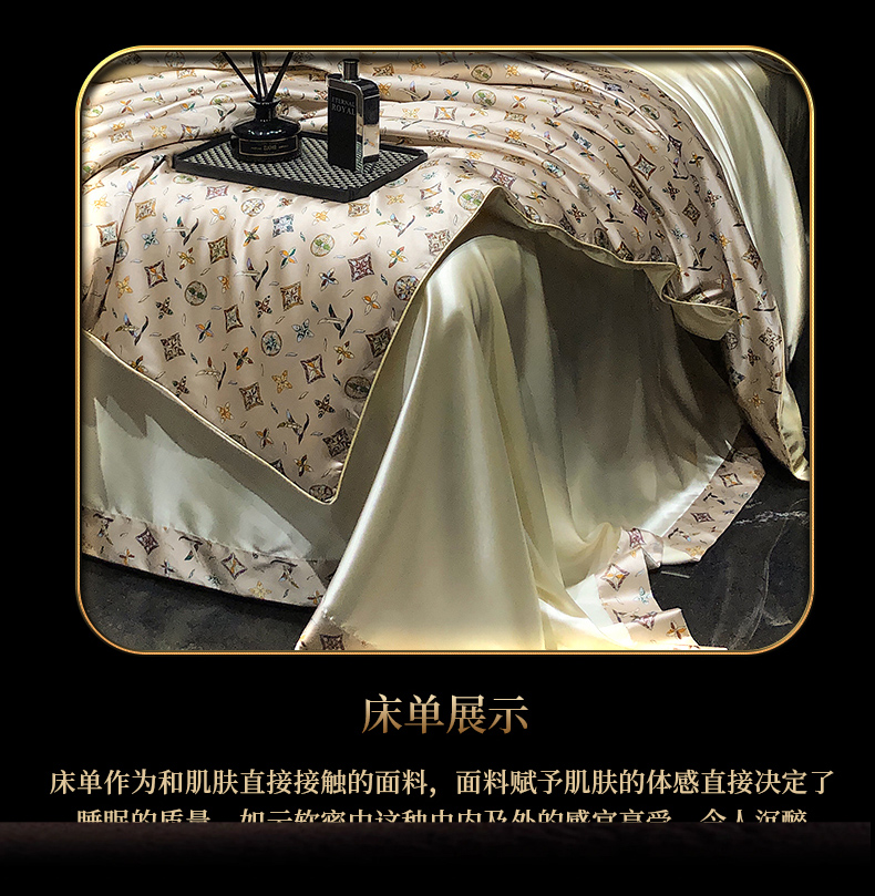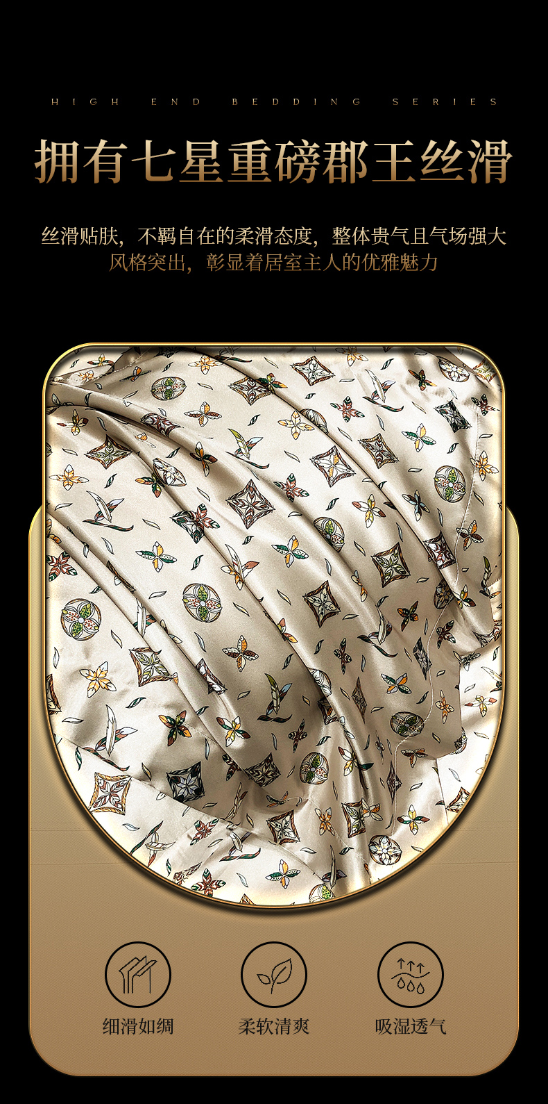 商品名称:黄鹂鸟 2025新款高端轻奢丝滑裸睡丝绸数码印花水洗真丝天丝四件套系列 -风格三 名人世家