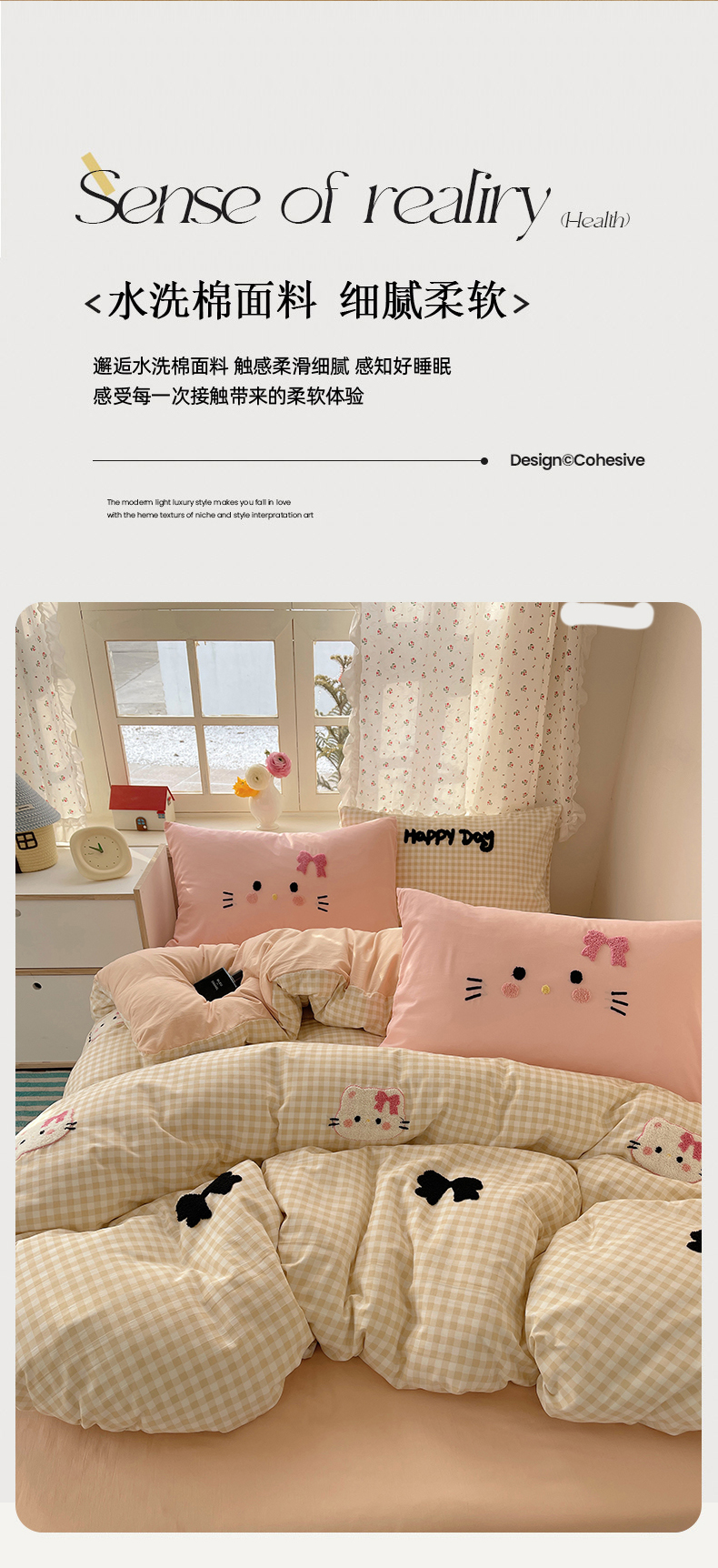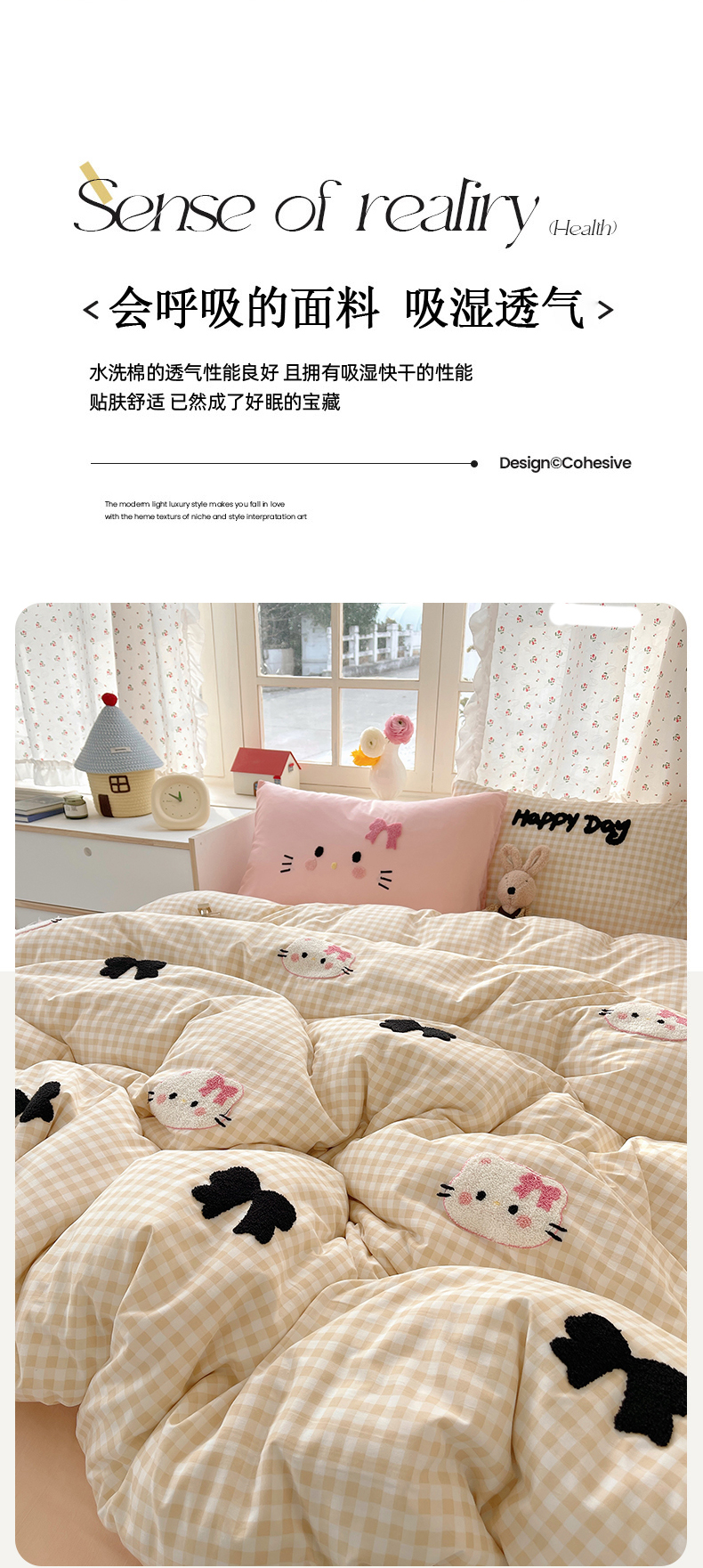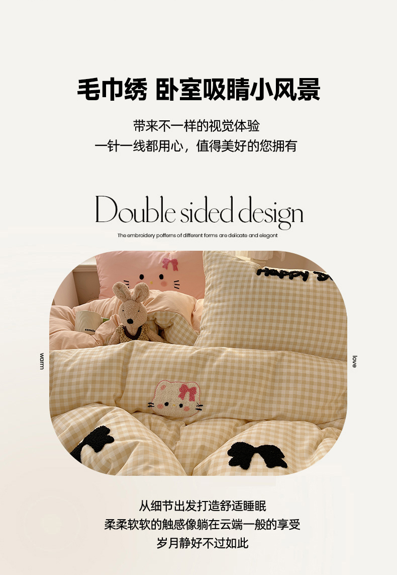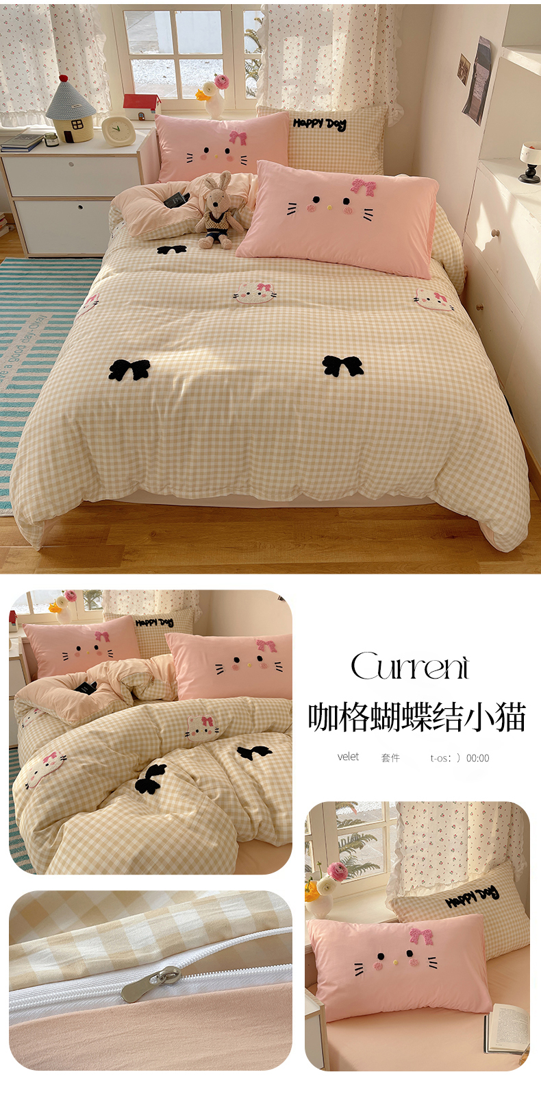 当前位置: 91家纺网 > 商品网购 > 床品套件 > 四件套 > 毛巾绣四件套 > 红嘴企鹅 2025新款水洗棉毛巾绣四件套 咖格蝴蝶结小猫