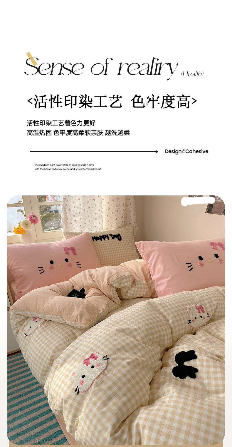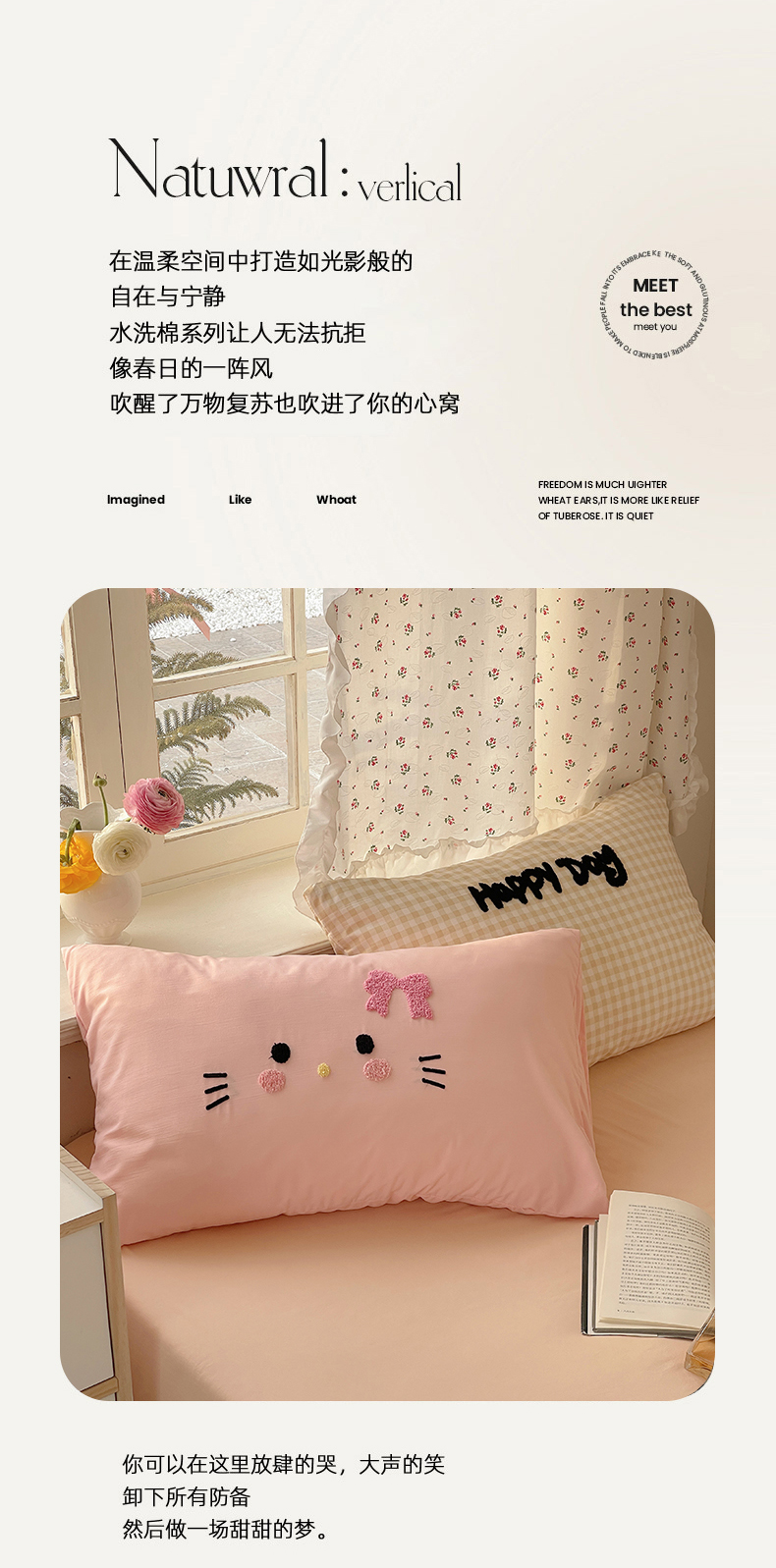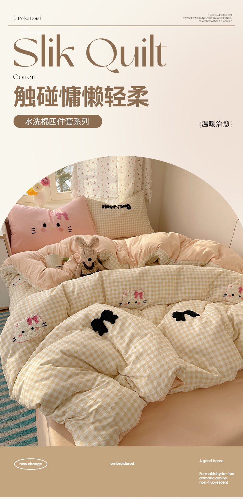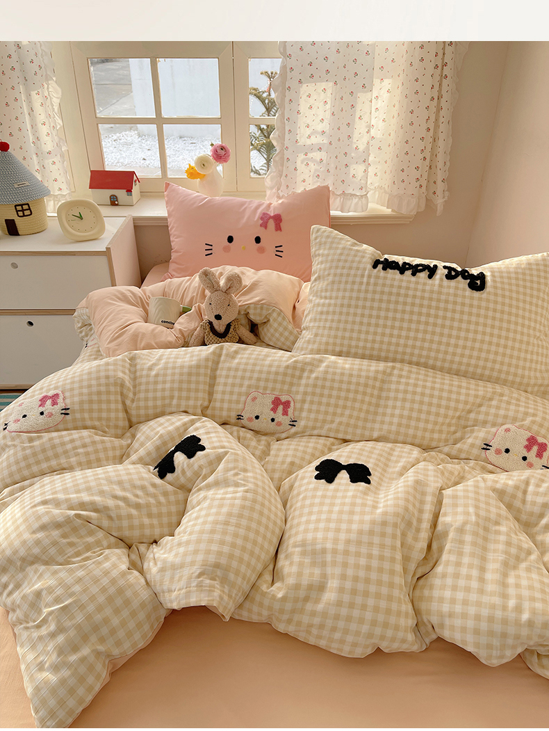 当前位置: 91家纺网 > 商品网购 > 床品套件 > 四件套 > 毛巾绣四件套 > 红嘴企鹅 2025新款水洗棉毛巾绣四件套 咖格蝴蝶结小猫