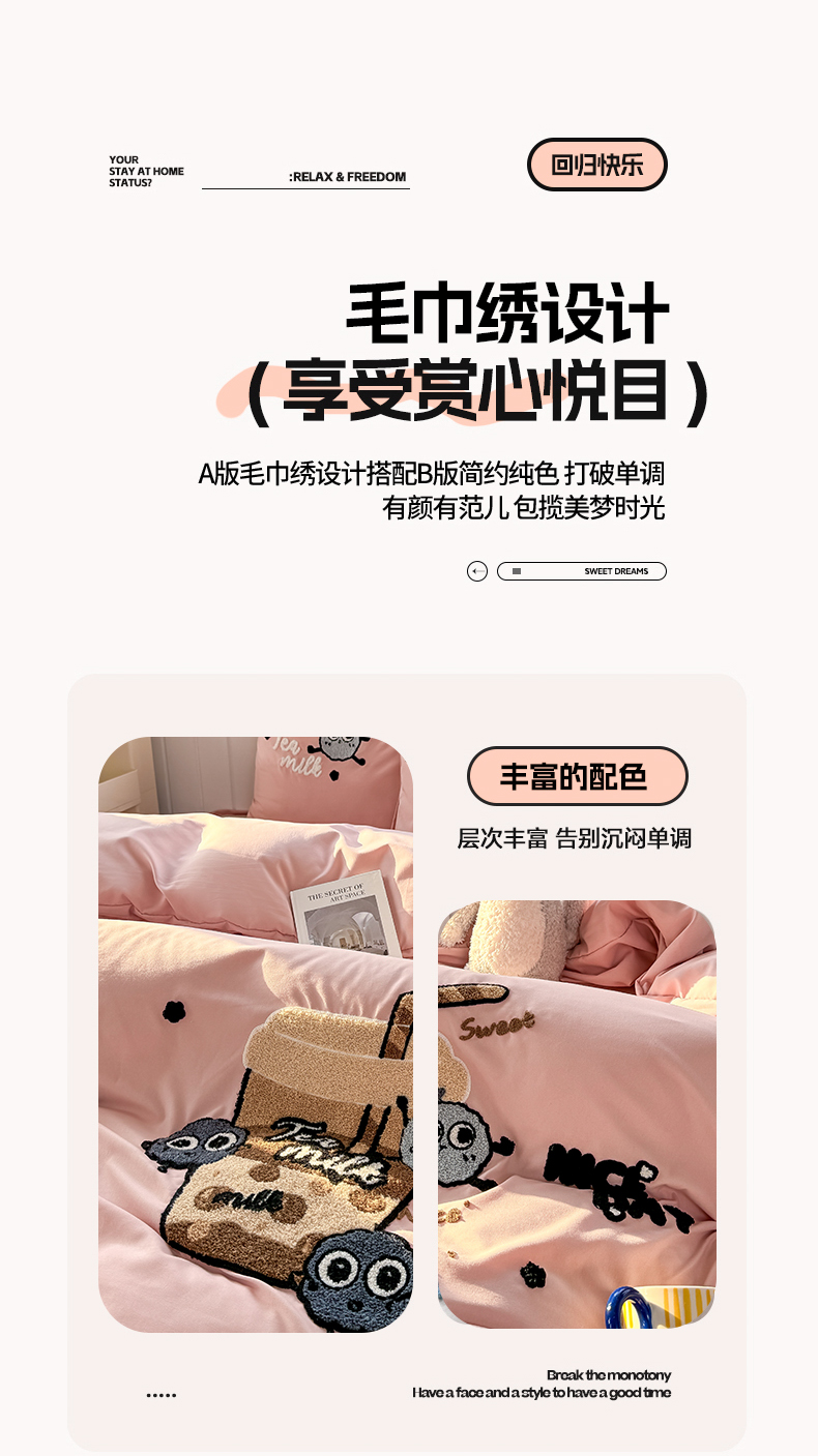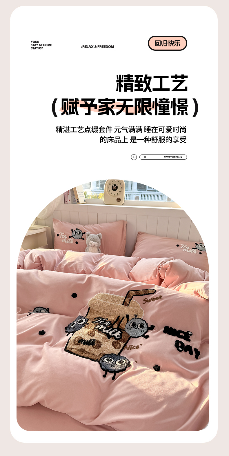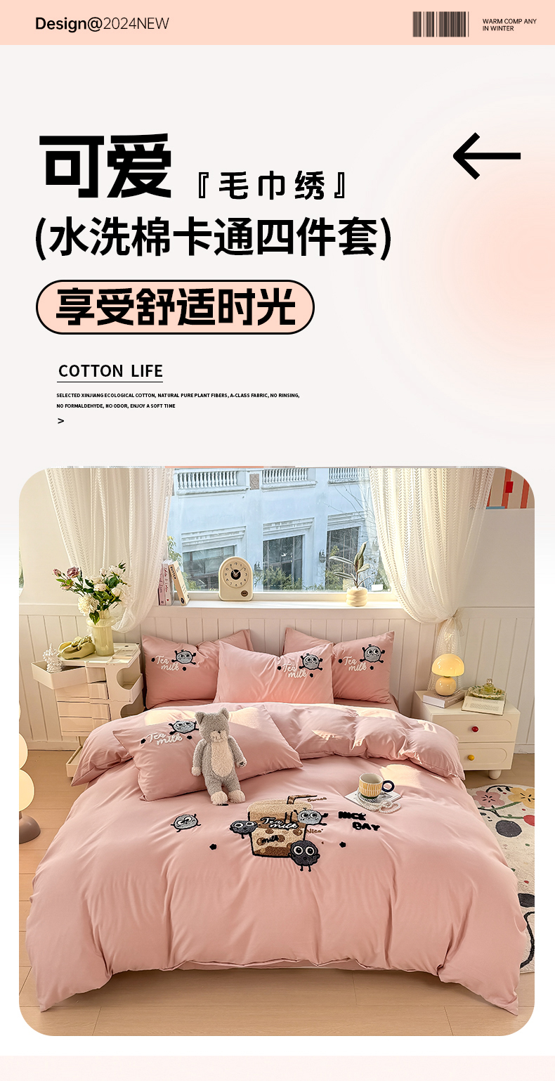 当前位置: 91家纺网 > 商品网购 > 床品套件 > 四件套 > 水洗棉四件套 > 悦织湾 2025新款奶茶毛巾绣四件套水洗棉三件套学生宿舍单人双人床上用品4件套被套 草莓啵啵-奶茶