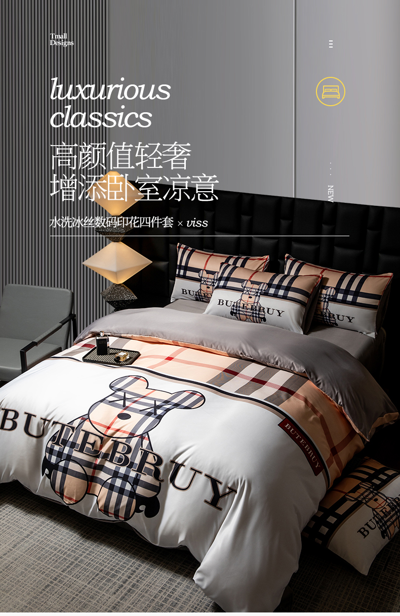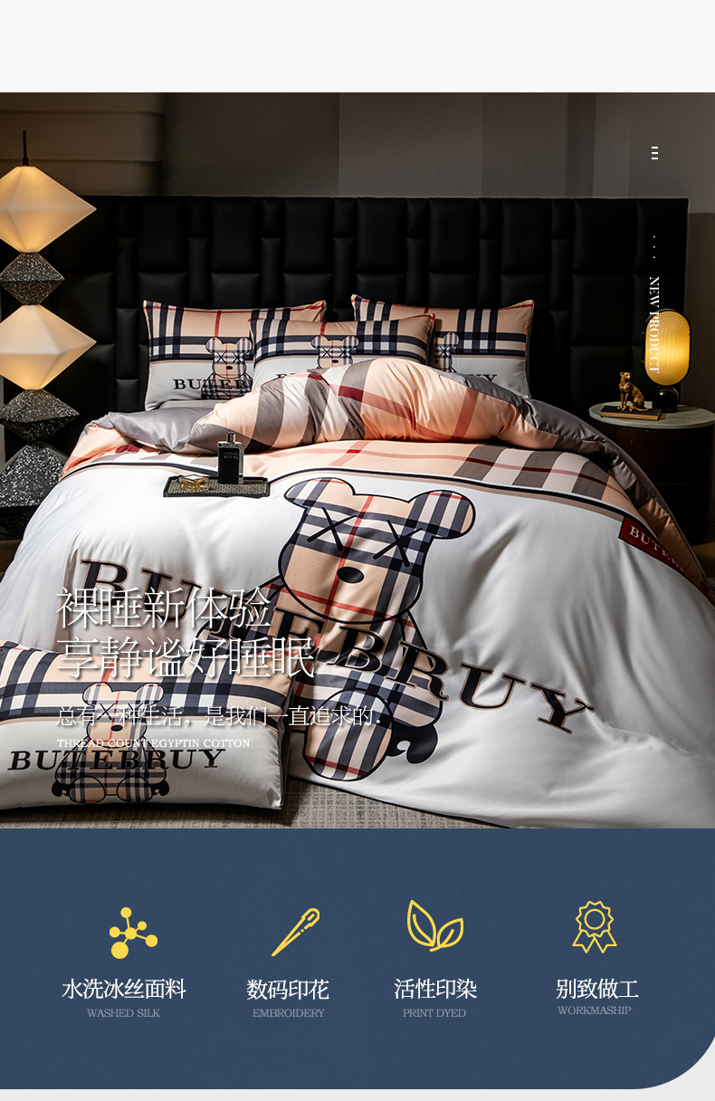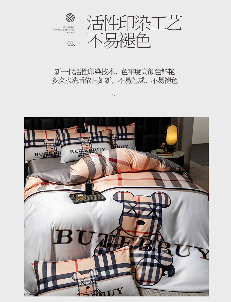 当前位置: 91家纺网 > 商品网购 > 床品套件 > 四件套 > 水洗真丝四件套 > 色鬼布艺 2025新款水洗真丝四件套水洗冰丝数码印花四件套 巴宝熊
