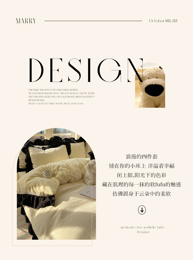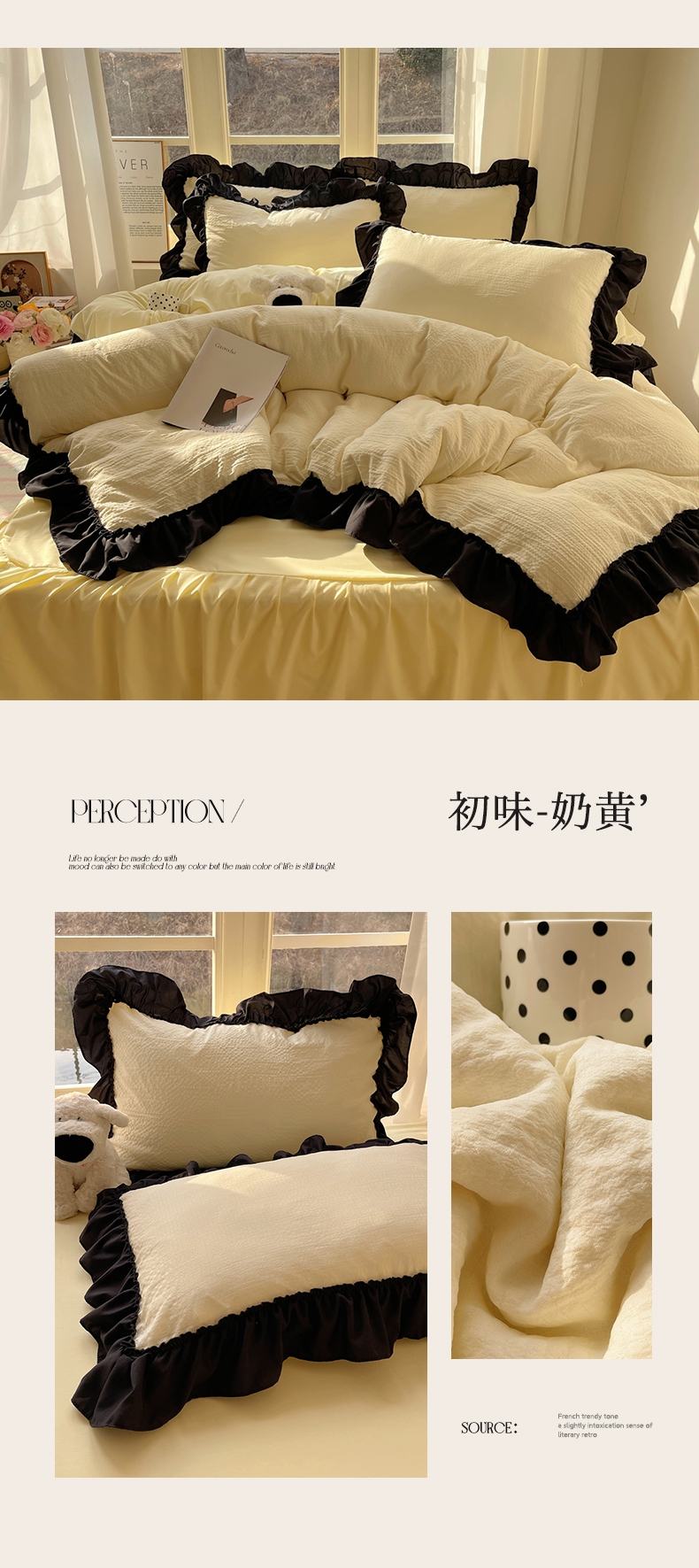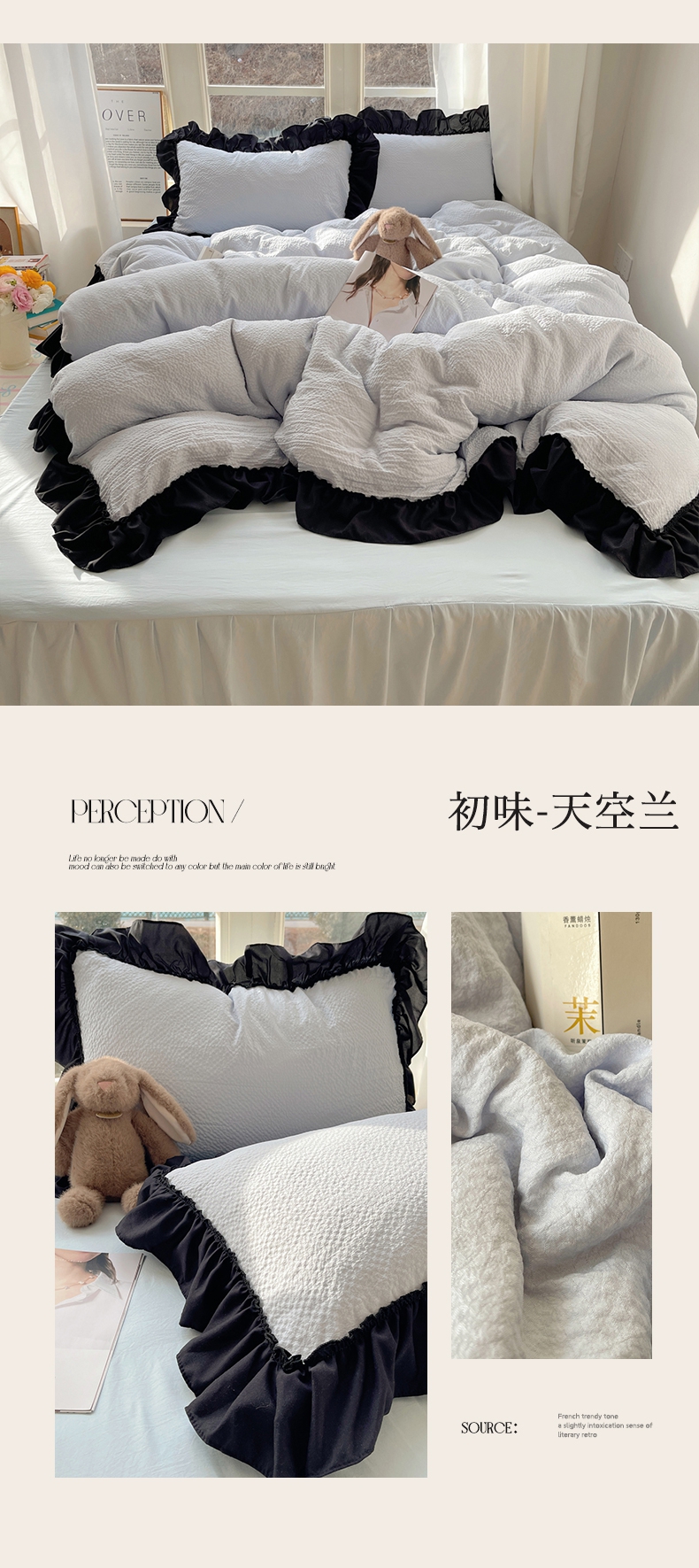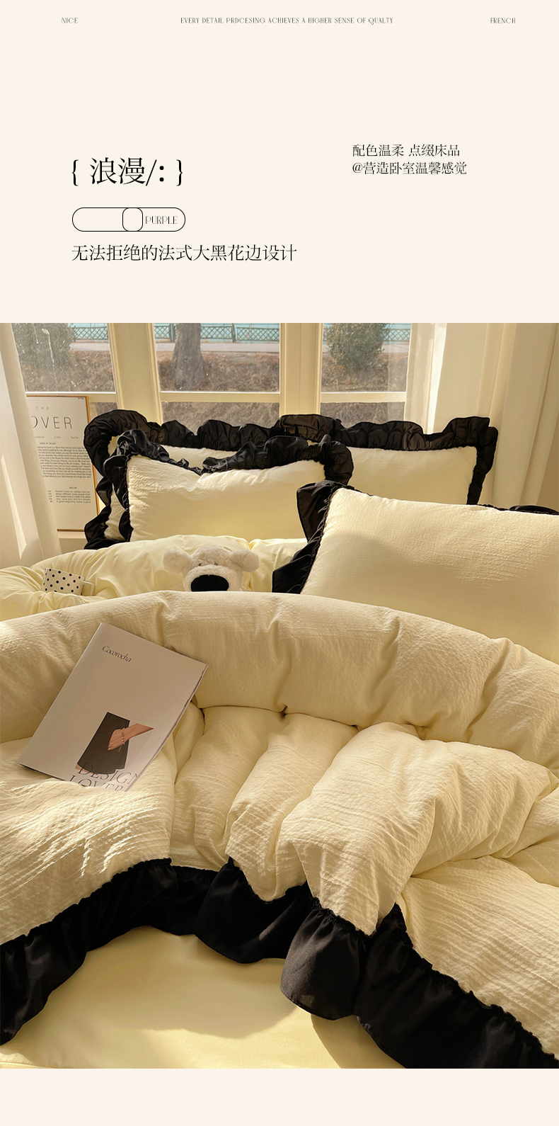 当前位置: 91家纺网 > 商品网购 > 床品套件 > 四件套 > 化纤普通四件套 > (总)韩都家居 2025新款韩版法式黑花边泡泡棉四件套-初味(包含买家秀)