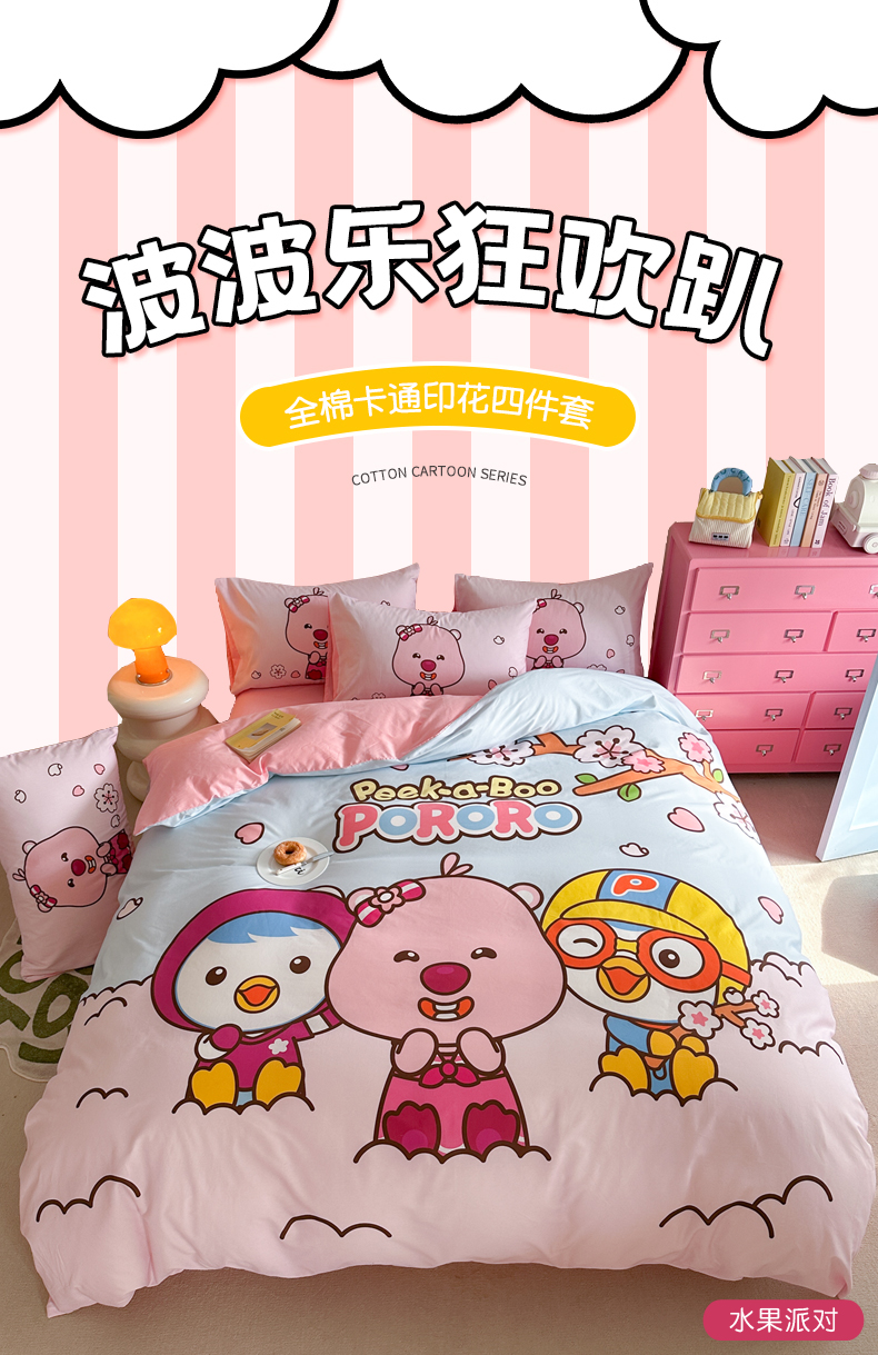 当前位置: 91家纺网 > 商品网购 > 床品套件 > 四件套 > 全棉普通四件套 > 金爱家 2025新款波乐乐系列纯棉数码印花系列四件套 波乐乐-好朋友