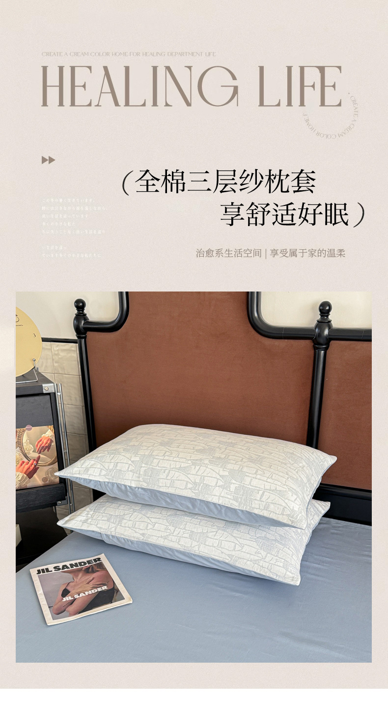 眠博士2025新款AB版简约时尚A类全棉三层纱系列单枕套 三层纱-翠竹-蓝