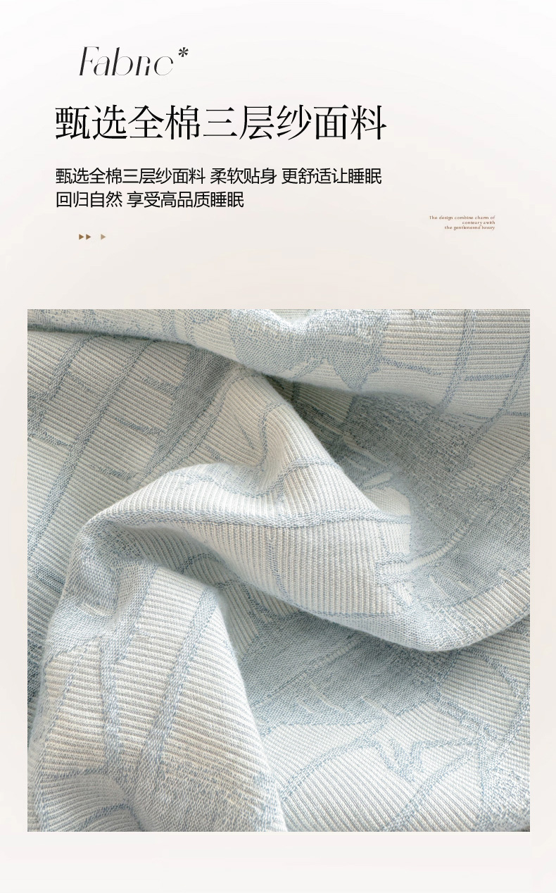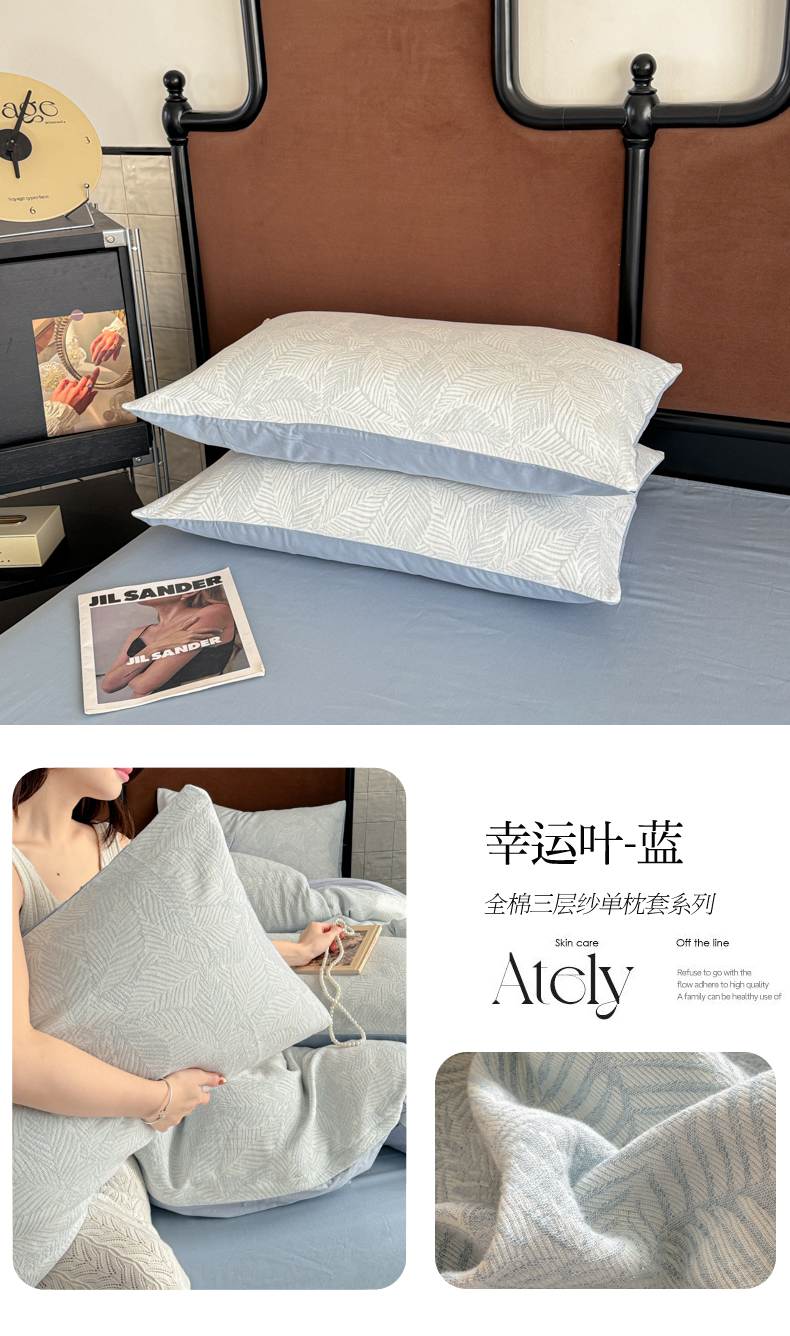 商品名称:眠博士2025新款AB版简约时尚A类全棉三层纱系列单枕套 三层纱-翠竹-蓝