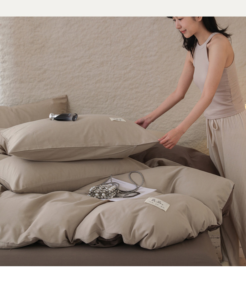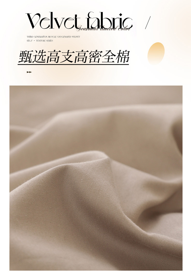 当前位置: 91家纺网 > 商品网购 > 床品套件 > 四件套 > 全棉普通四件套 > 眠博士 2025新款高支高密全棉双拼40支纯色四件套场景二 全棉拼色-杏色+春泥