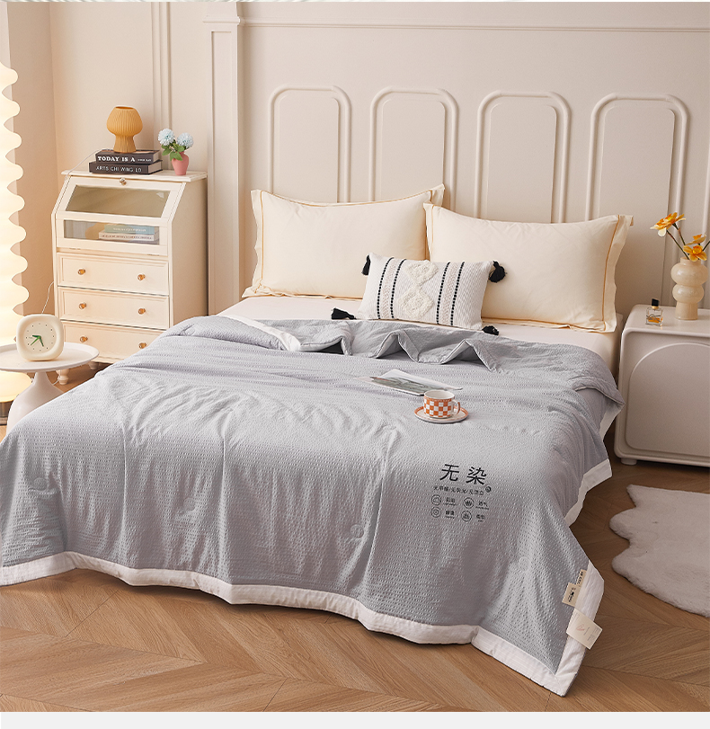 仁凯家纺 2025新款A类无染原棉大豆被夏被夏凉被空调被子 清新灰-粉边