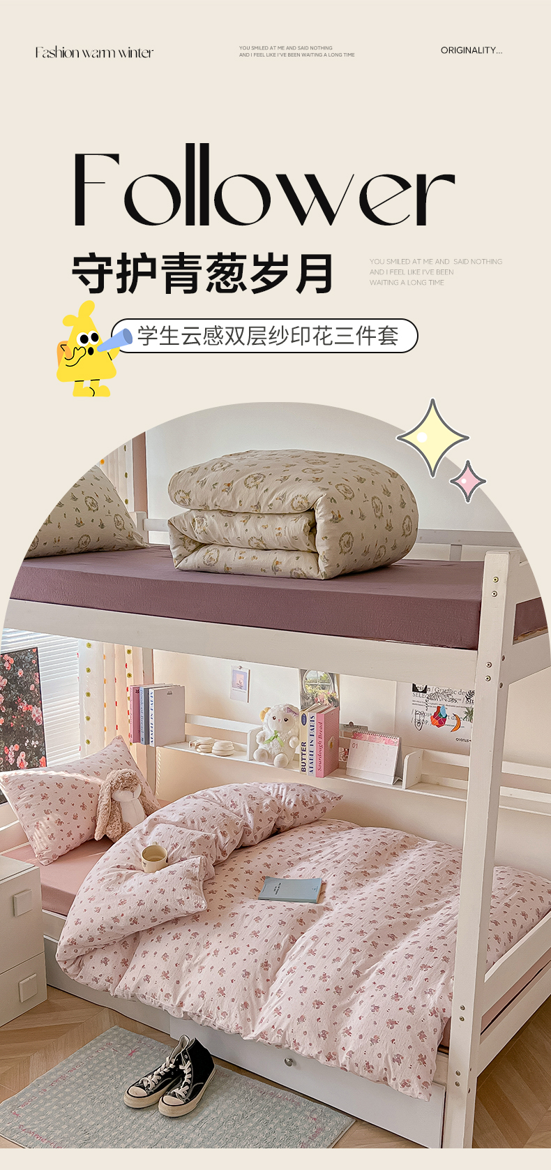 当前位置: 91家纺网 > 商品网购 > 床品套件 > 三件套 > 韩巢家纺 2025新款云感双层纱超柔裸睡级学生宿舍上下铺床单被套三件套-(提供卖家秀) 落日暮年