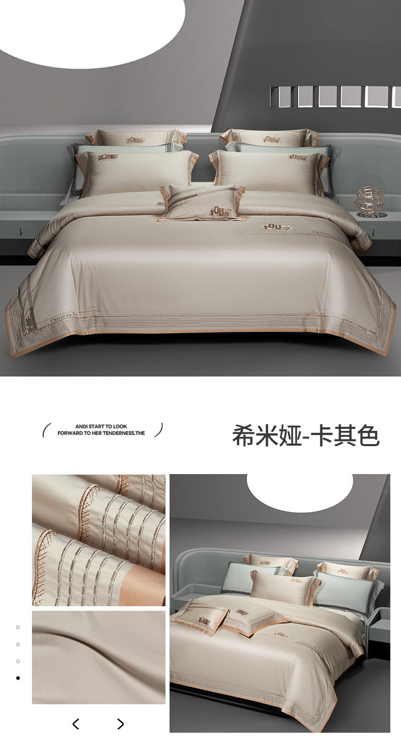 商品名称:高大尚婚庆馆 2025春夏新款 长绒棉高端绣花四件套-希米娅 卡其色
