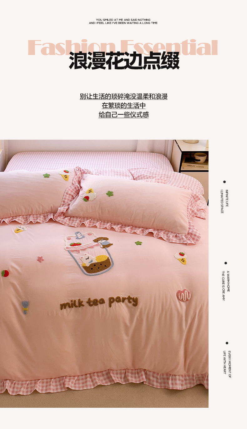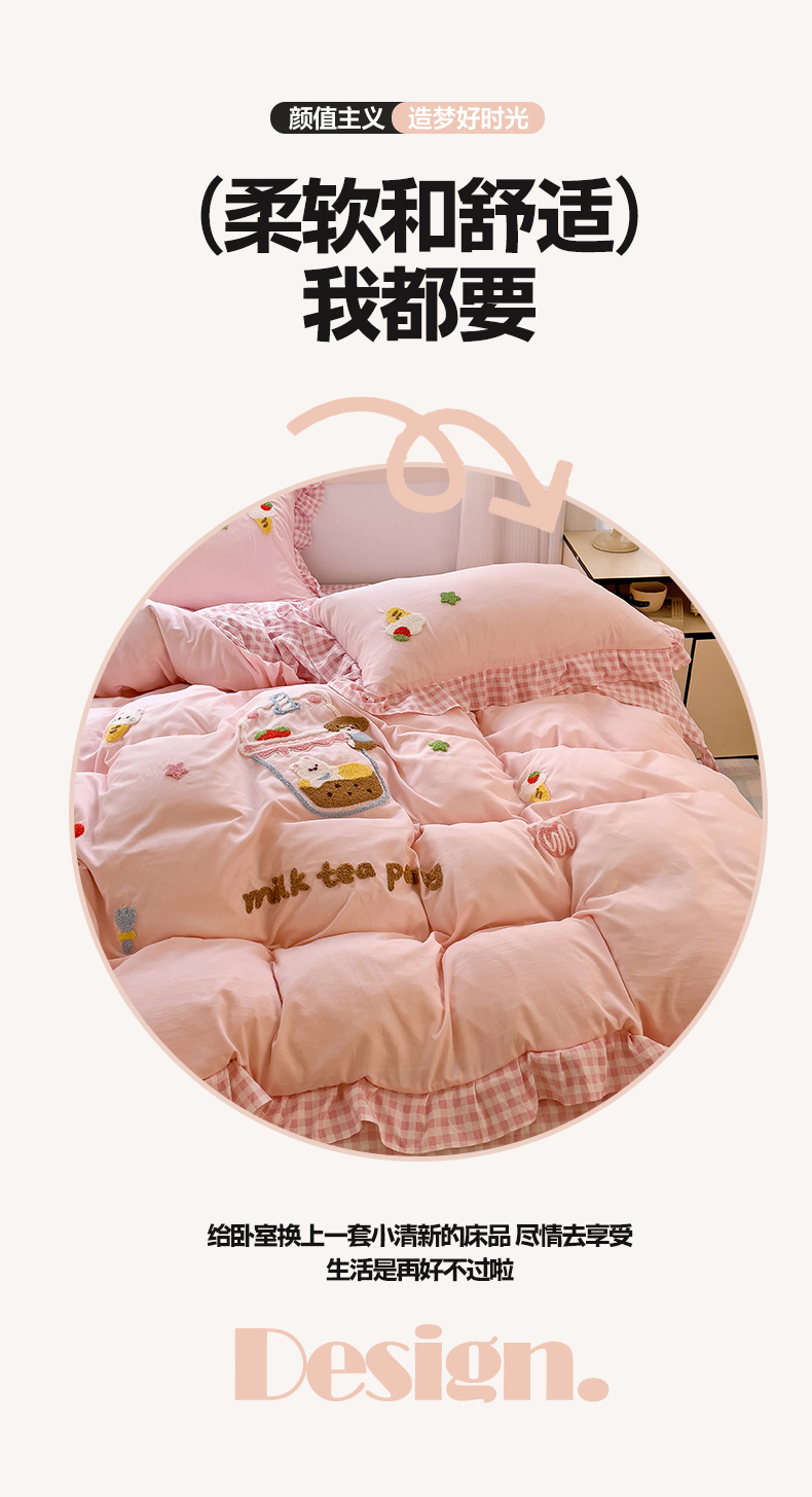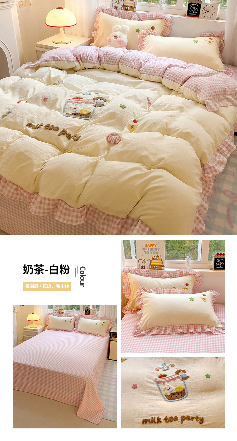 当前位置: 91家纺网 > 商品网购 > 床品套件 > 四件套 > 其它四件套 > 梦之岛 2025新款ins韩版奶茶风云朵棉可爱毛巾绣四件套 奶茶-白粉