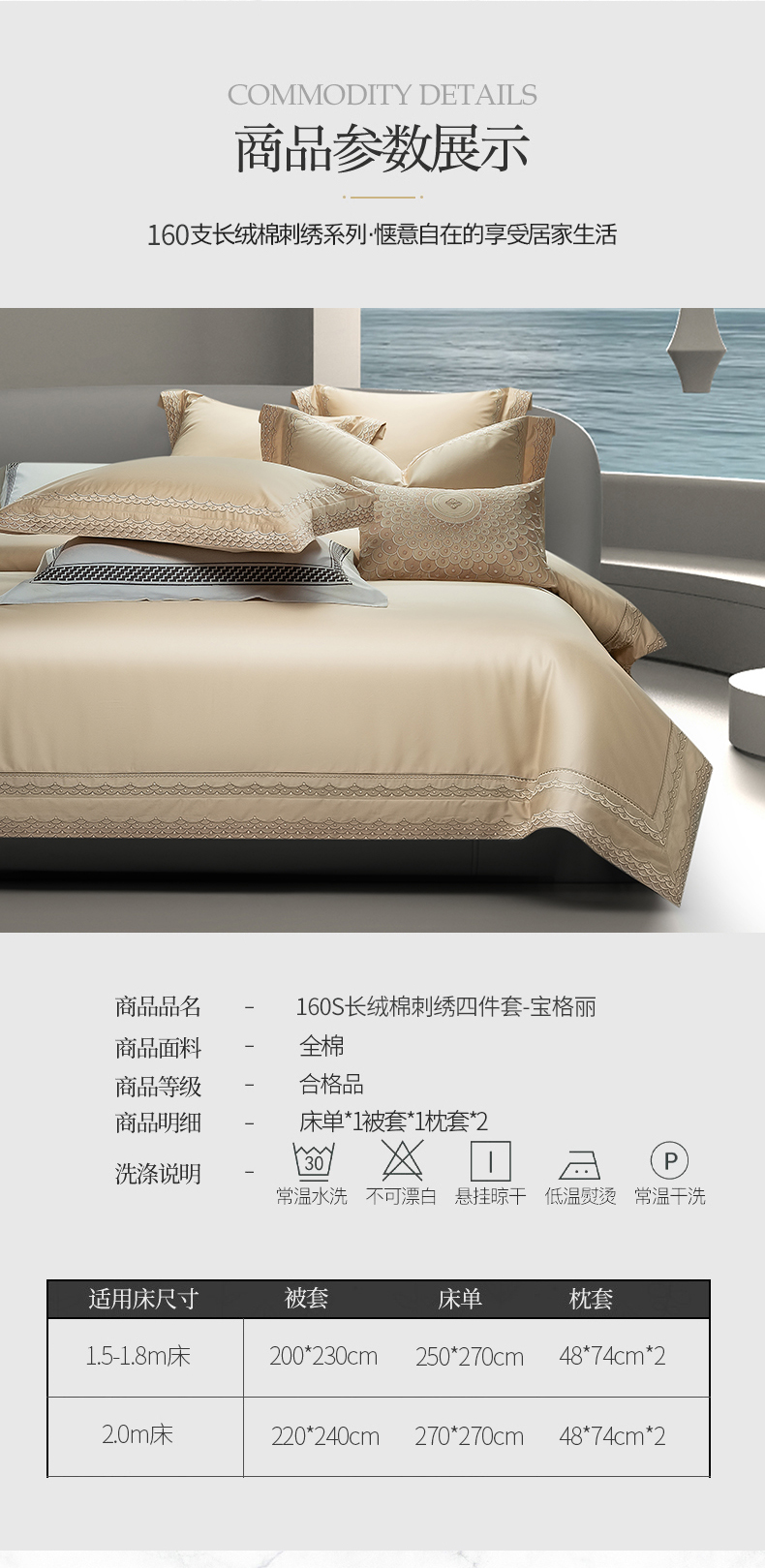 商品名称:(总)高大尚婚庆馆 2025春夏新款 长绒棉高端绣花四件套-宝格丽