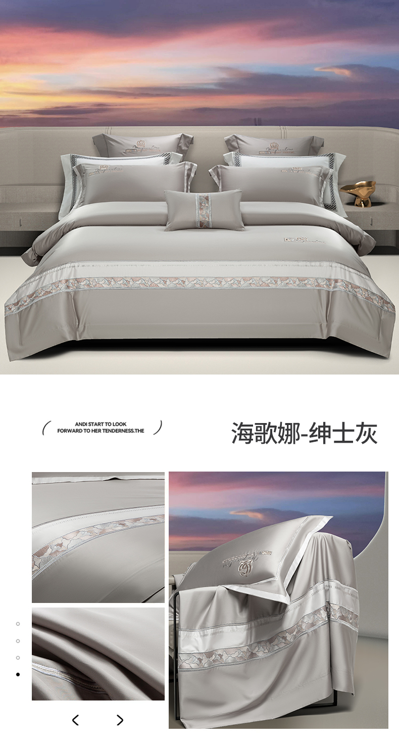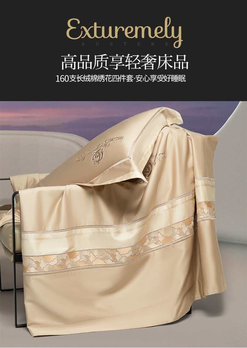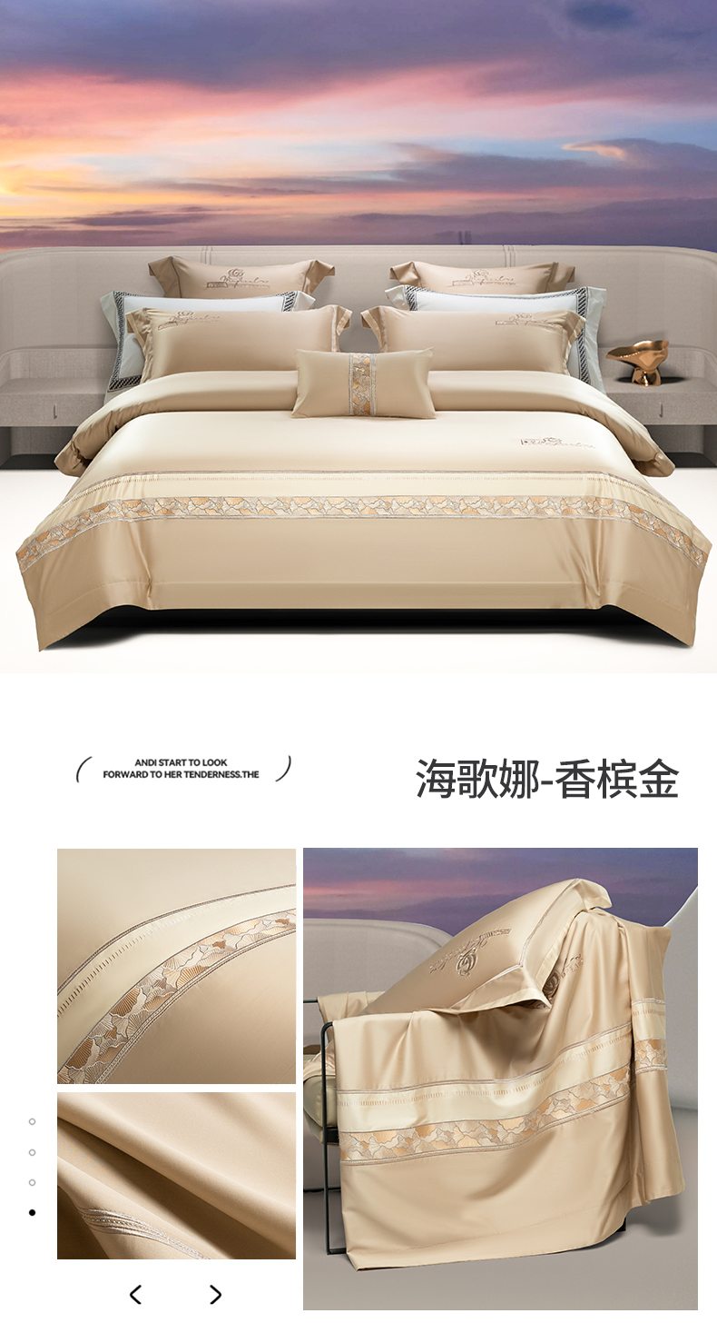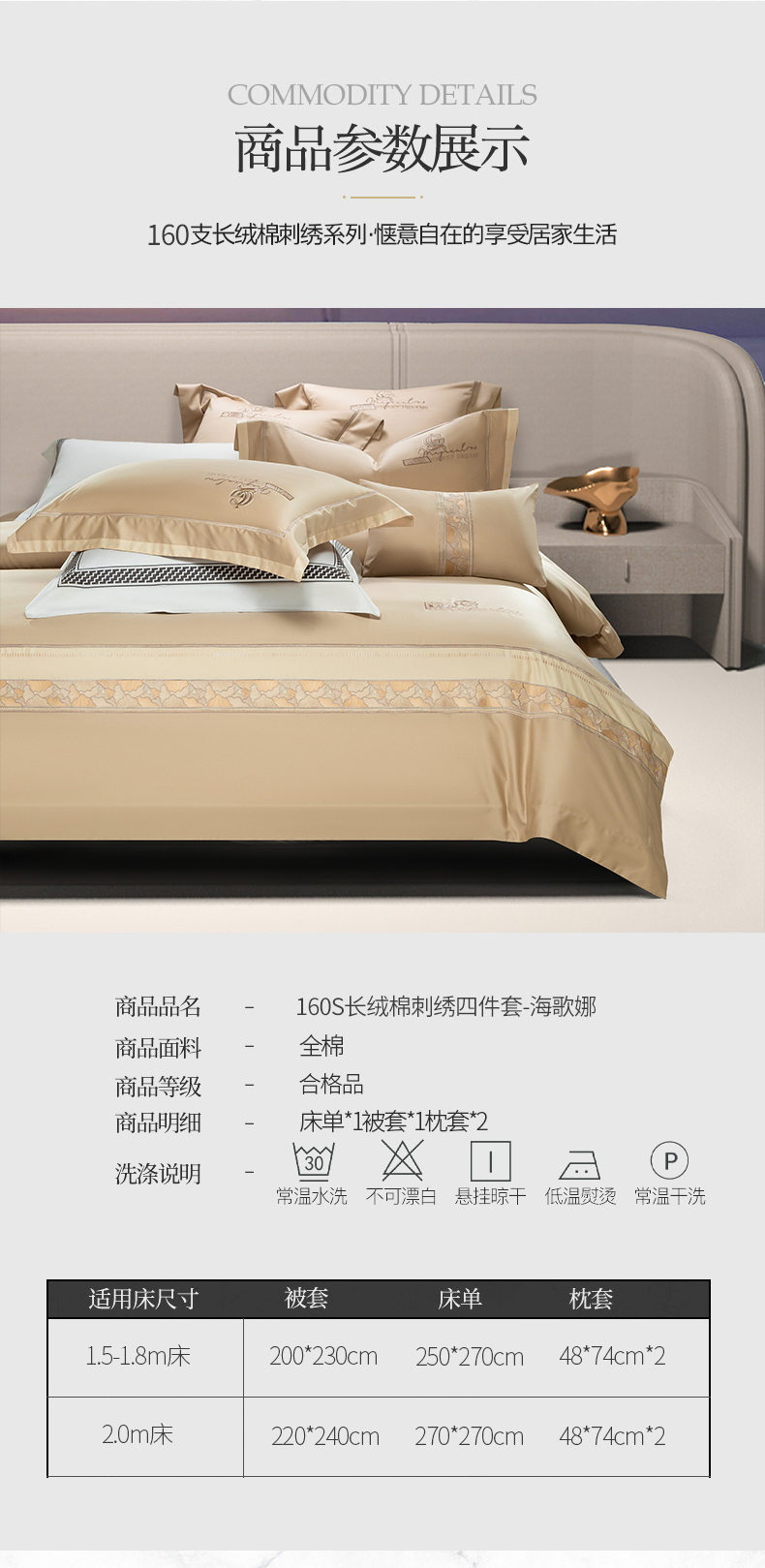 商品名称:(总)高大尚婚庆馆 2025春夏新款 长绒棉高端绣花四件套-海歌娜