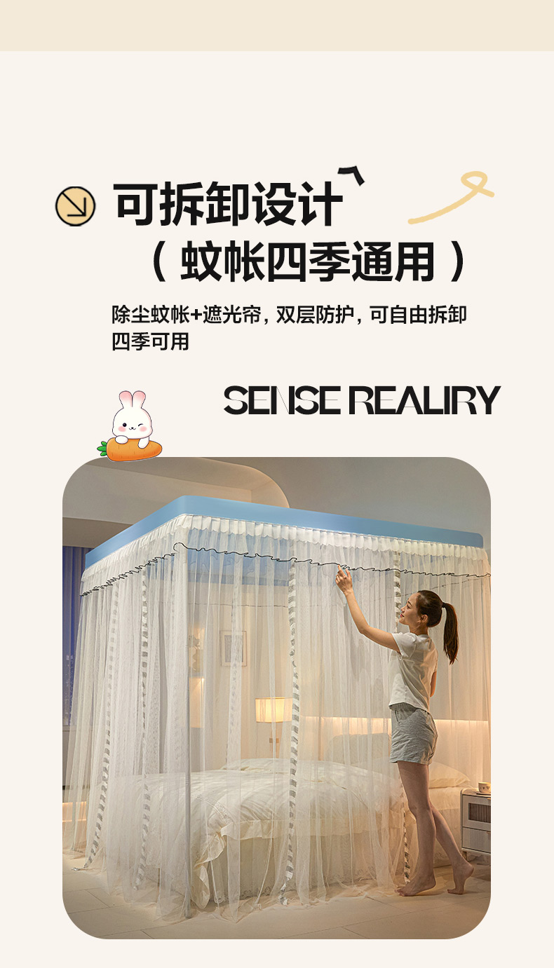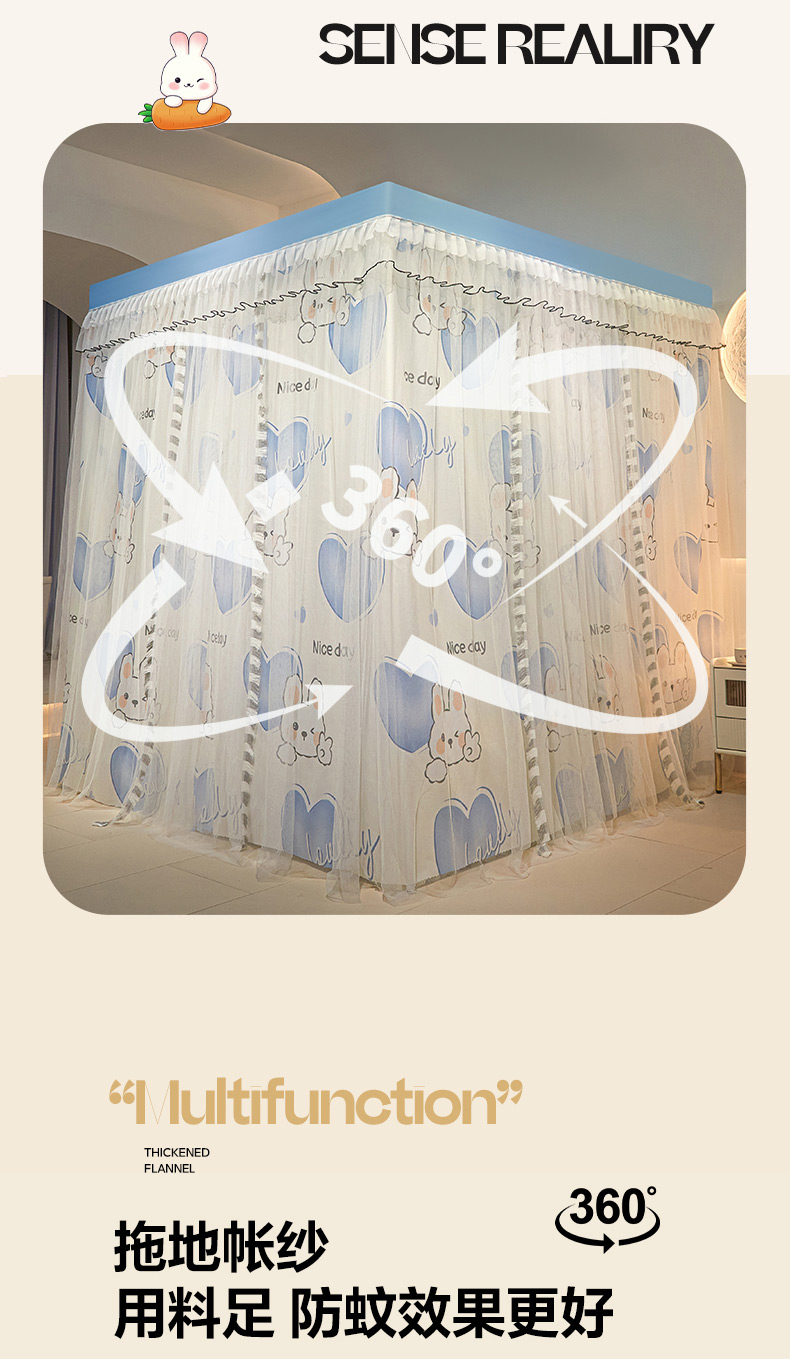 当前位置: 91家纺网 > 商品网购 > 床上用品 > 蚊帐 > 坐床式蚊帐 > 世婕 2025新款四季款三开门落地床幔蚊帐 幻城-蹦极兔