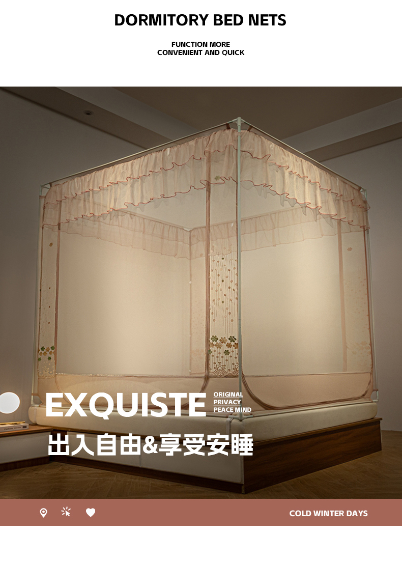 (总)飞轮海蚊帐 2025新款外贸出口跨境专供蚊帐-015,白色,粉色,米黄,紫色