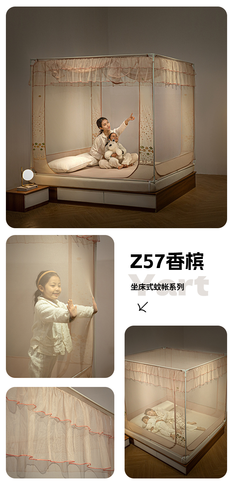 飞轮海蚊帐 2025新款蕾丝花边坐床蚊帐系列-Z5 Z57香槟