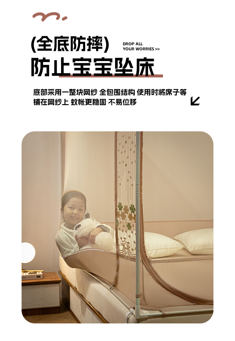 (总)飞轮海蚊帐 2025新款三开门遮光蚊帐LX-1,绿叶仙踪,奶油黄,香槟点点,元气桃,字母小熊