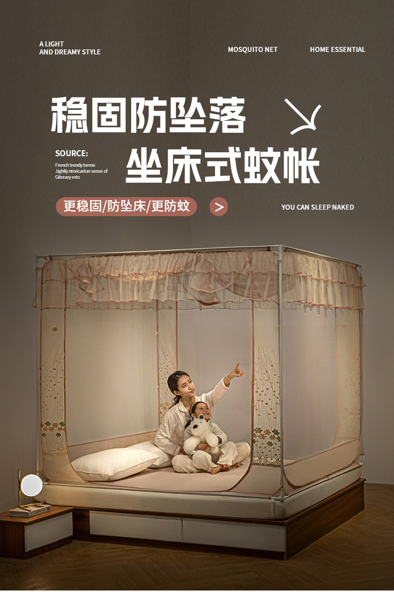 商品名称:飞轮海蚊帐 2025新款蕾丝花边坐床蚊帐系列-Z5 Z57香槟