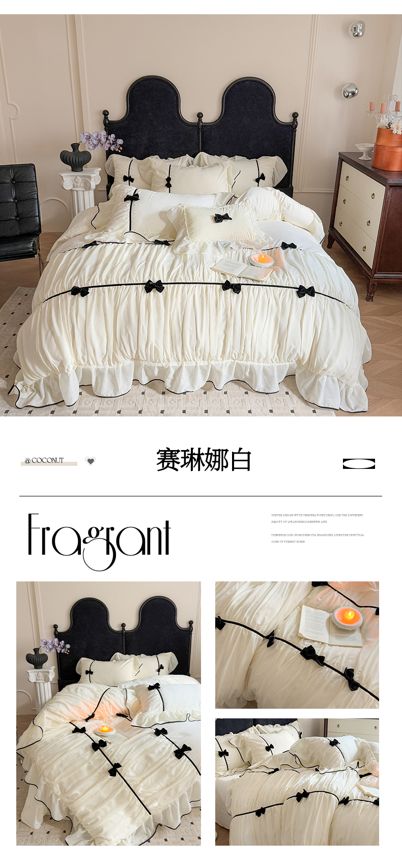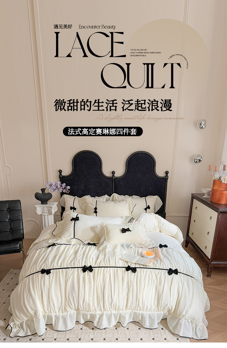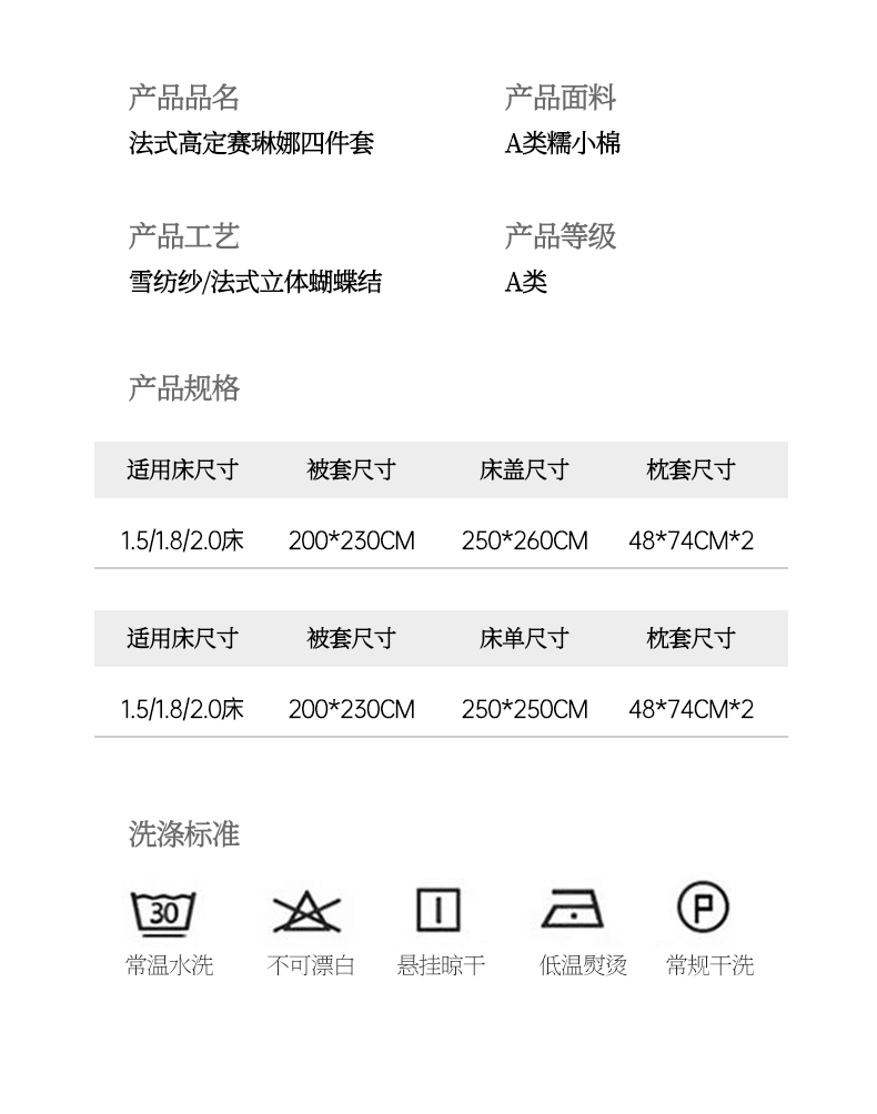 当前位置: 91家纺网 > 商品网购 > 床品套件 > 四件套 > 其它四件套 > 吾欢心 2025新款A类糯小棉法式高定赛琳娜系列四件套 赛琳娜白