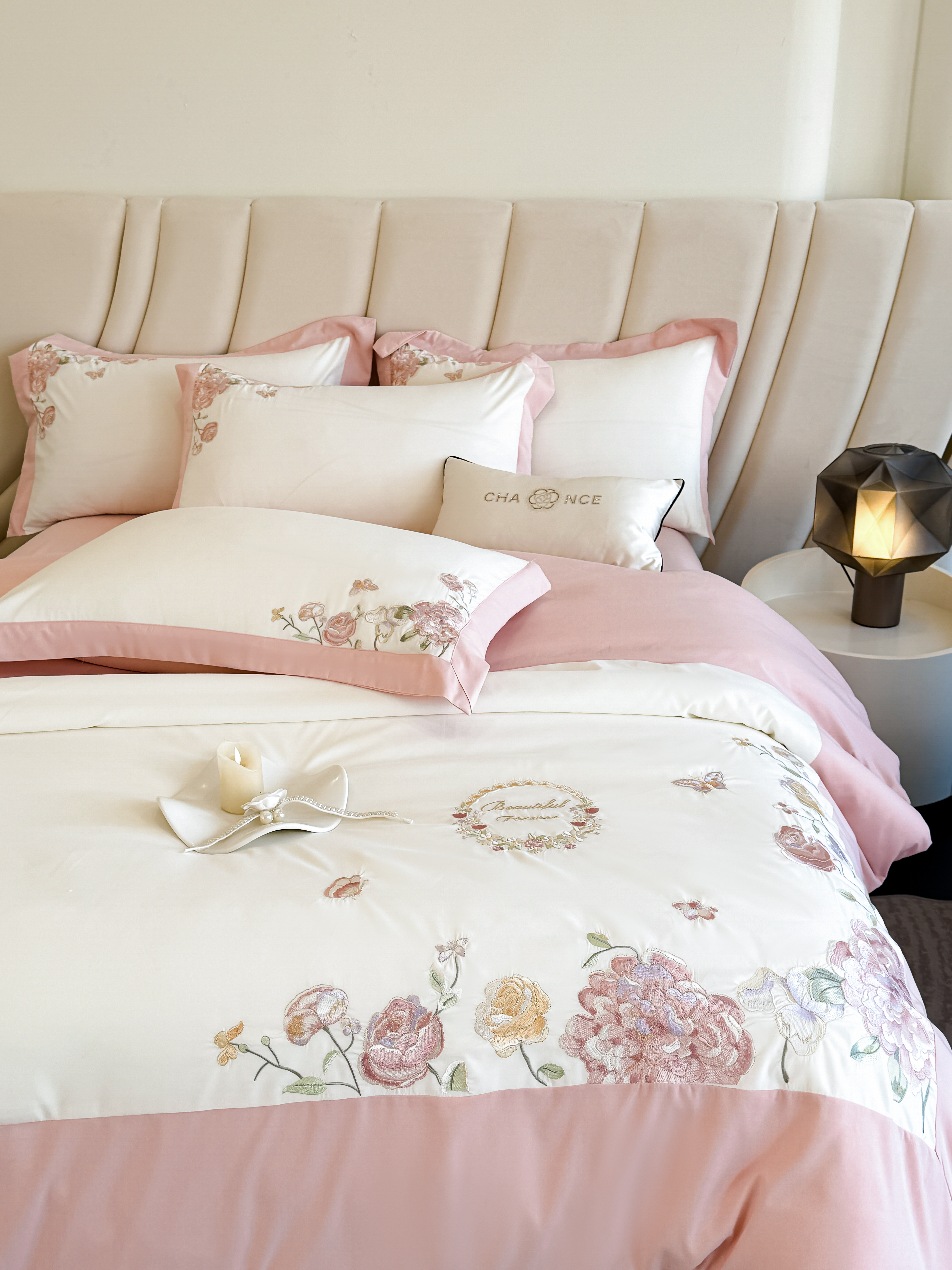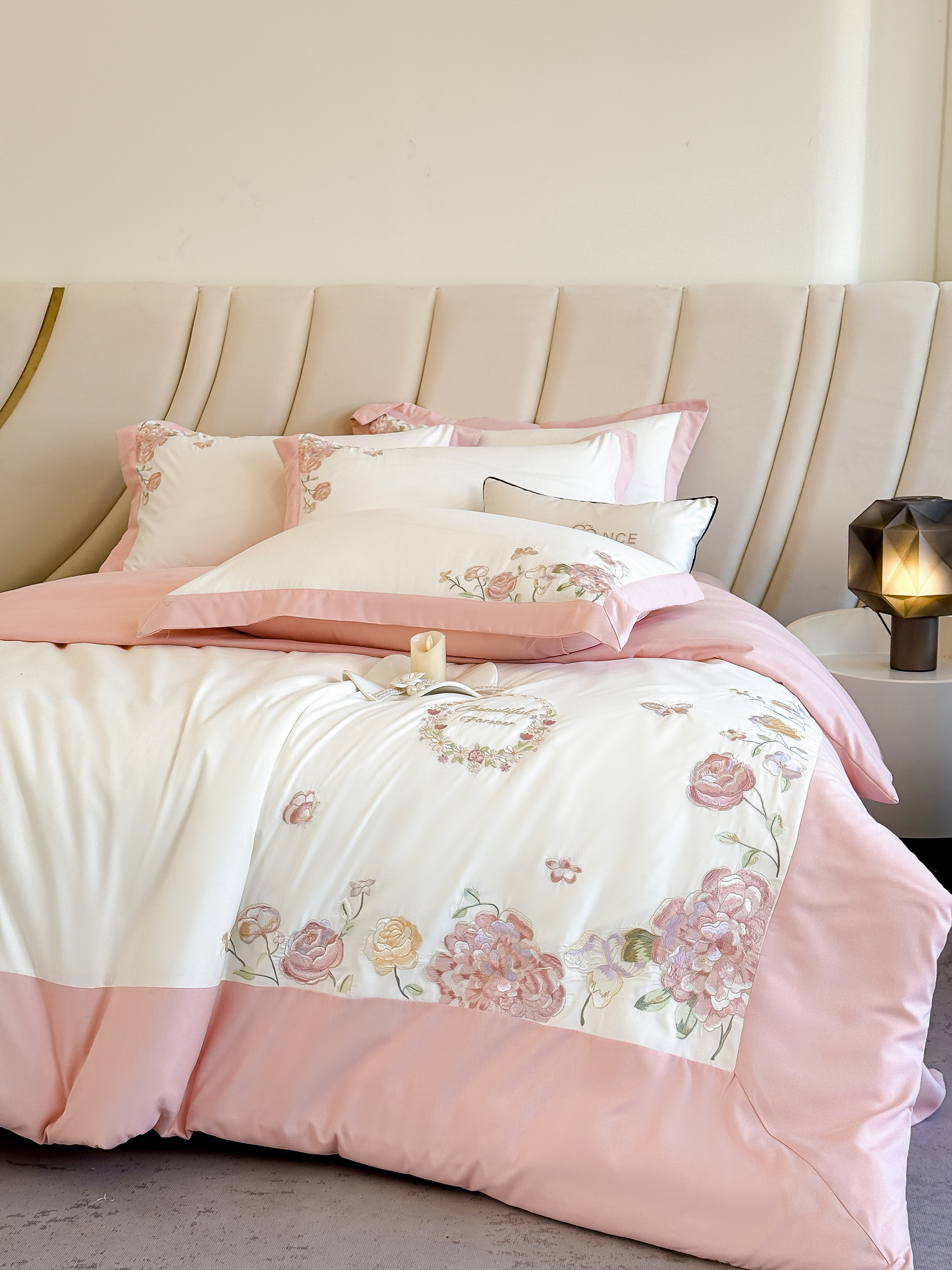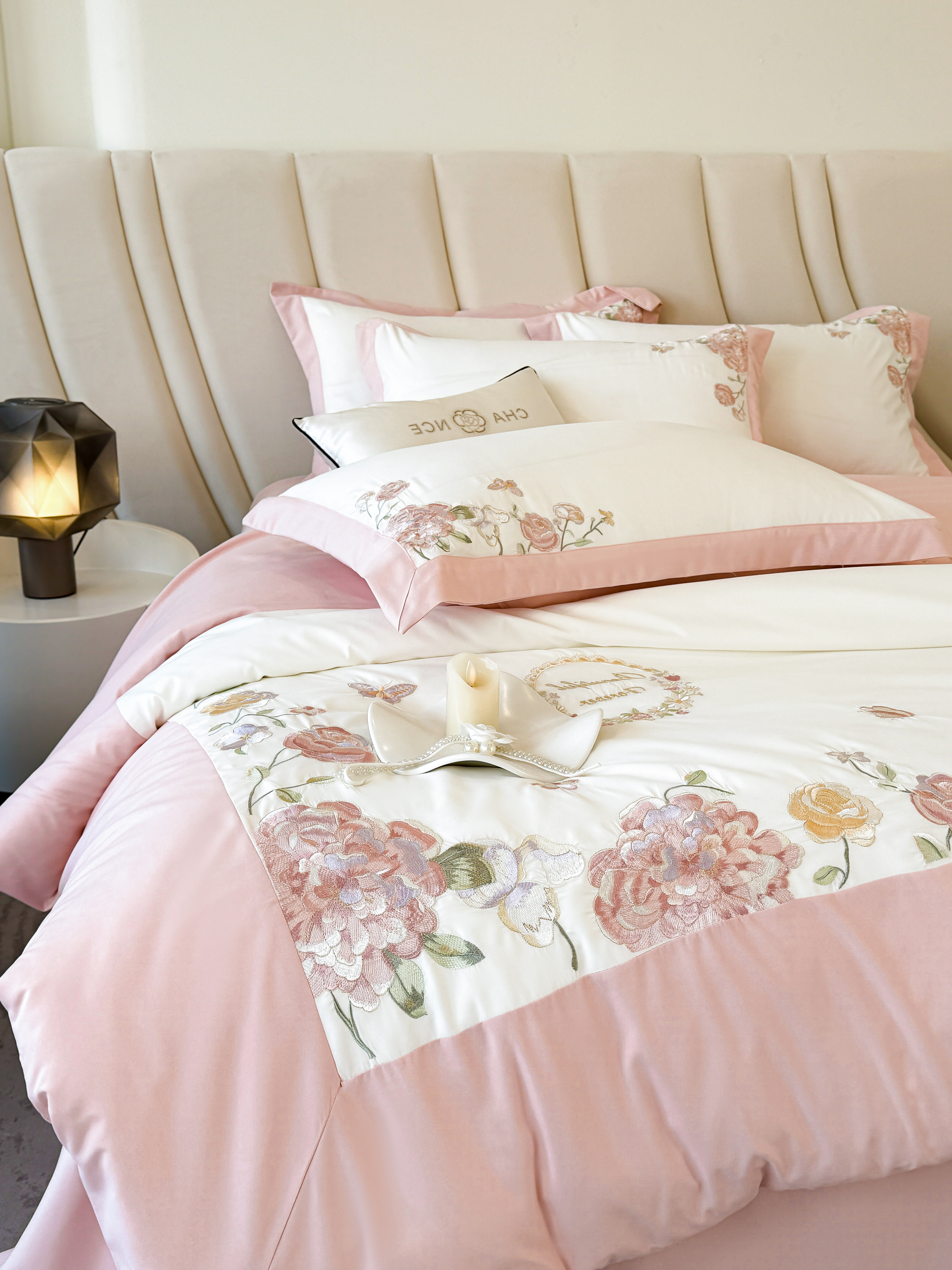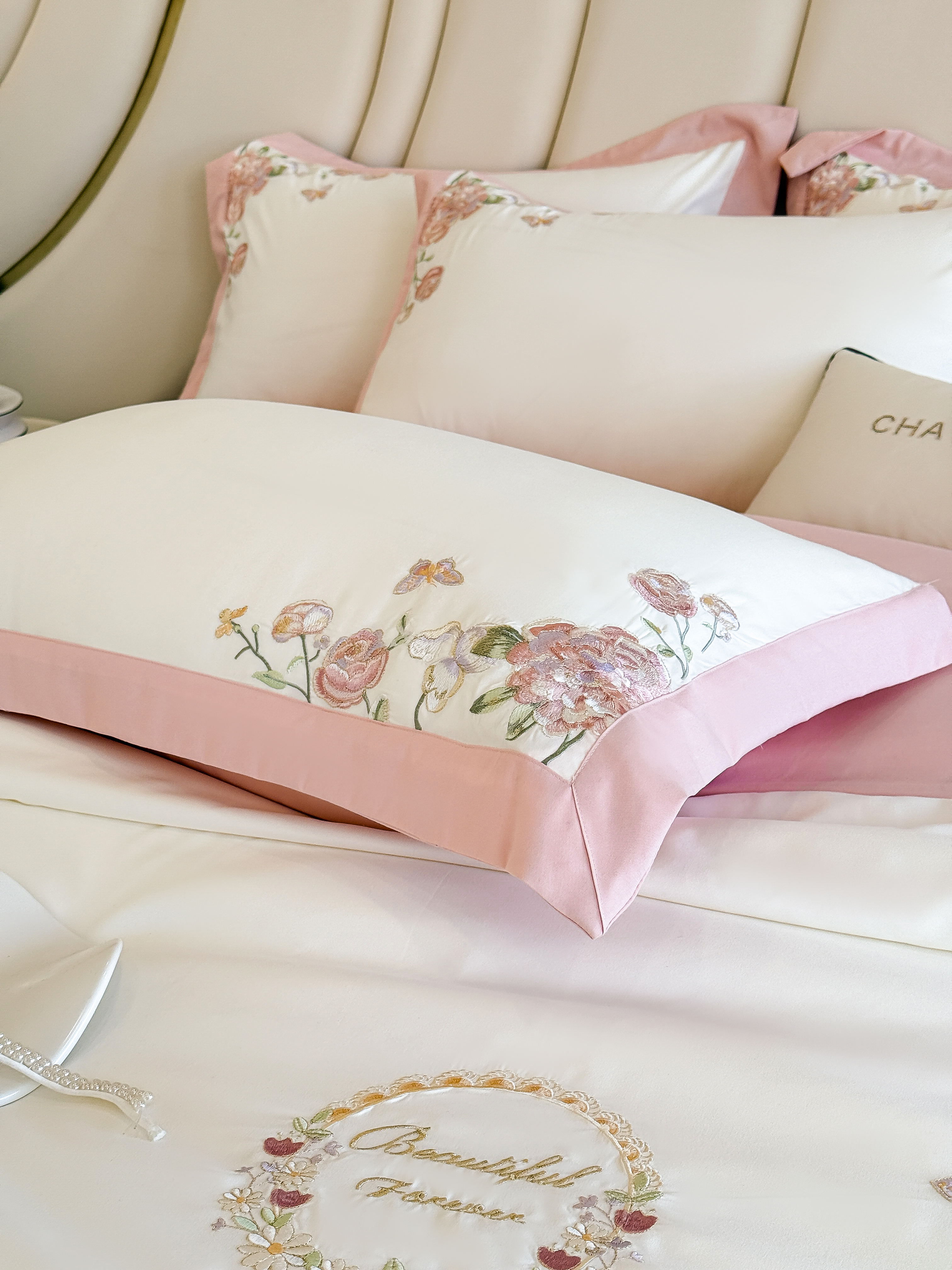 2025新款水洗棉伊莉莎系列四件套 伊莉莎-白粉