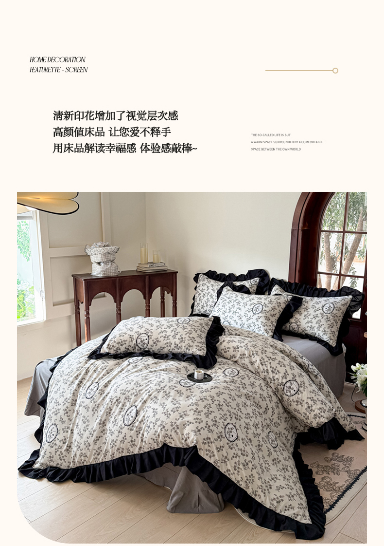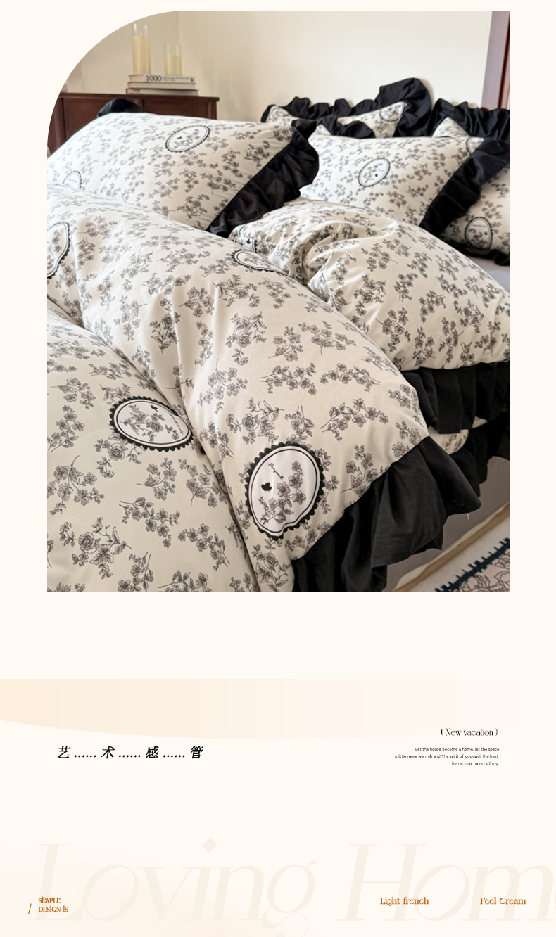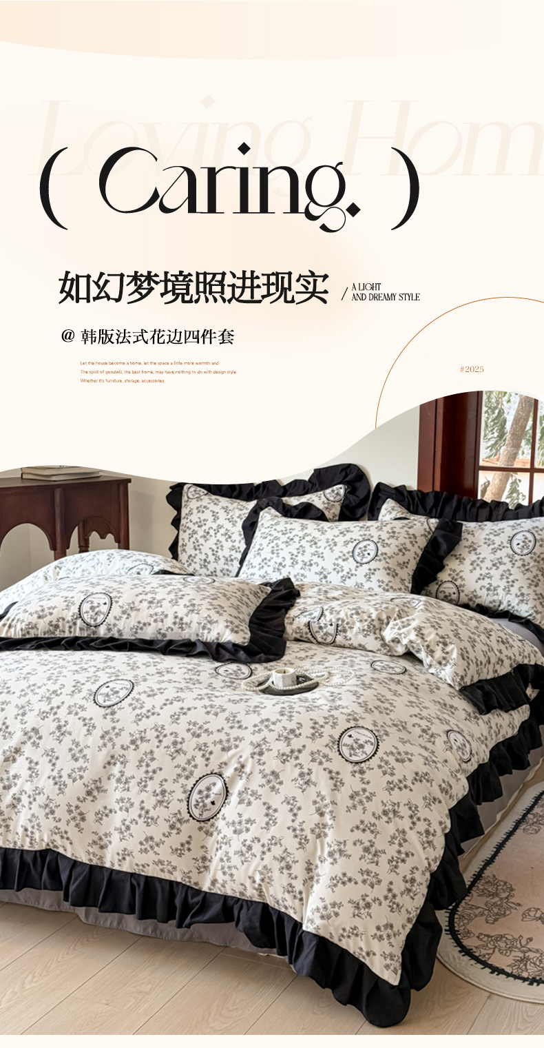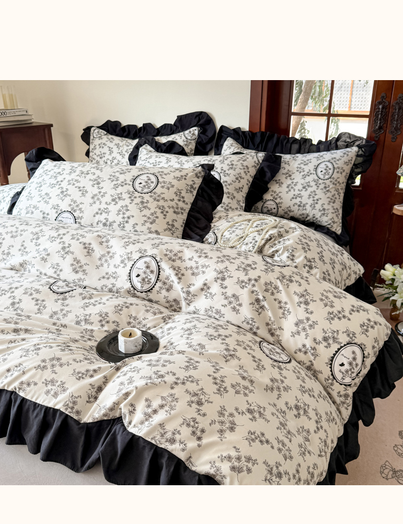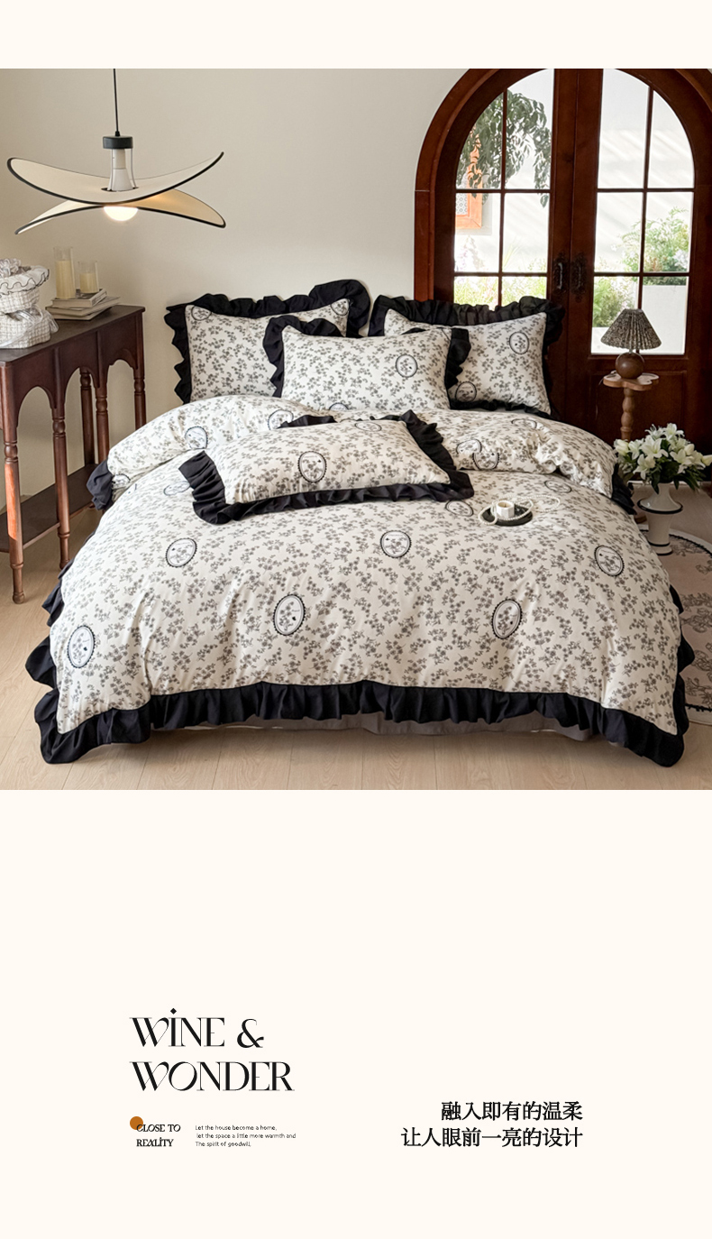 当前位置: 91家纺网 > 商品网购 > 床品套件 > 四件套 > 化纤活性四件套 > 晚爱 2025新款法式花边水洗棉四件套赫本风韩版针织云朵棉三件套 法式风-庄园