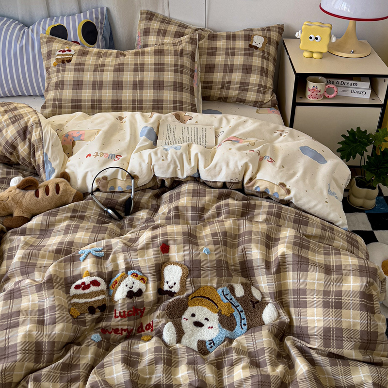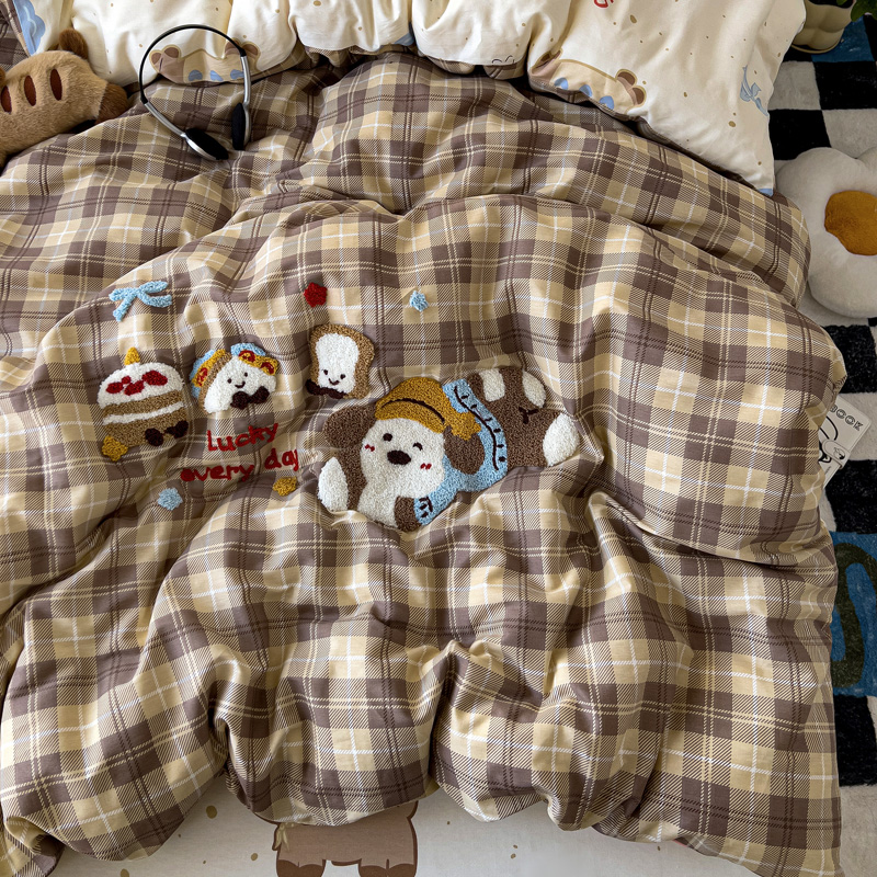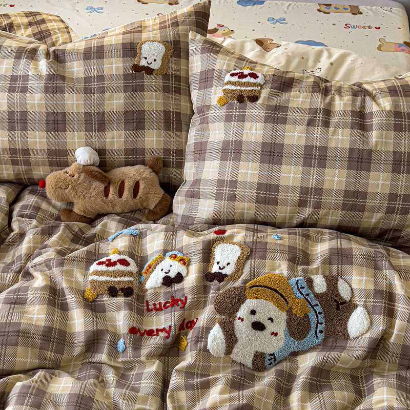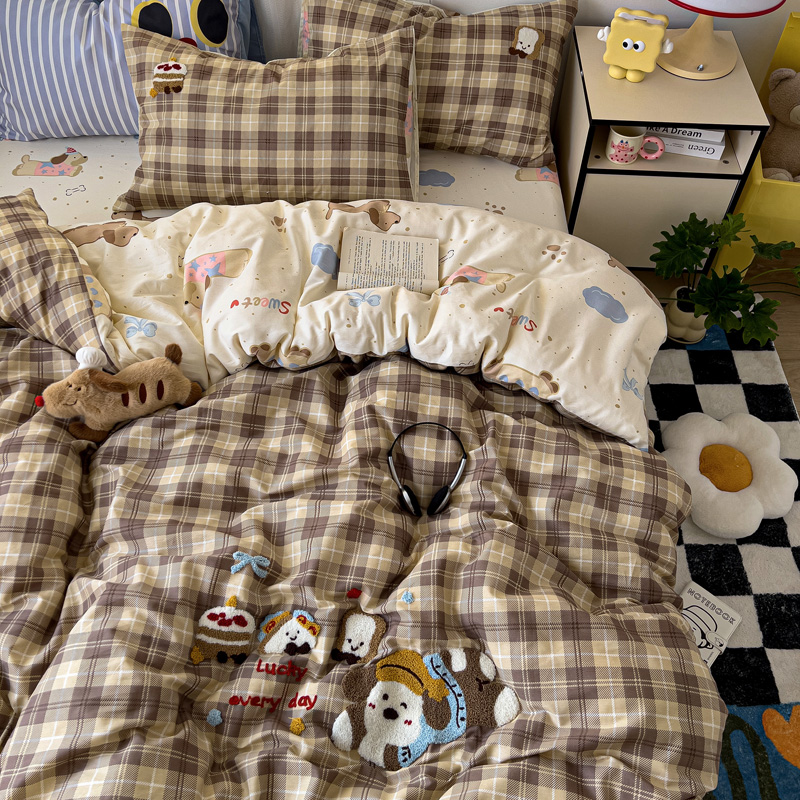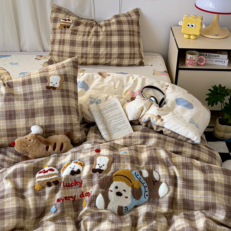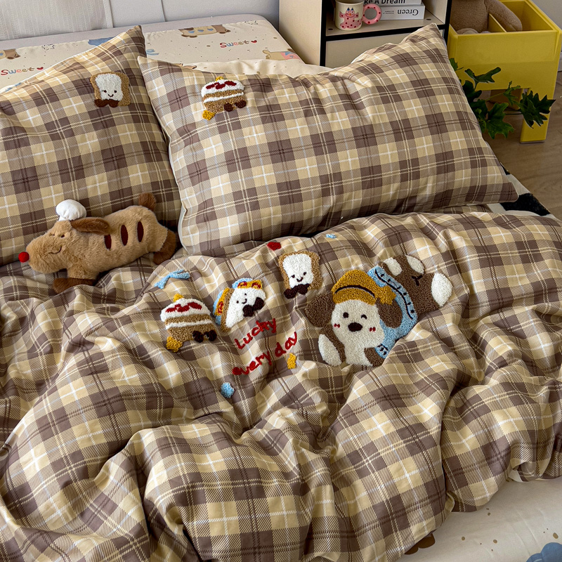 商品名称:云锦家居 2025新款13370纯棉毛巾绣呆萌系列四件套 面包趴趴狗