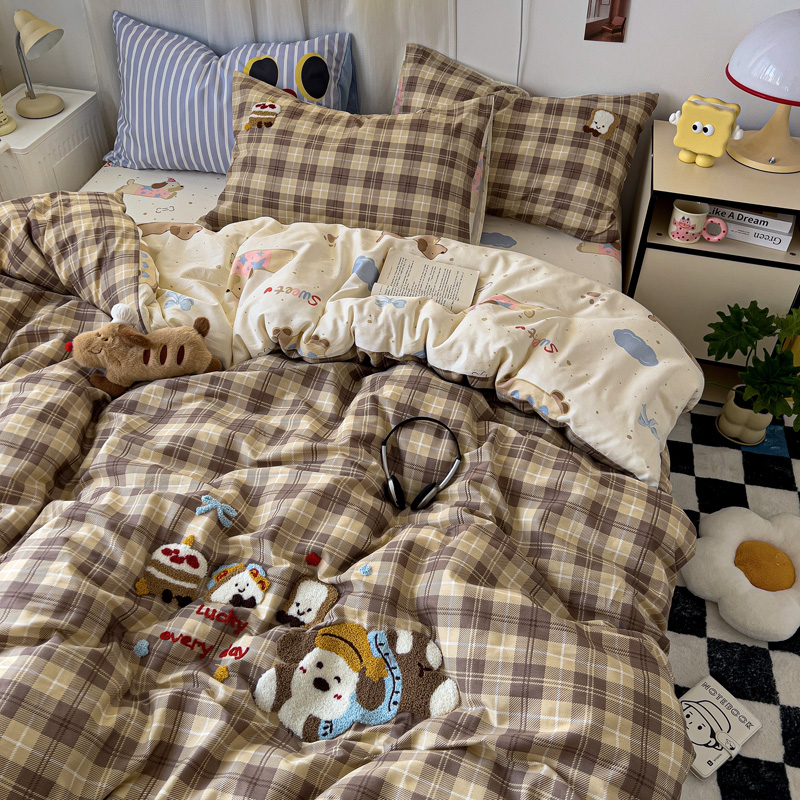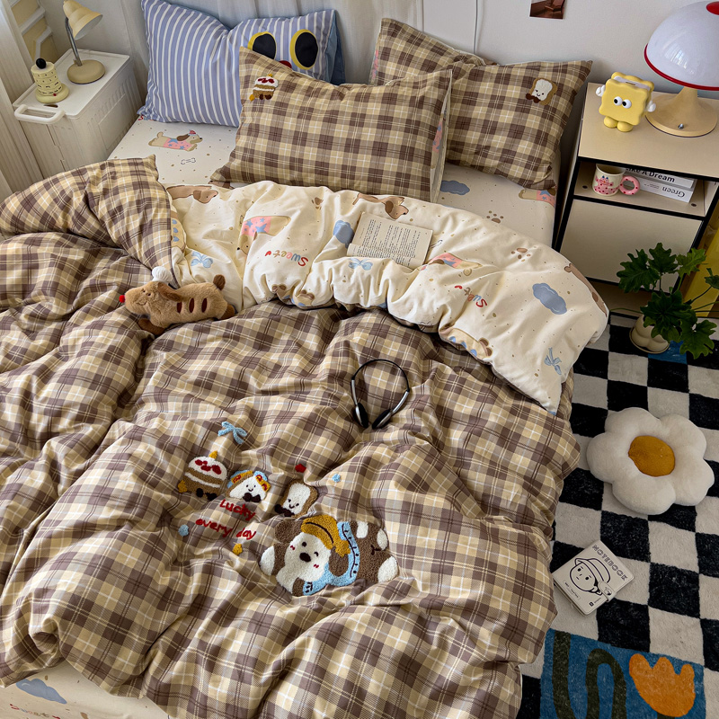 云锦家居 2025新款13370纯棉毛巾绣呆萌系列四件套 面包趴趴狗