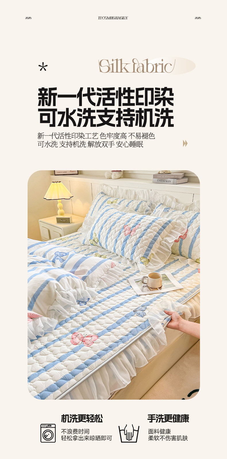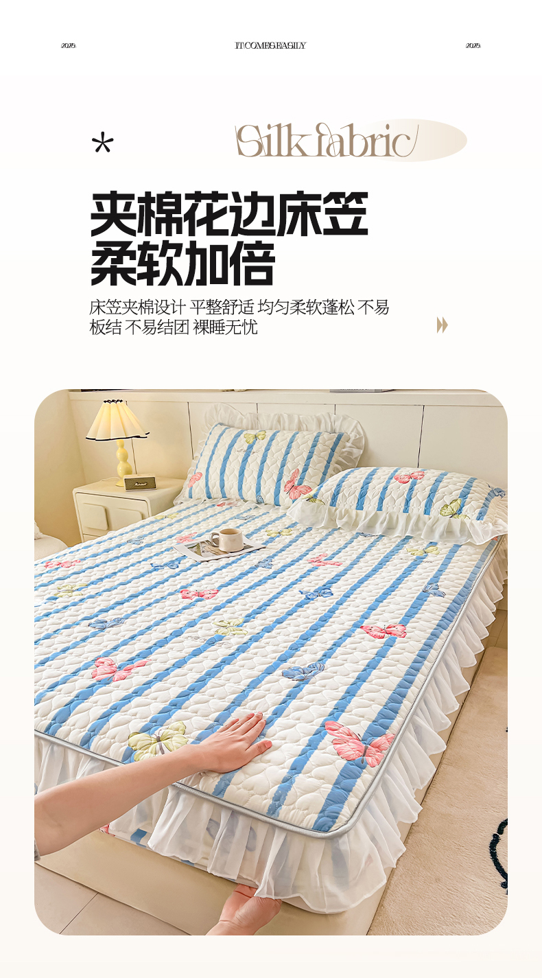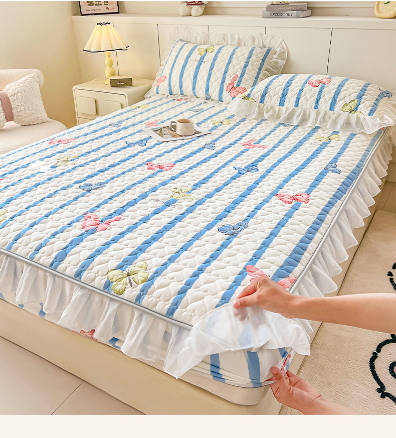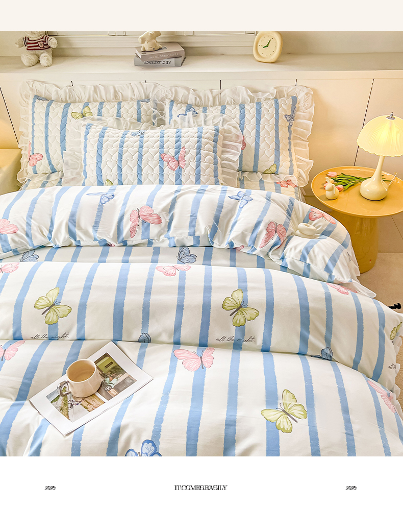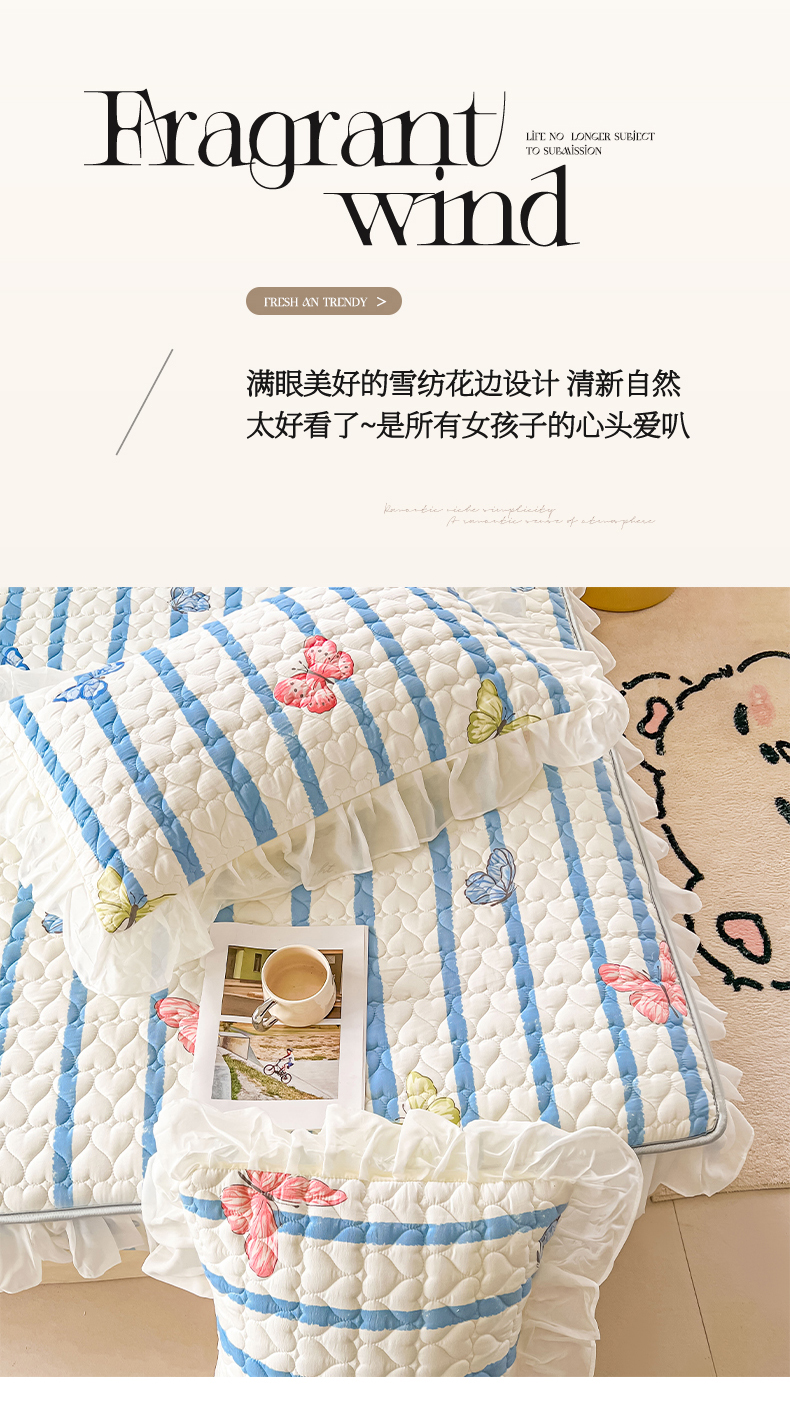 当前位置: 91家纺网 > 商品网购 > 床品套件 > 四件套 > 其它四件套 > 眠势力 2025新款韩版花边床笠款四件套雪纺公主风ins夹棉四季通用席梦思保护套 花蝴蝶