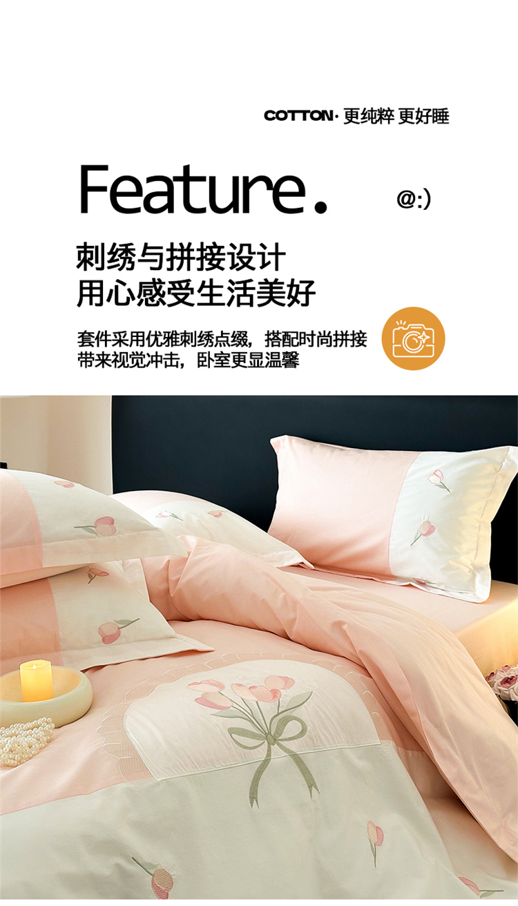 商品名称:懒猫家纺 2025新款【帕兰朵】全棉拼接刺绣四件套 帕兰朵-粉
