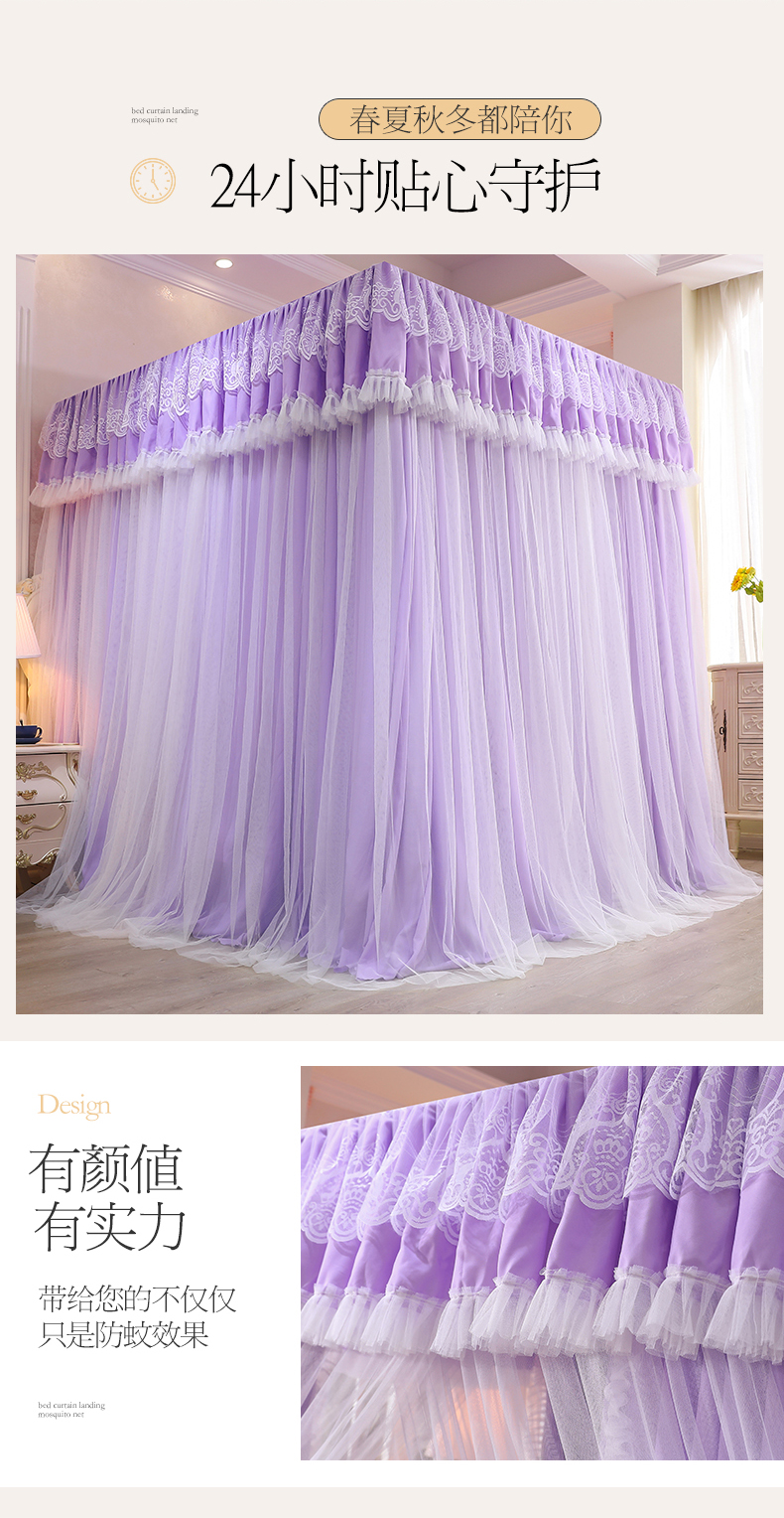 宝莱利 2025新款遮光布帘落地蚊帐 紫色