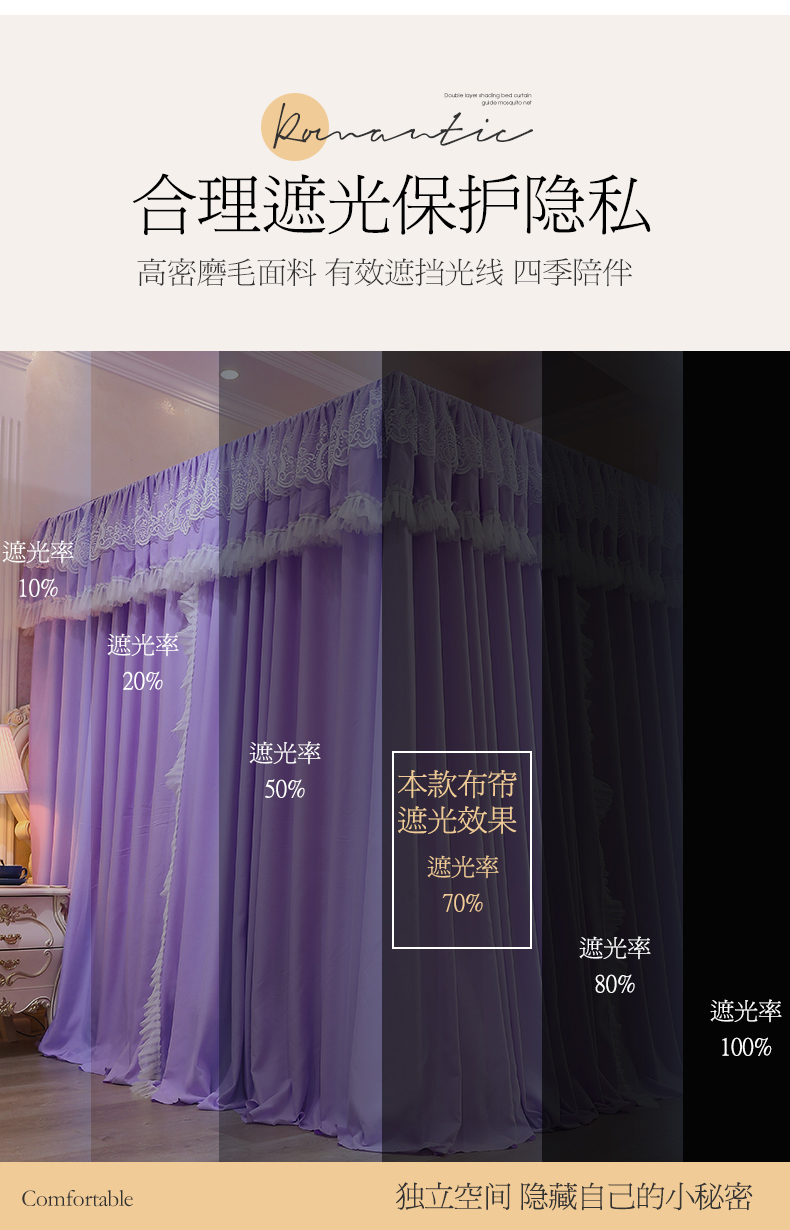 • 91家纺网 家纺一手货源 找家纺 宝莱利 2025新款遮光布帘落地蚊帐 紫色