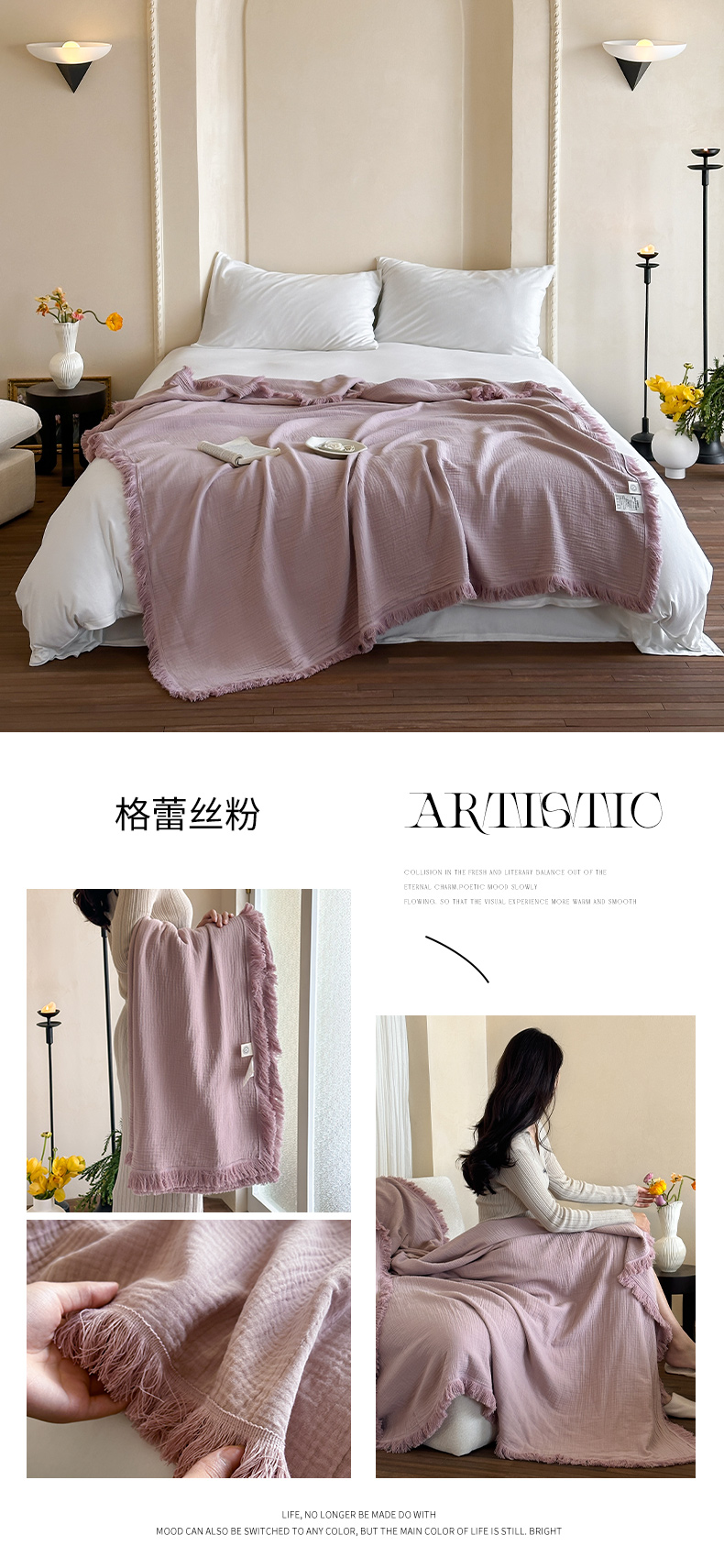 商品名称:(总)三朵 2025新款全棉四层绉绉纱流苏多功能毯