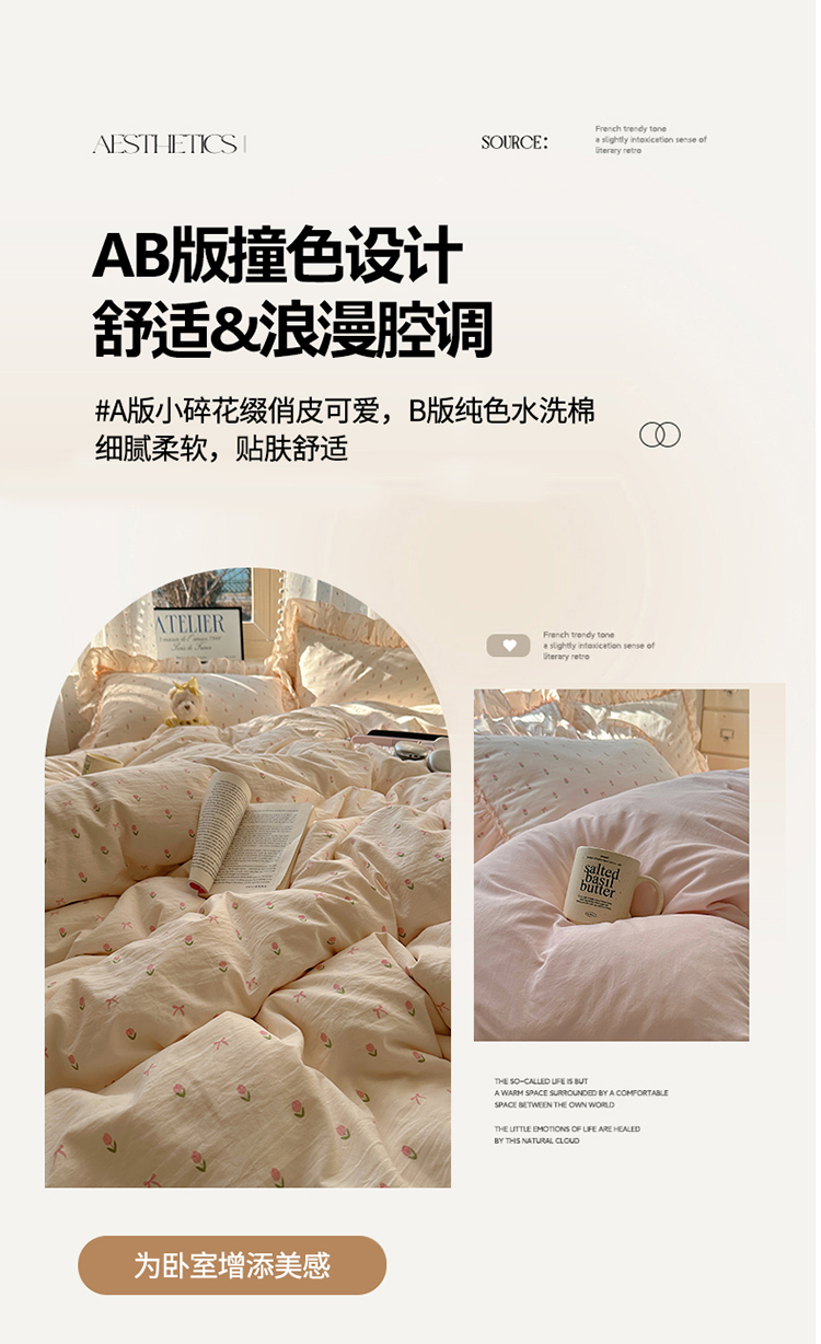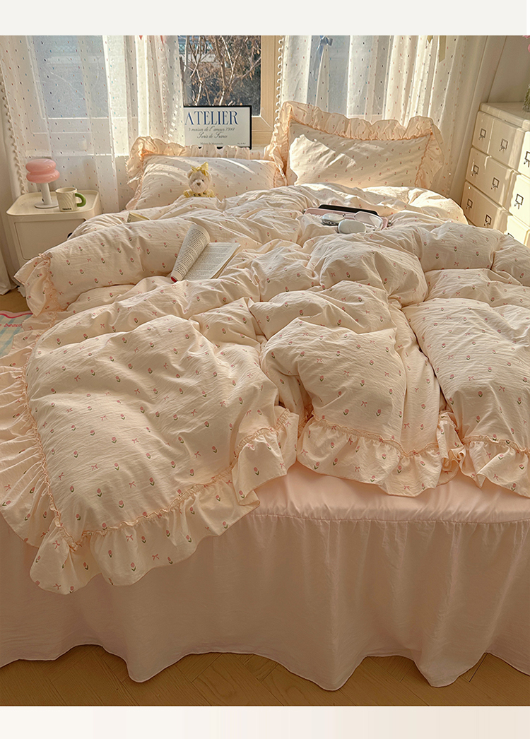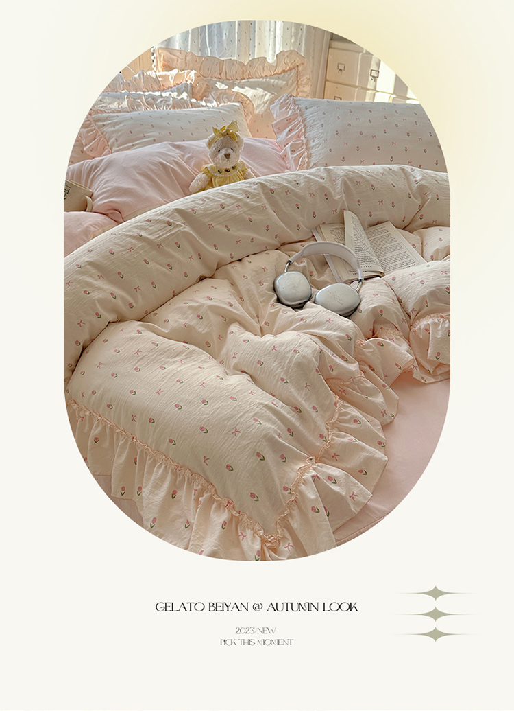 (总)轻奢坊 2025新款水洗棉密拷花边款 四件套