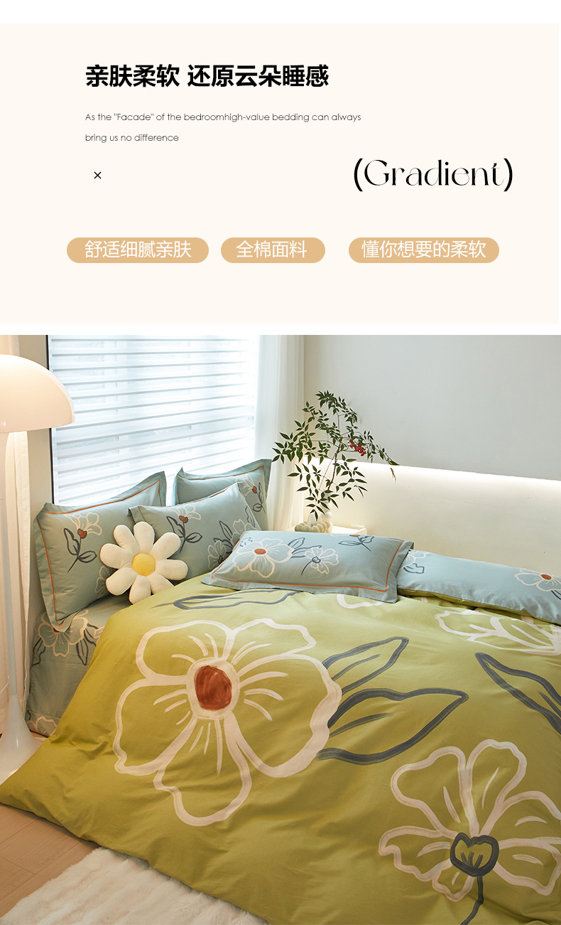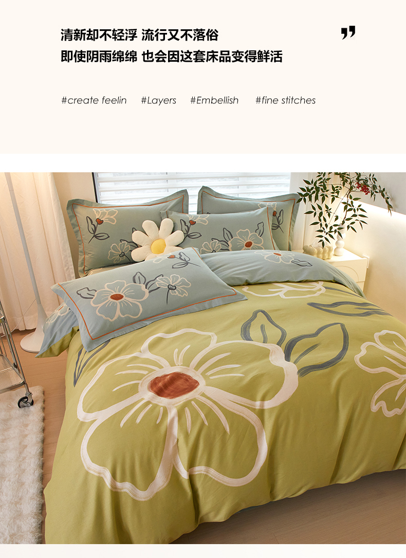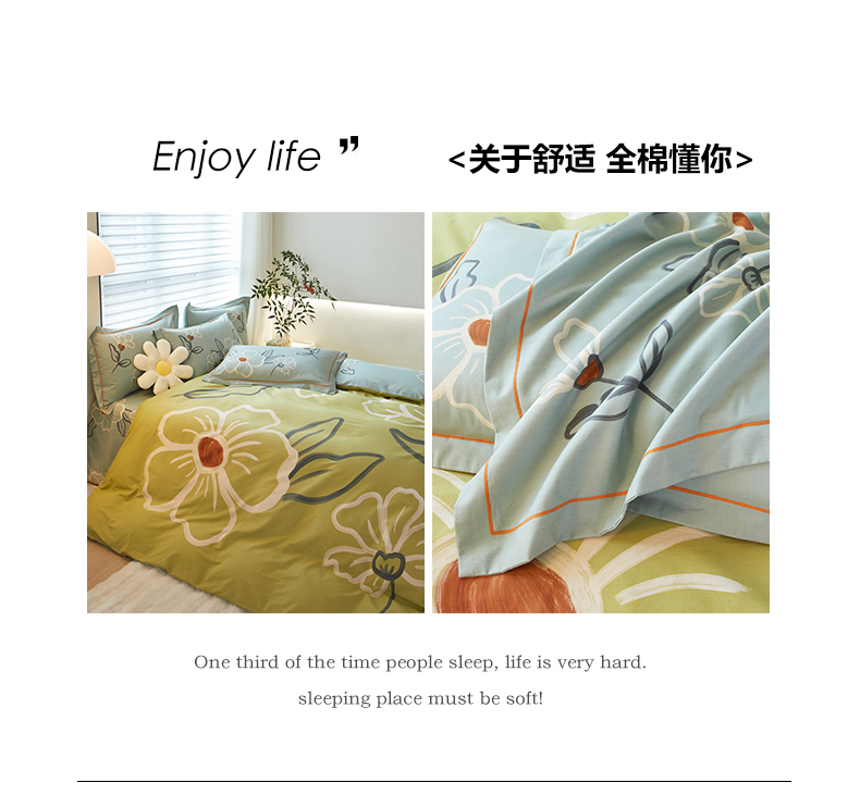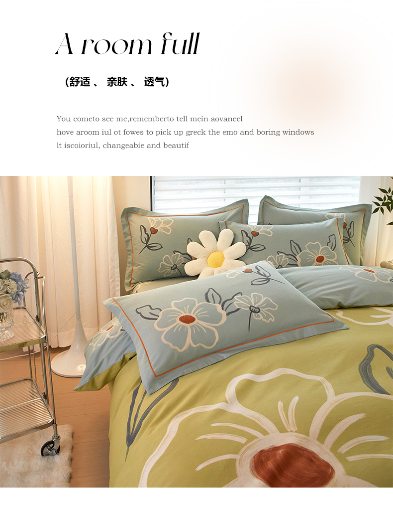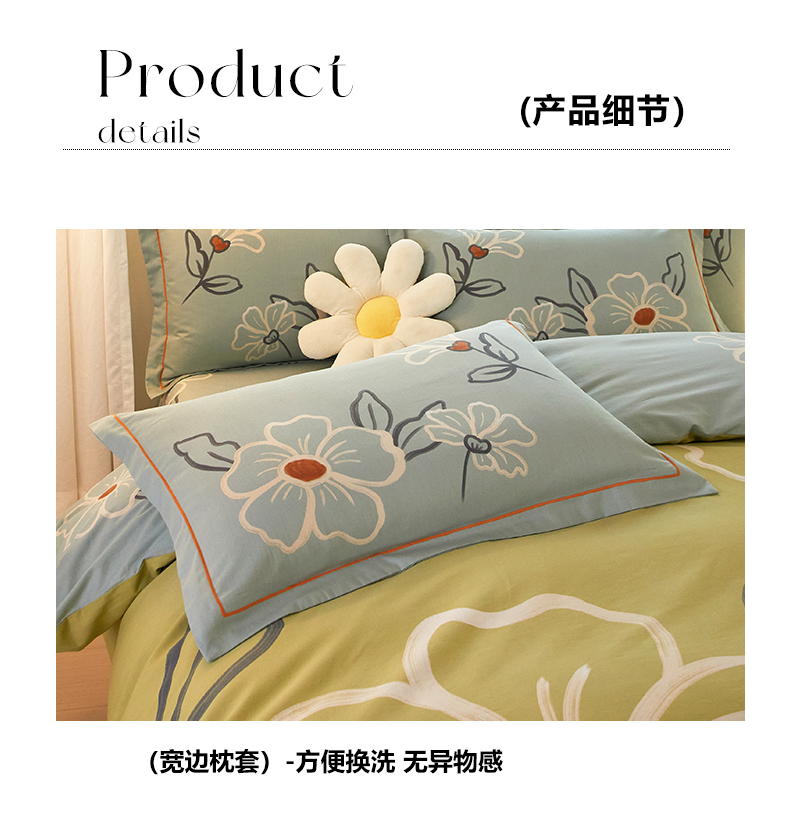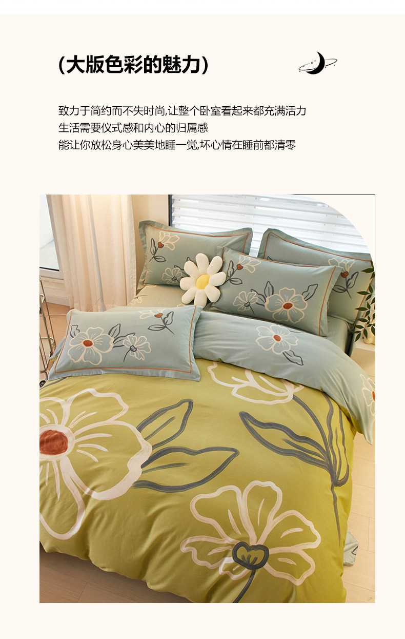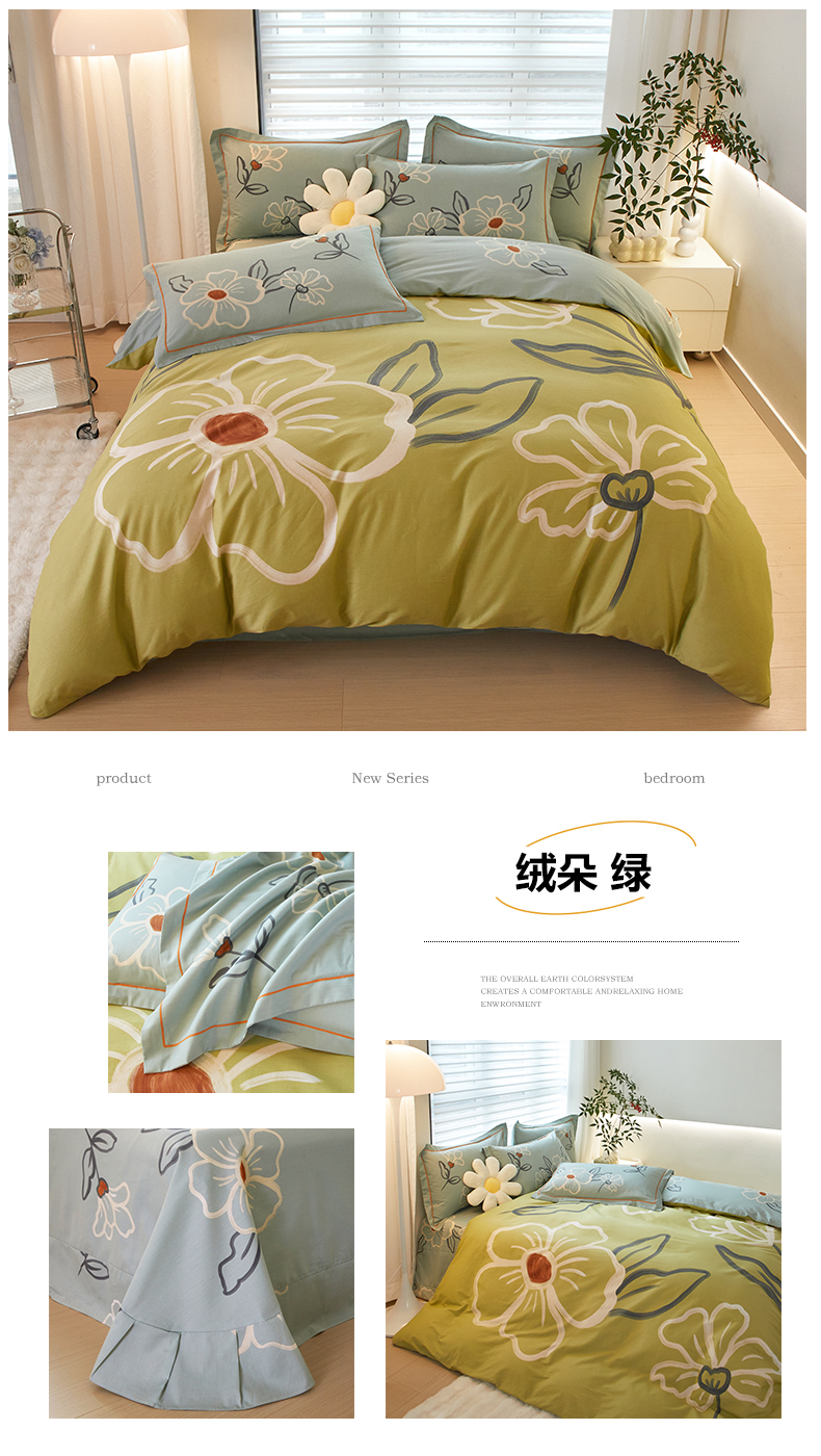商品名称:启航家居2025新款春夏直播爆款全棉大版印花四件套 绒朵绿
