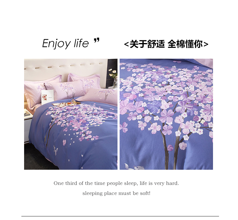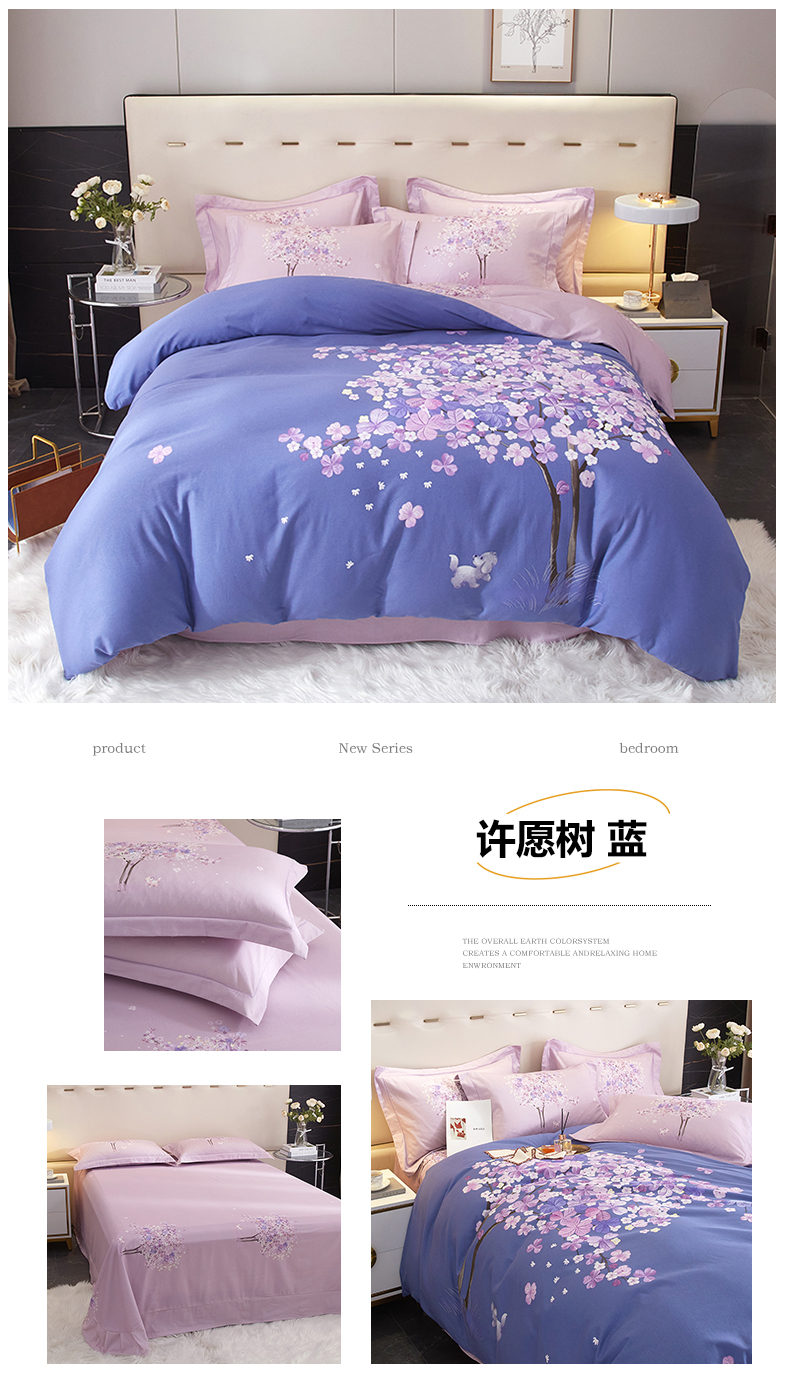 商品名称:启航家居2025新款春夏直播爆款全棉大版印花四件套 许愿树蓝