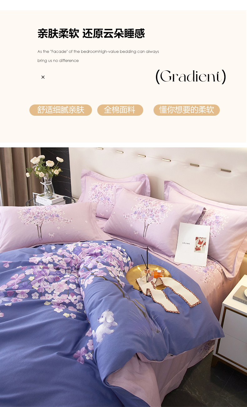 (总)启航家居 2025新款全棉铂金棉数码印花四件套,风香花倦,花的嫁纱,洛香忆梦绿,暮云春树灰,翩若惊鸿粉,普罗旺斯紫,新塞纳舞曲红,新塞纳舞曲紫