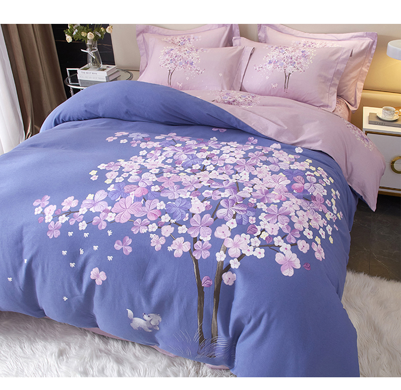 启航家居2025新款春夏直播爆款全棉大版印花四件套 许愿树蓝