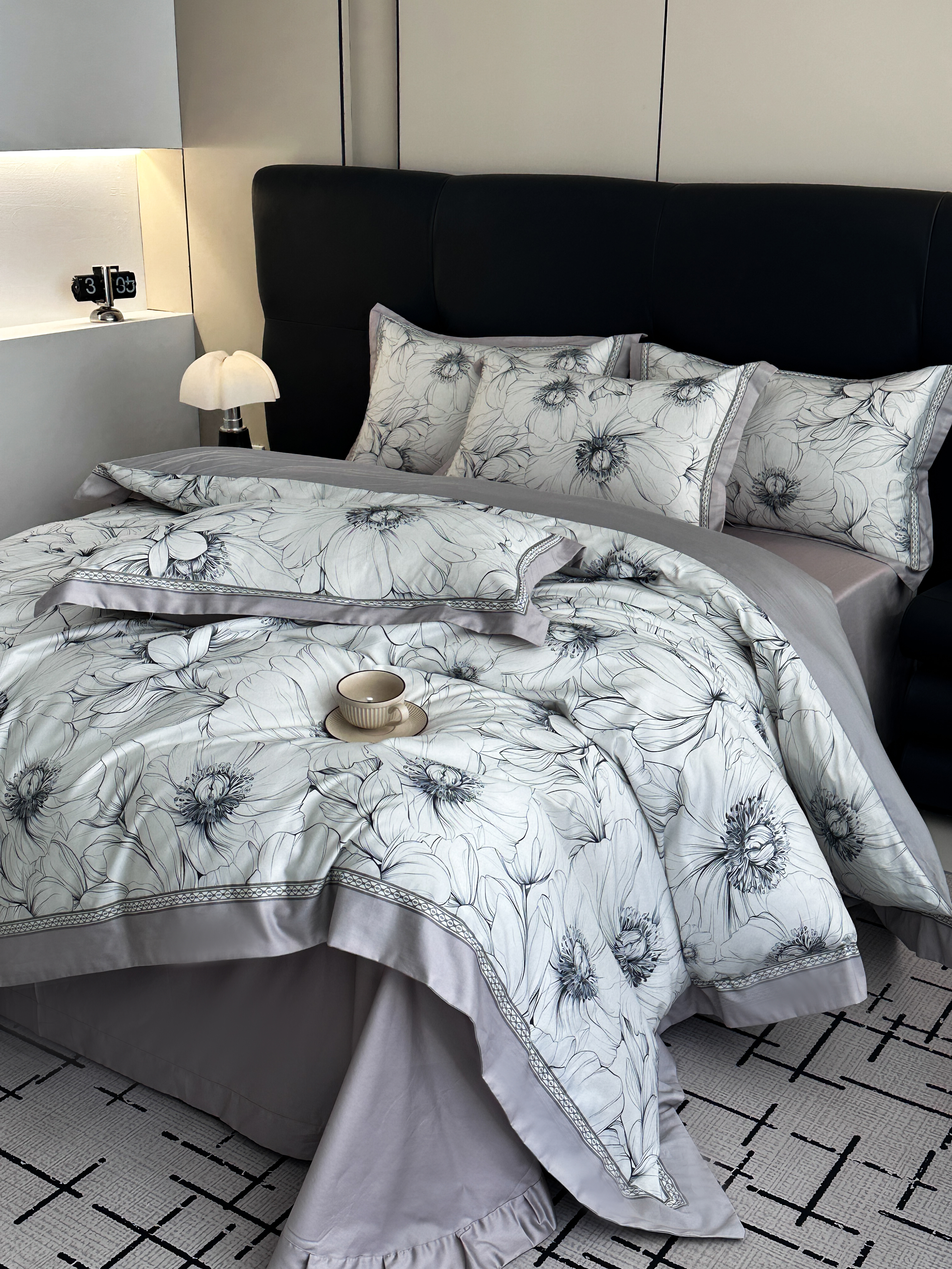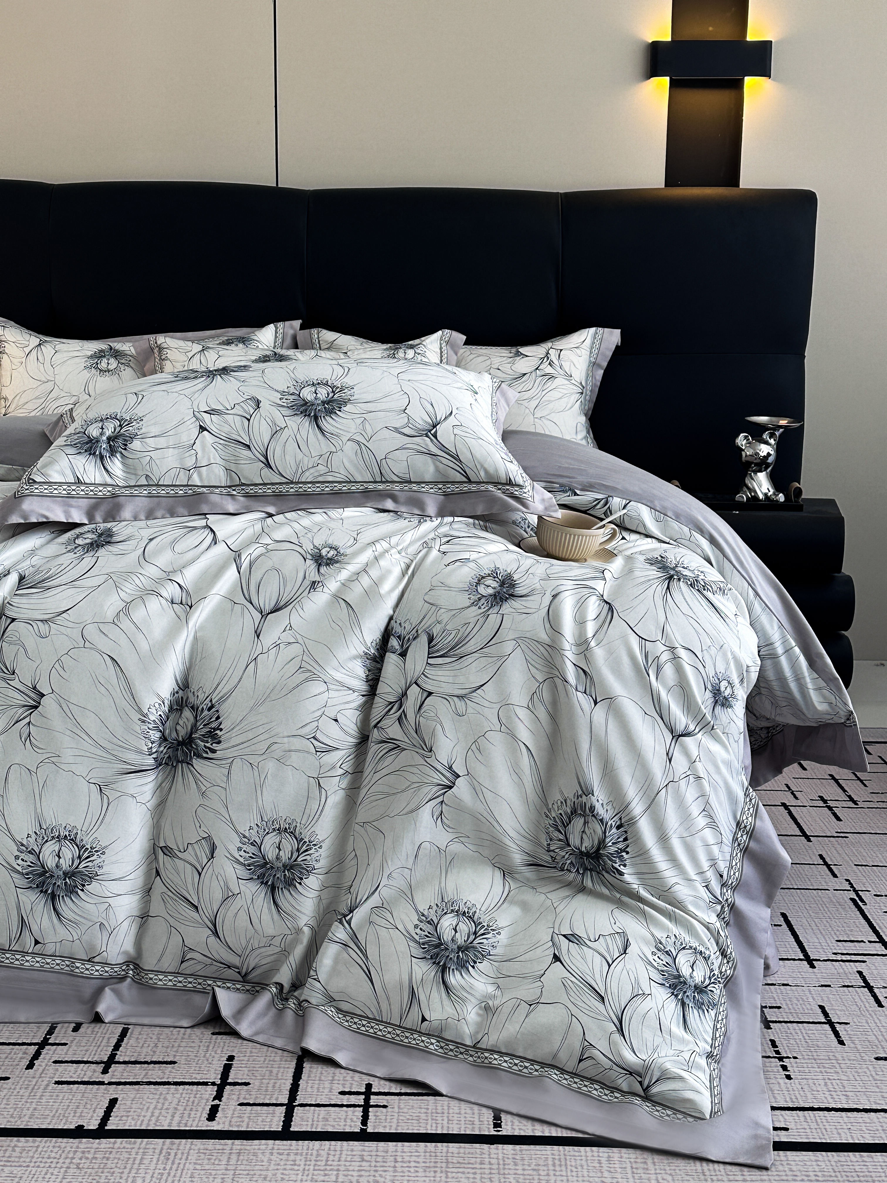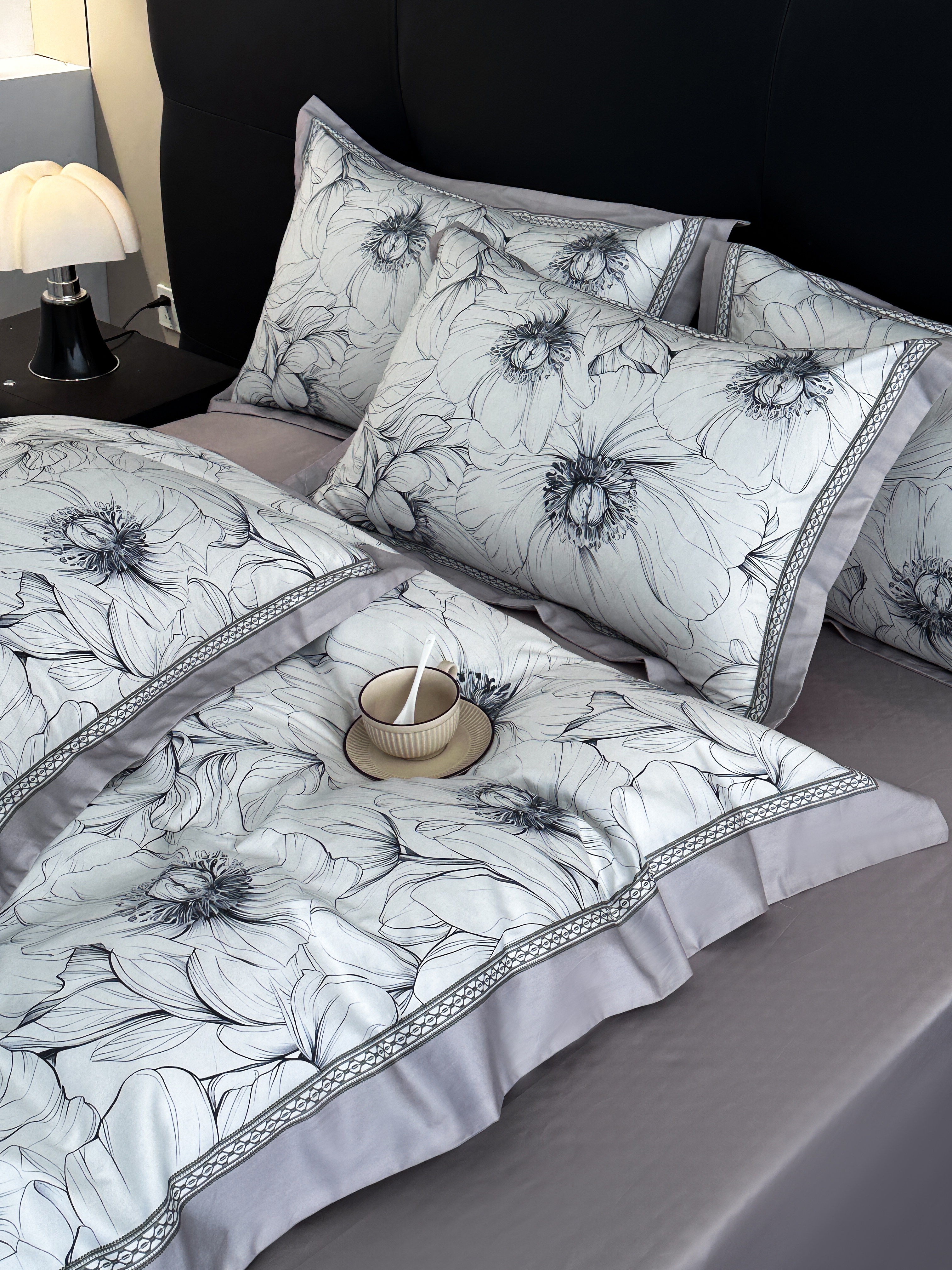 商品名称:顾家家居 2025新款长绒棉数码印花隐形宽边四件套 雅致芬芳