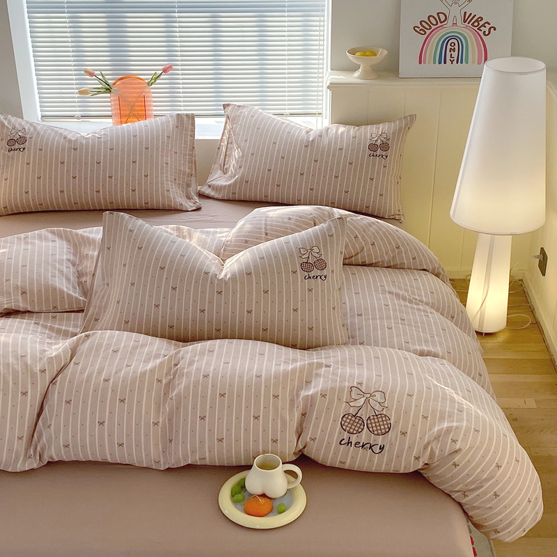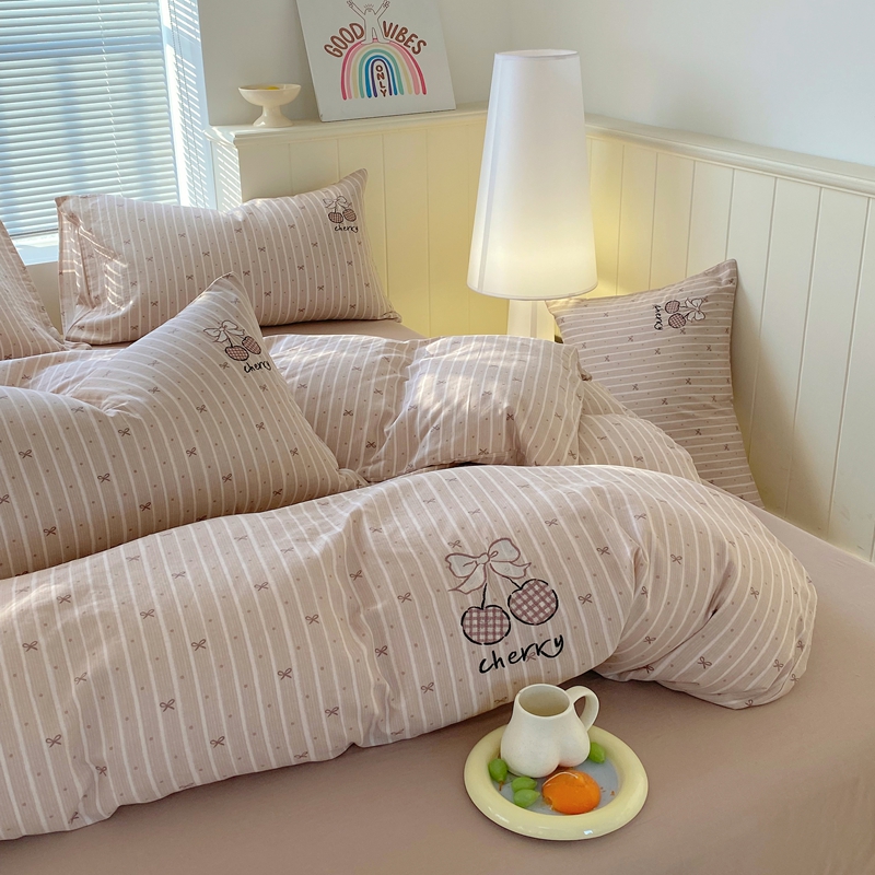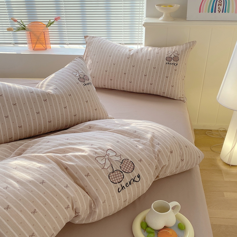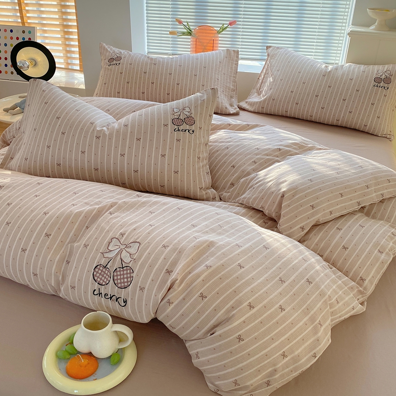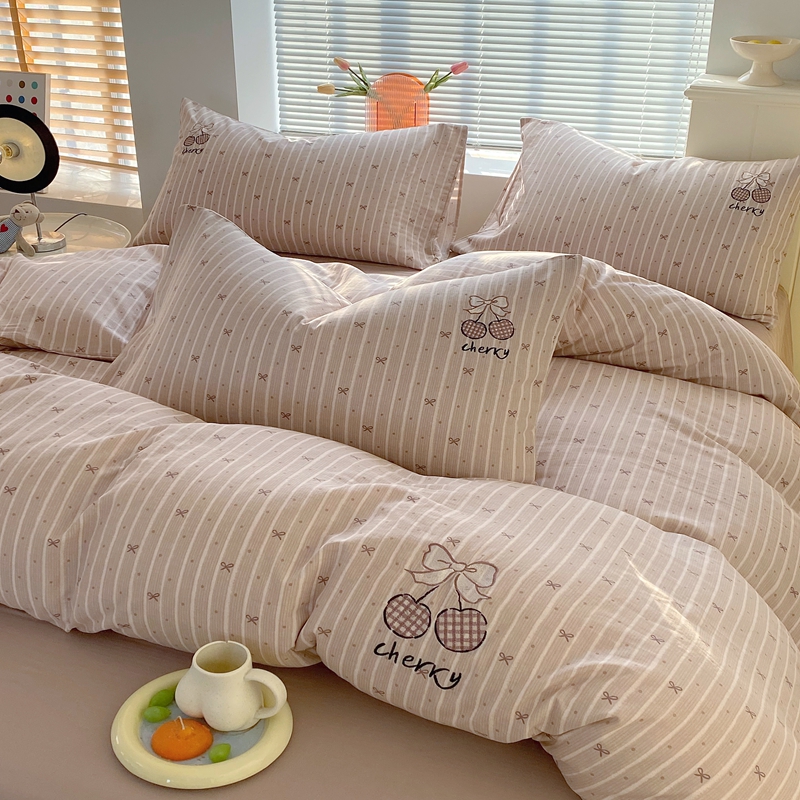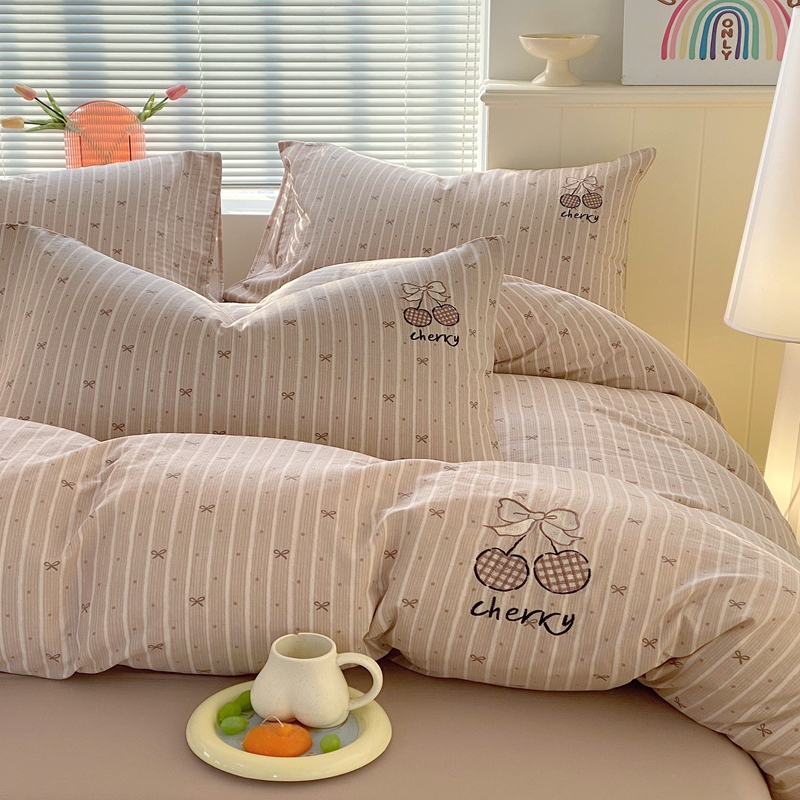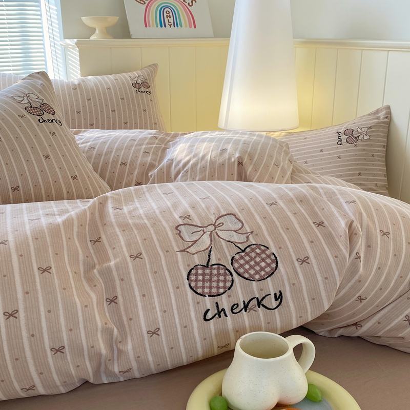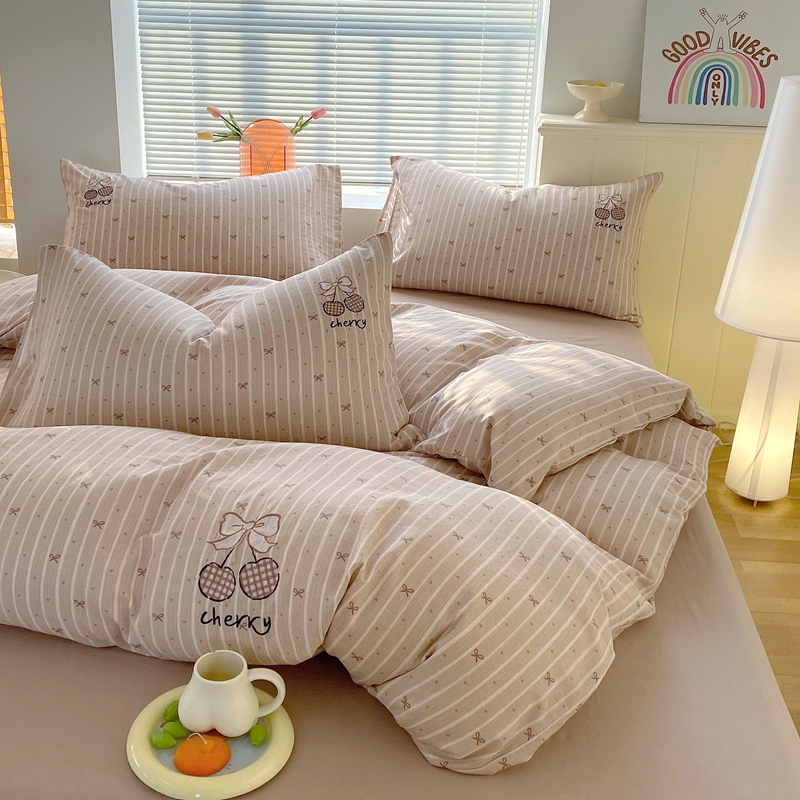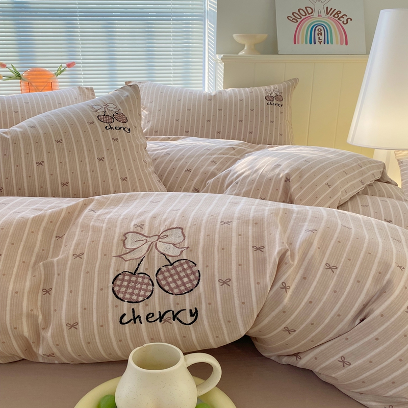 于果 2025款全棉双层纱印加绣四件套 蝴蝶结樱桃
