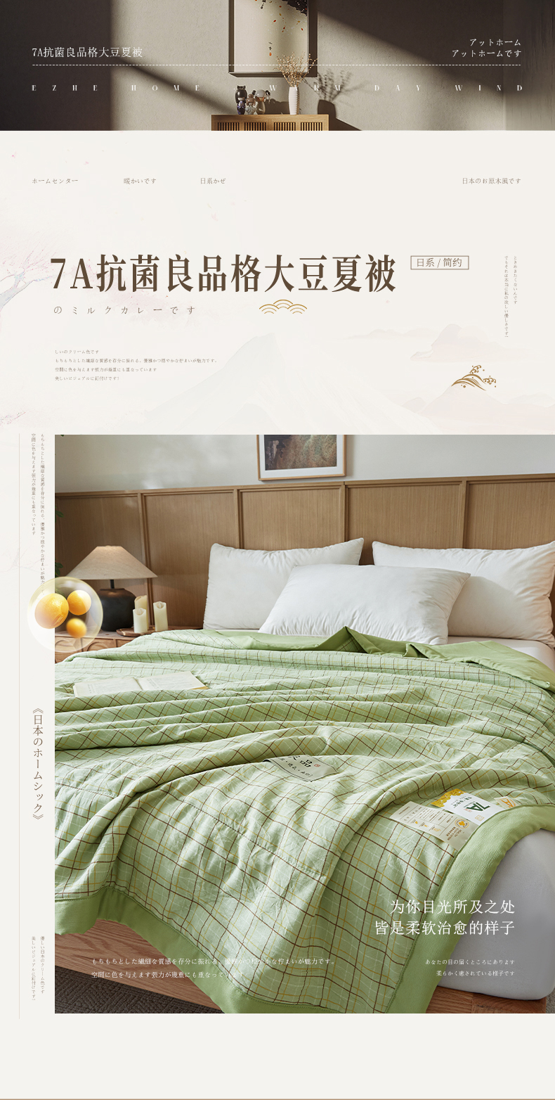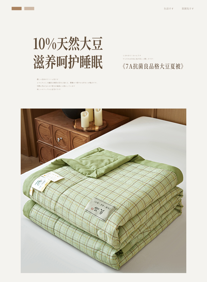 商品名称:欢乐季 2025新款7A抗菌良品格大豆夏被 薄荷绿