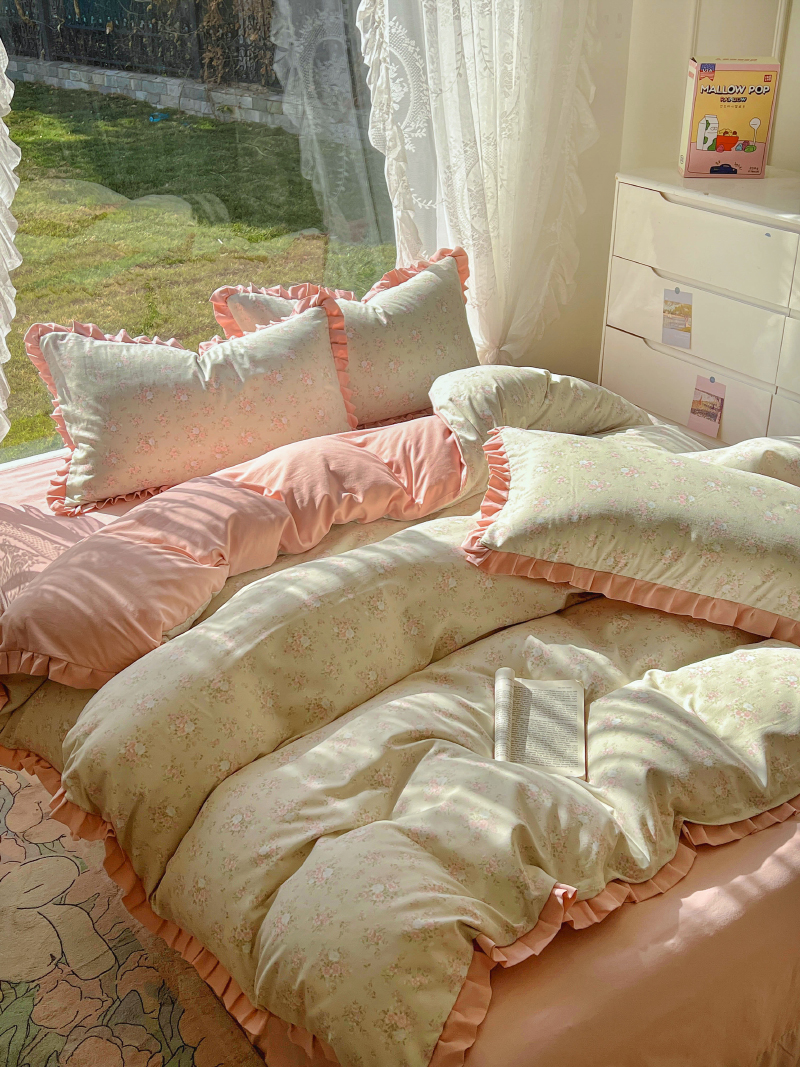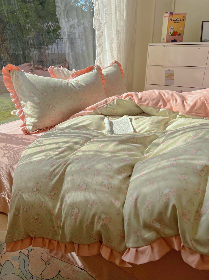 (总)欧尚 2025新款牛奶绒花边床盖四件套,粉点点,花小玉,咖色小心心,蓝点点,慕然,仙女粉,仙女紫