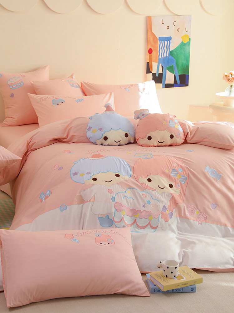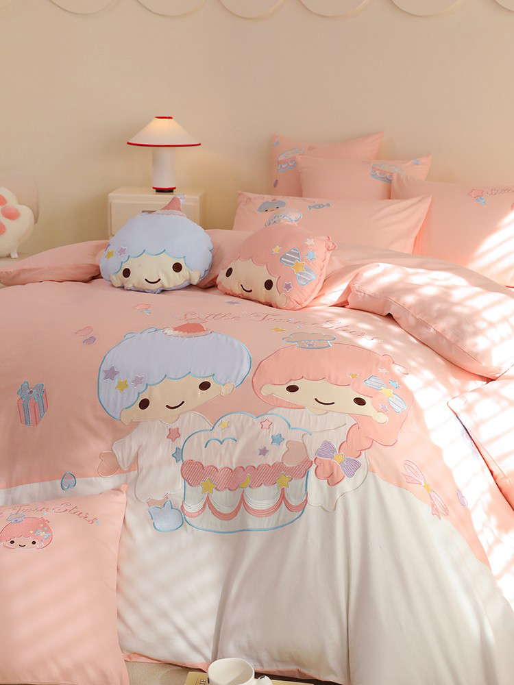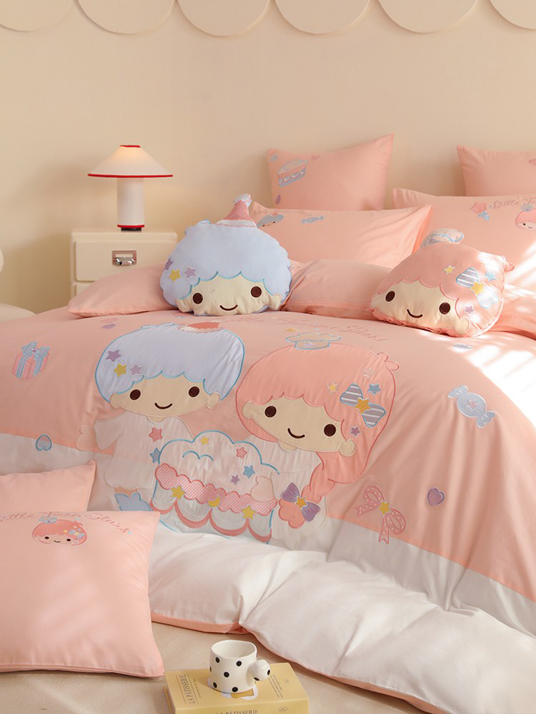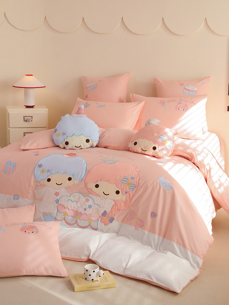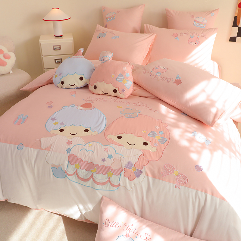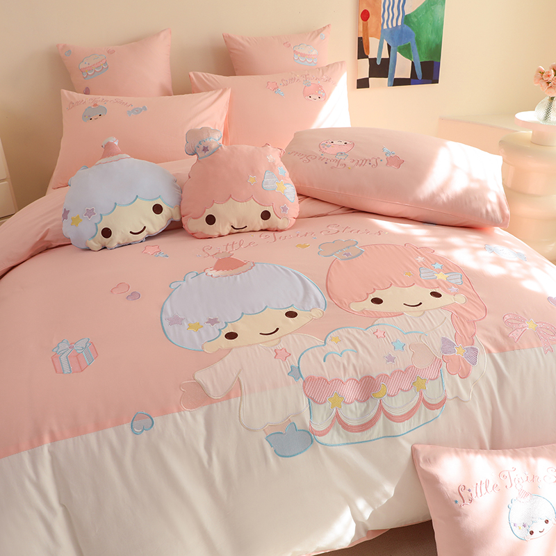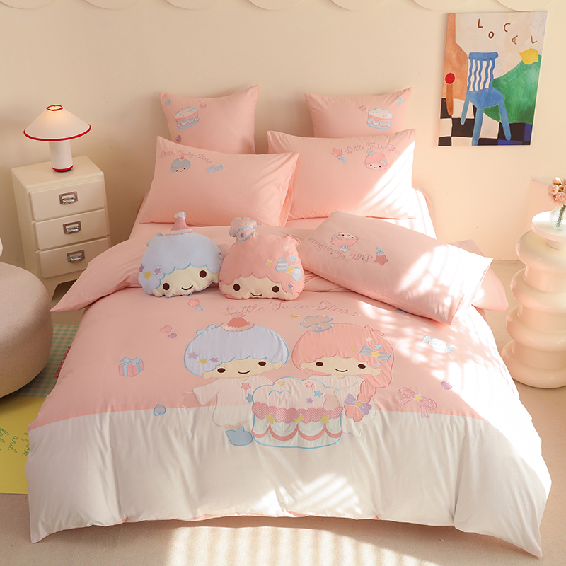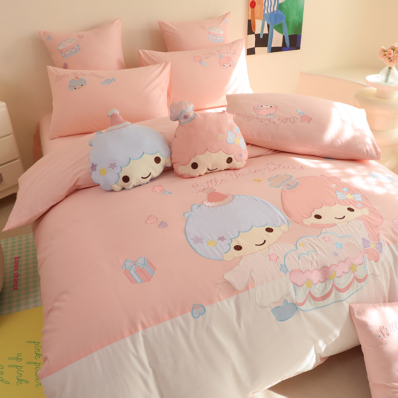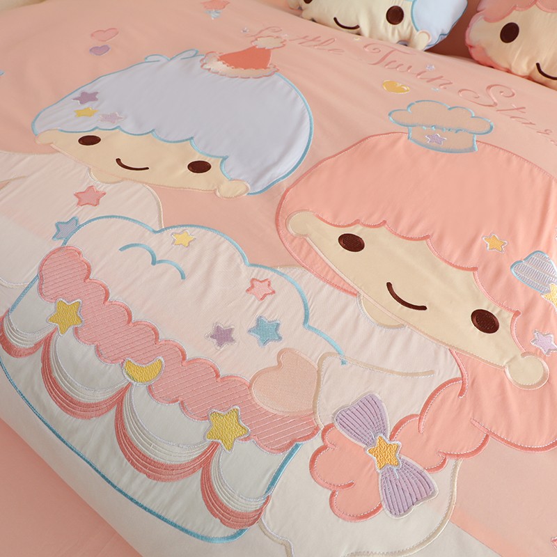 绒棉世家 2025绒棉世家新款全棉水洗棉贴布绣专版四件套 双子星