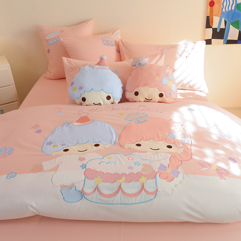 商品名称:绒棉世家 2025绒棉世家新款全棉水洗棉贴布绣专版四件套 双子星