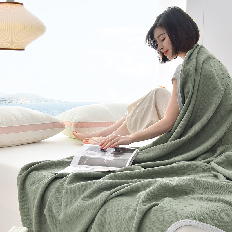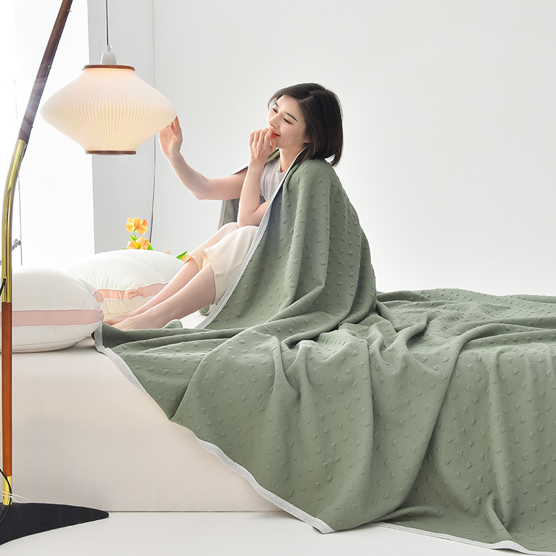 商品名称:米奈家居 2025全棉针织棉提花多功能盖毯 莱茵绿