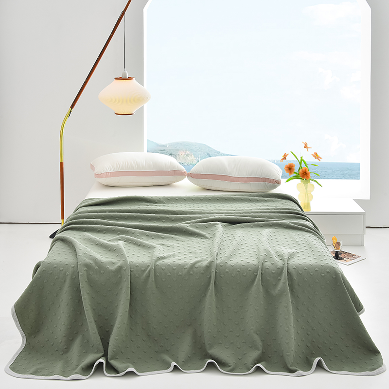 米奈家居 2025全棉针织棉提花多功能盖毯 莱茵绿